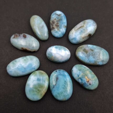 Natural Larimar Oval Cabochon Loose Gemstone Lot 9 Pcs 16*22-26 MM 183 CT
