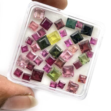 Natural Multi Tourmaline Mix Square Cut Loose Gemstone Lot 26 Pcs 3-7 mm 10 CT