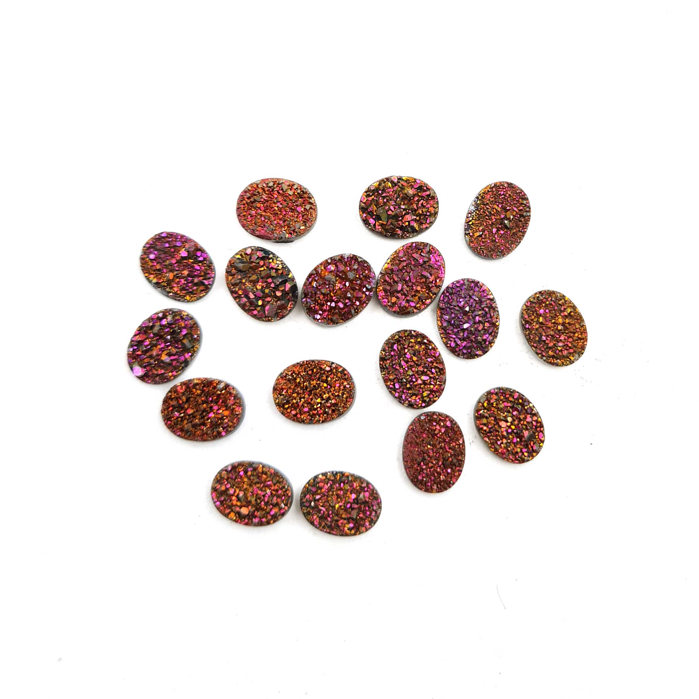 Home Quartz 7×9 MM Natural Orange Glitter Druzy Quartz Oval Cabochon Loose Stone 17 Pcs 26CT