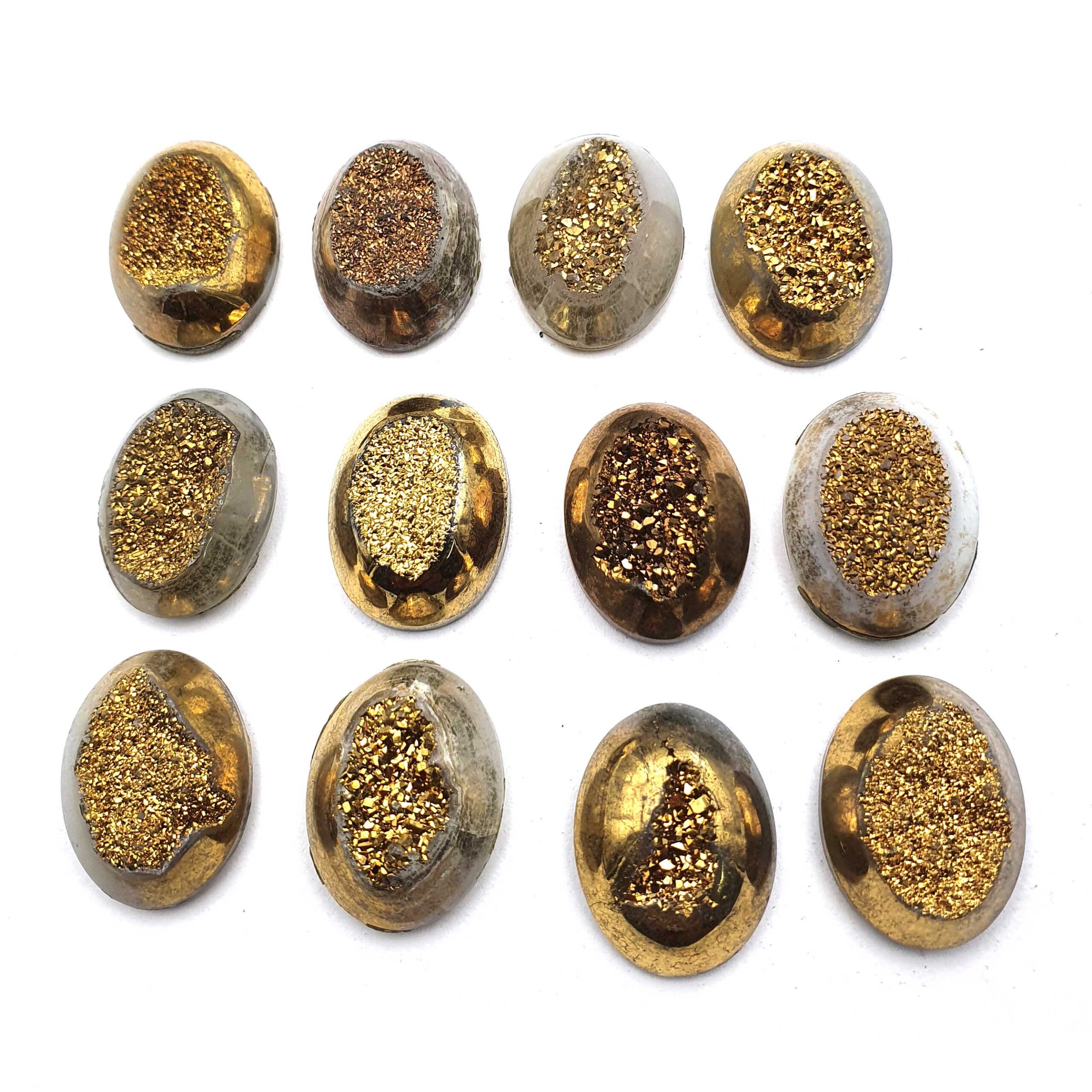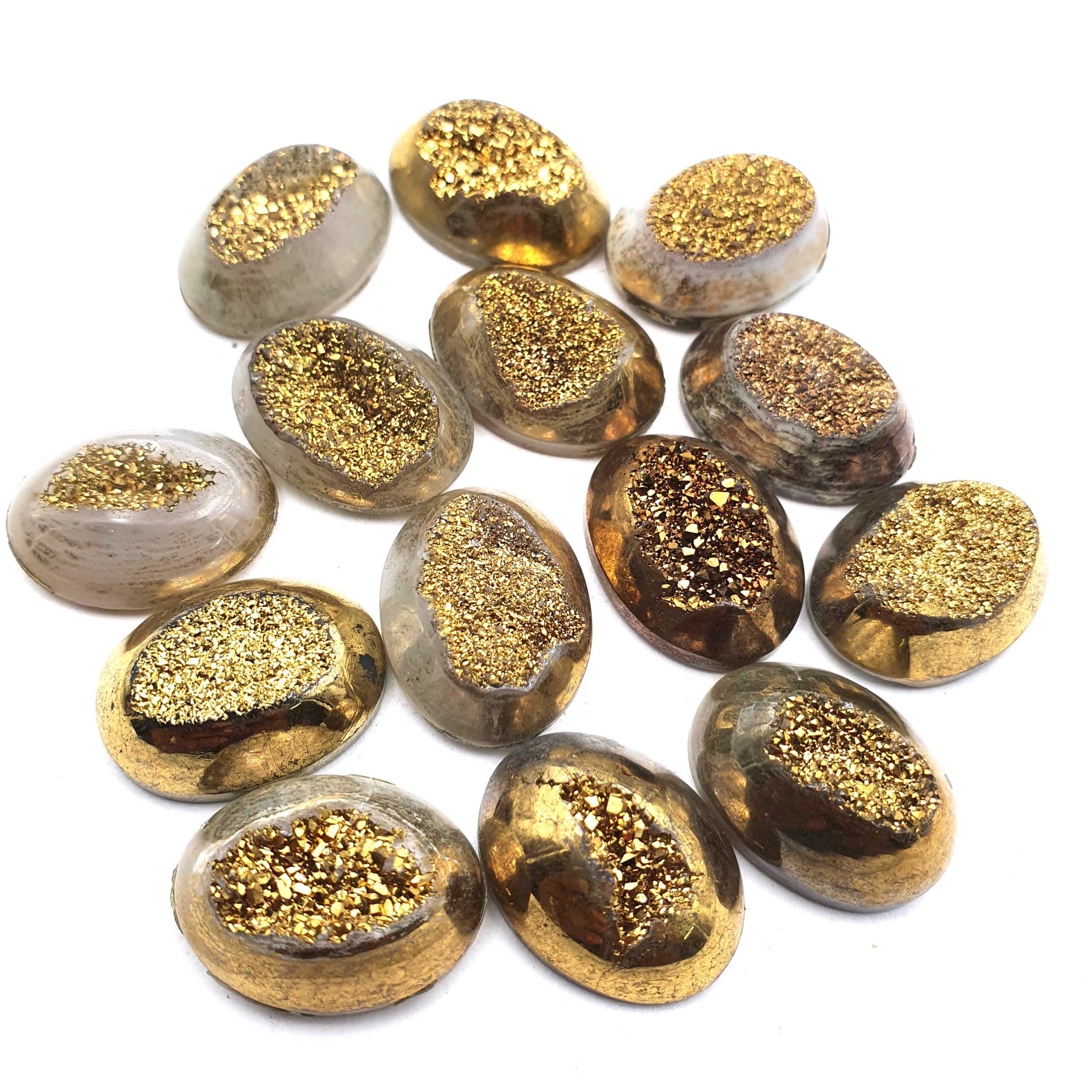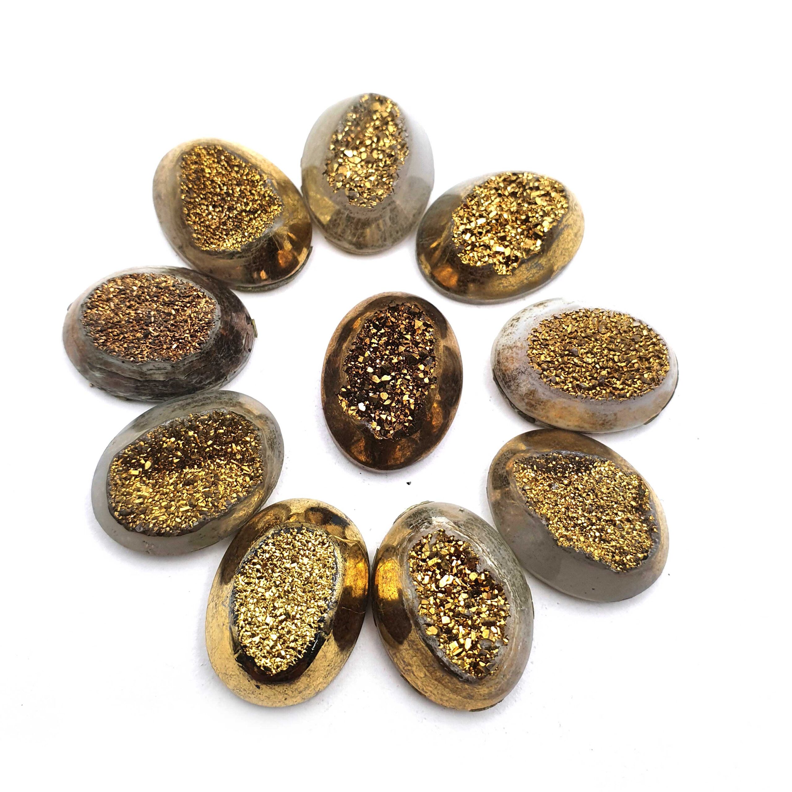 Home Quartz Druzy Quartz Pear Cabochon Golden Color Glitter Gemstone 14 Pcs 15×20 MM 194 CT