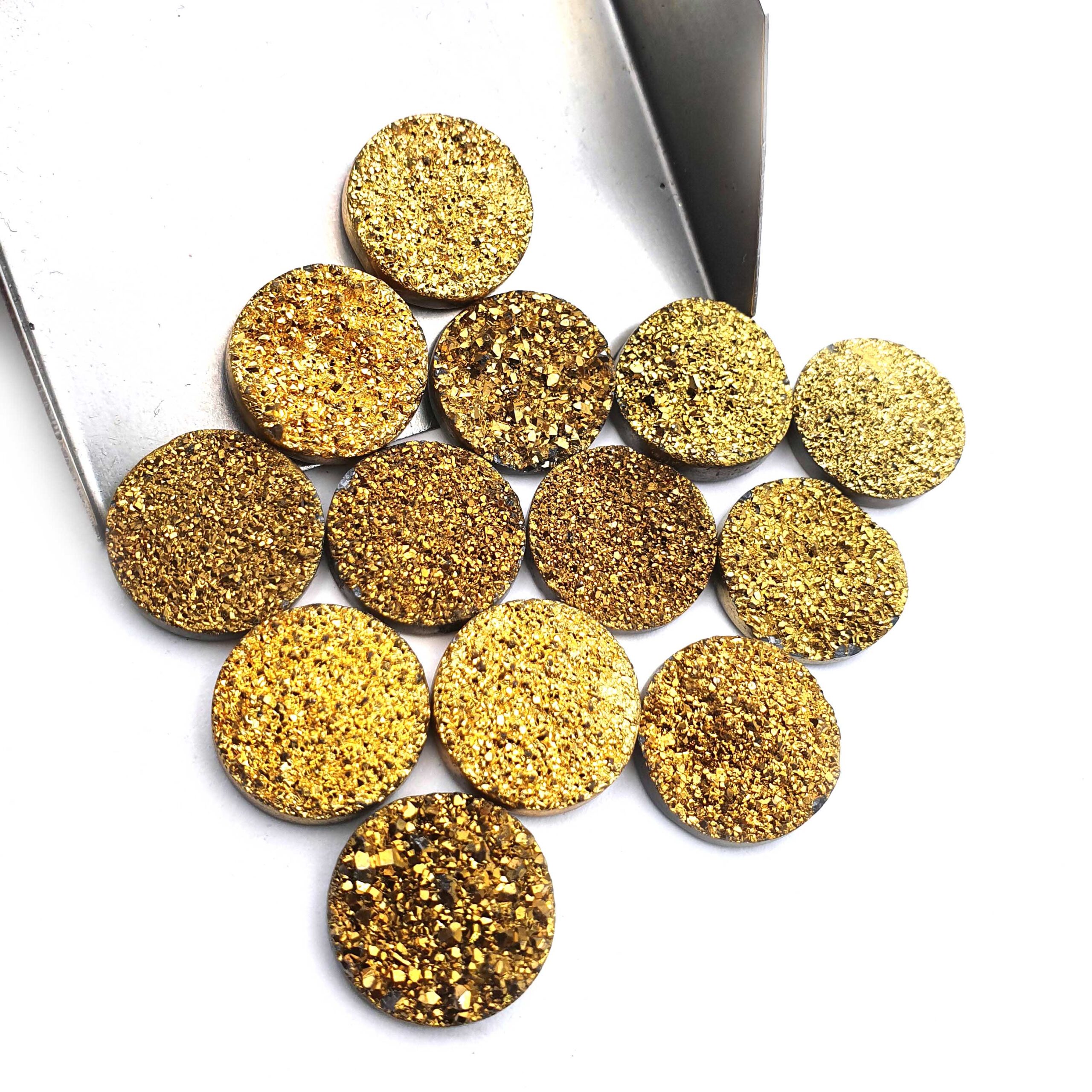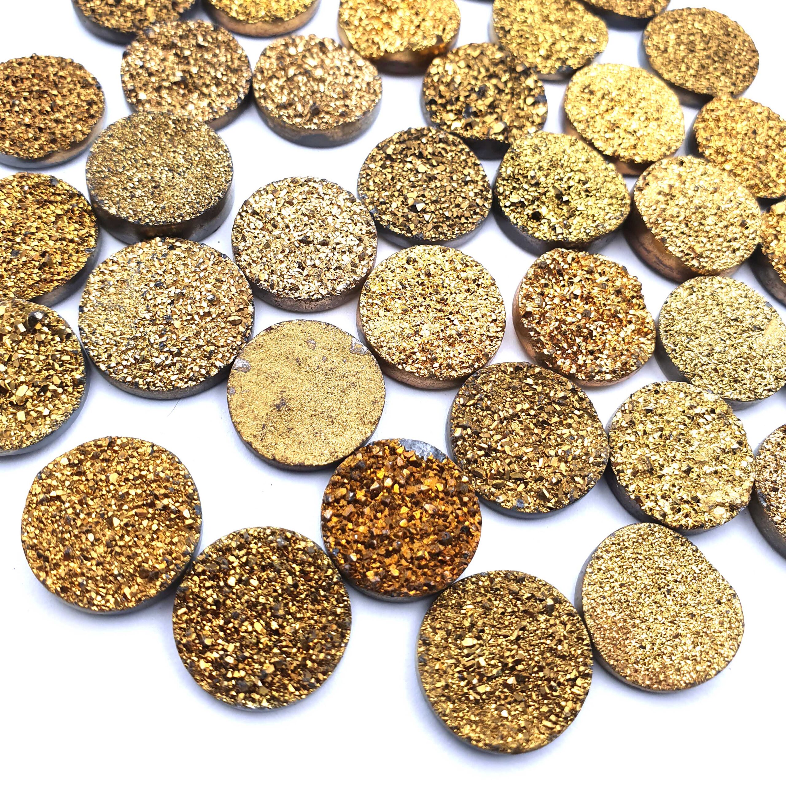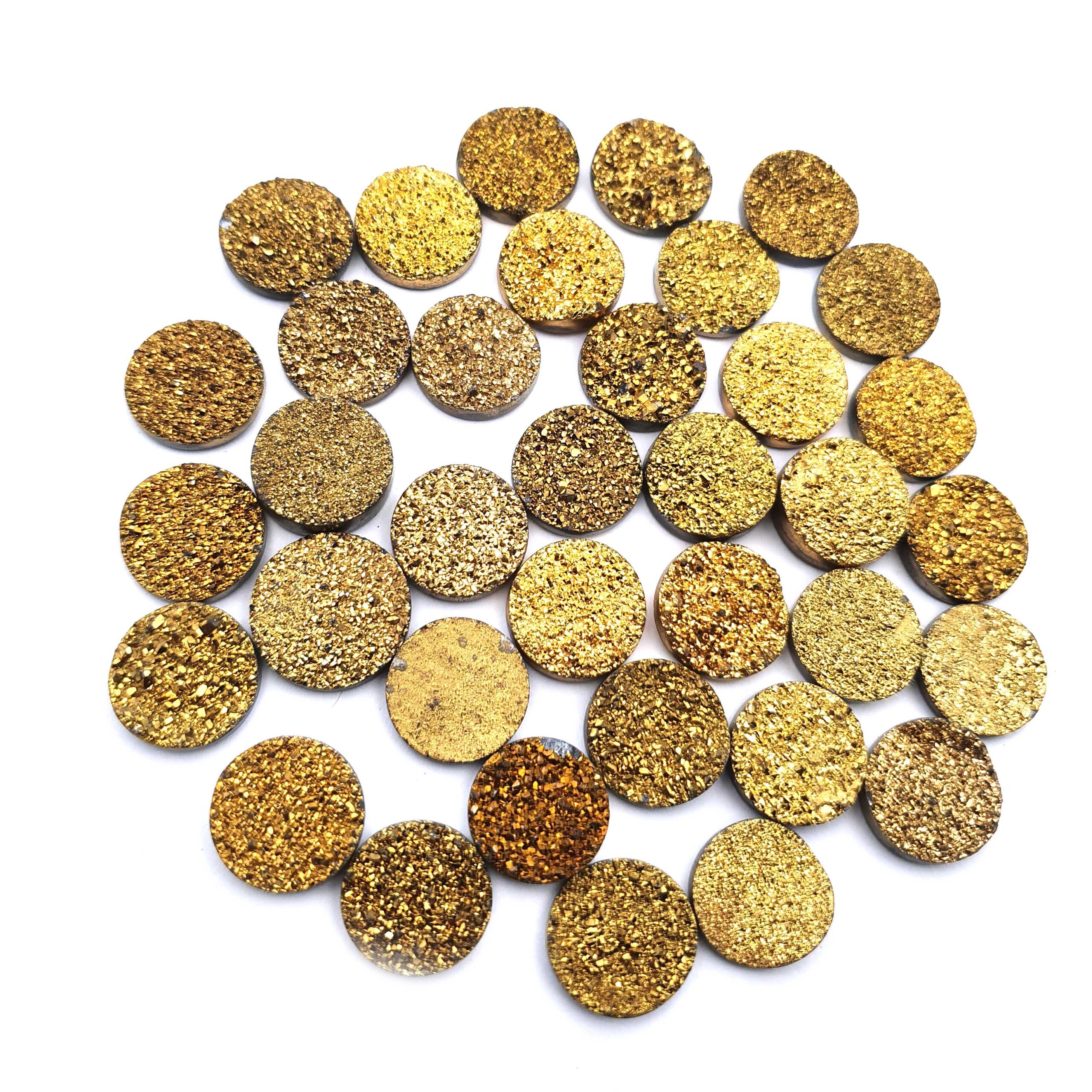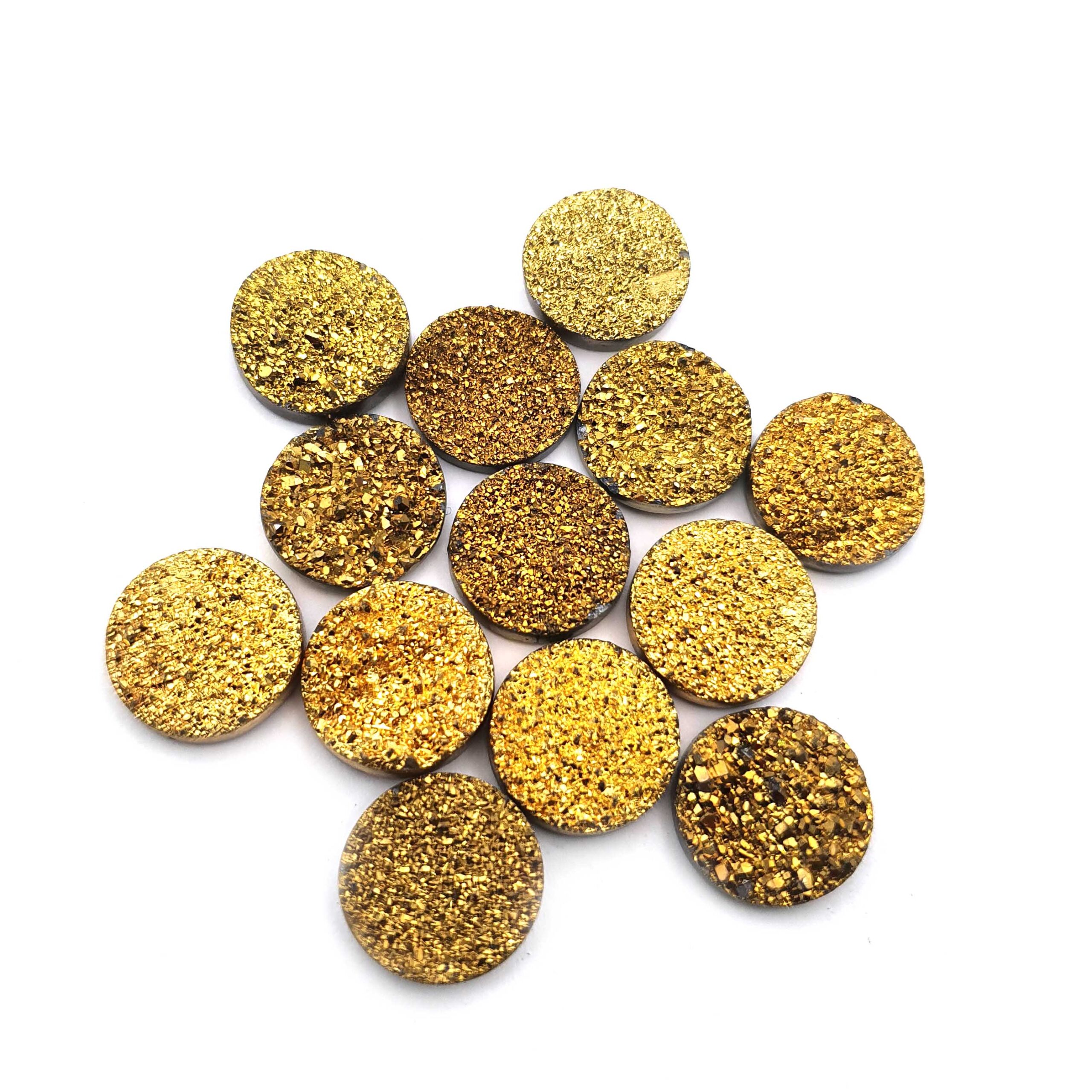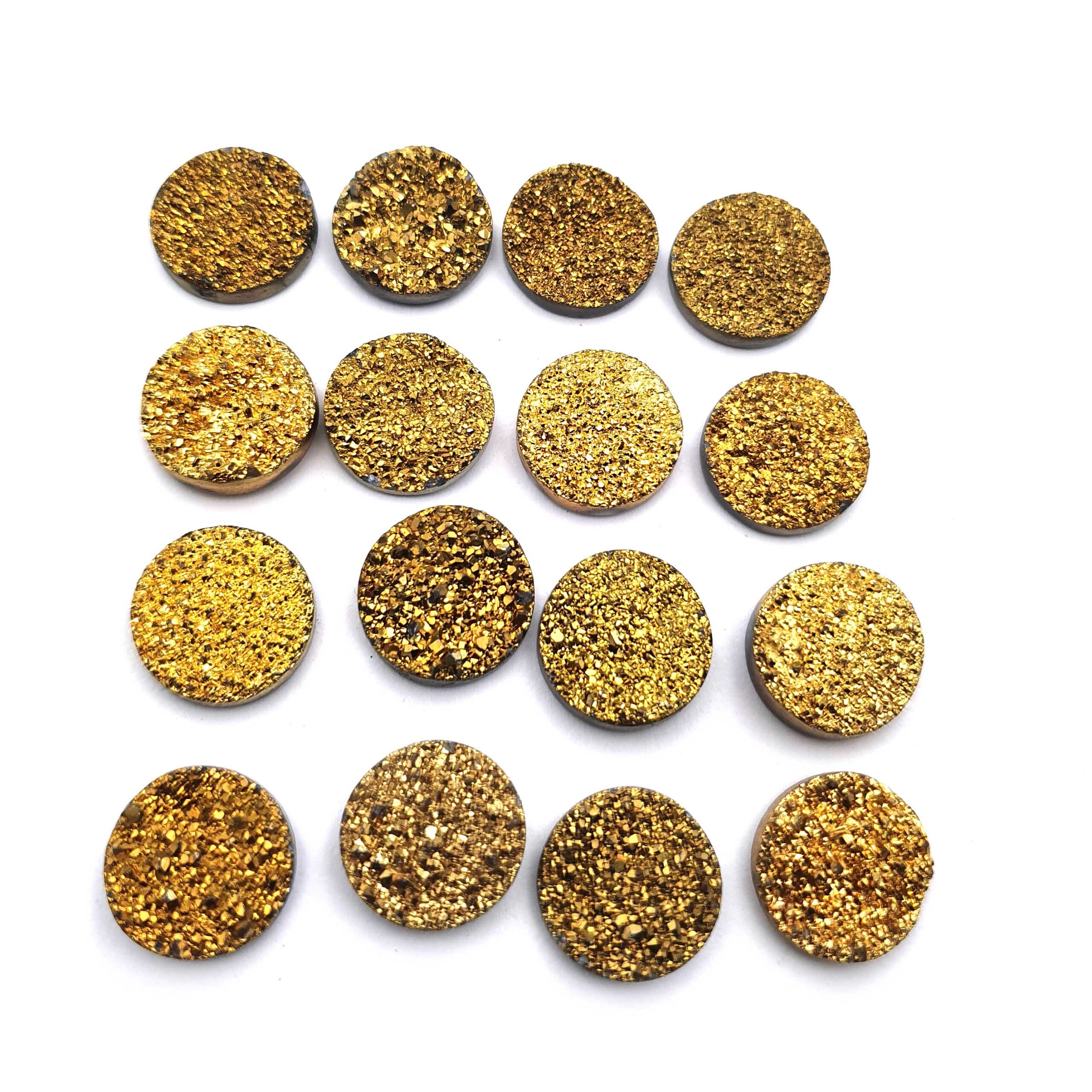 Home Quartz Druzy Quartz Round Cabochon Golden Color Glitter Gemstone 17 Pcs 16 mm 140 CT
