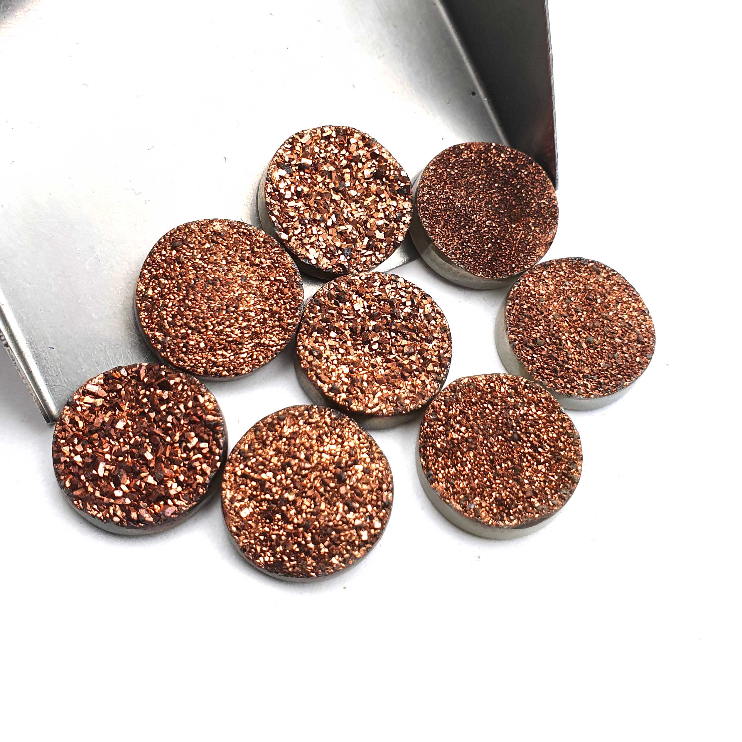 Home Quartz Druzy Quartz Round Cabochon Rose Gold Glitter Gemstone 8 Pcs 16 mm 87 CT