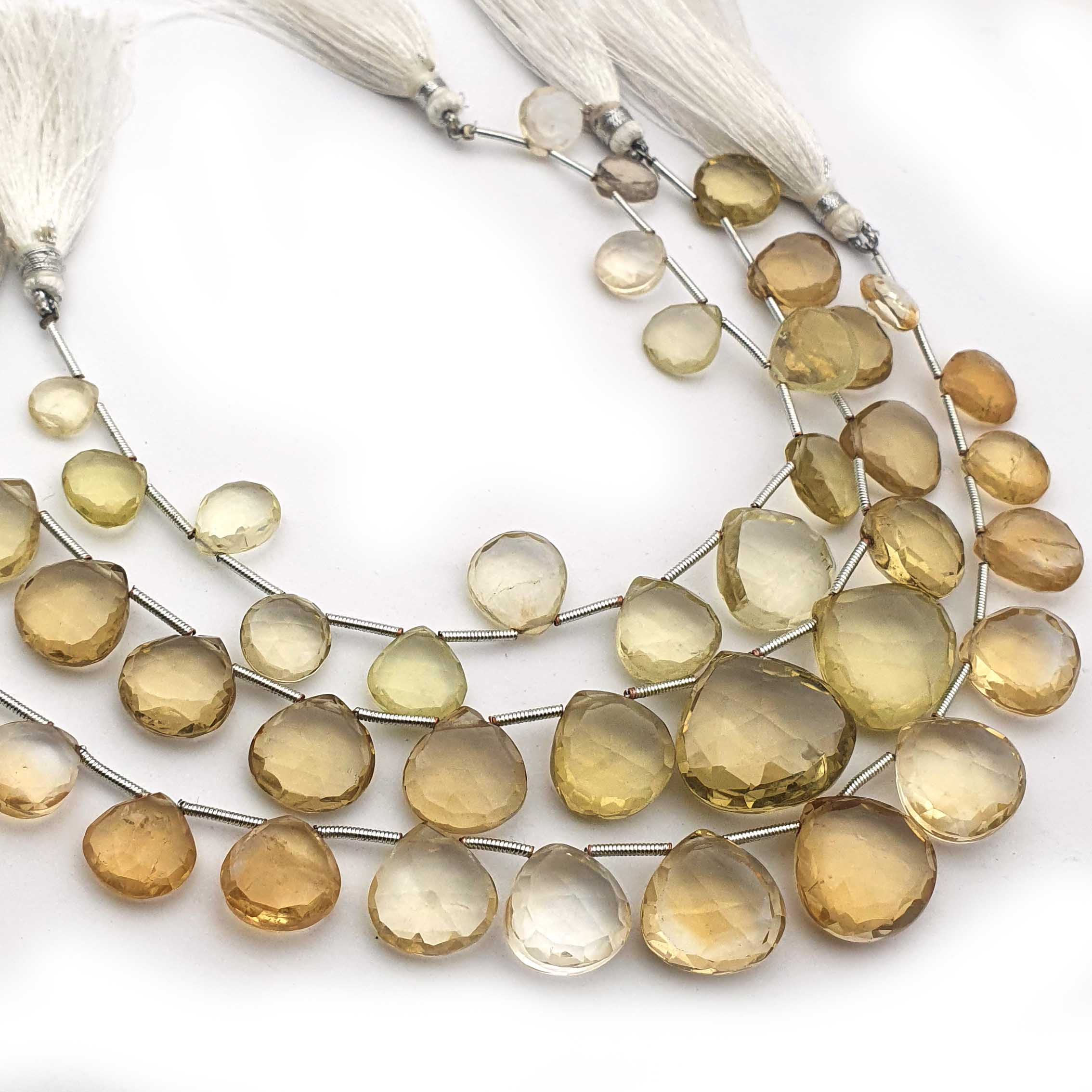Lemon Quartz Faceted Heart Shape Beads Gemstone Faceted Briolette 7.5Inches