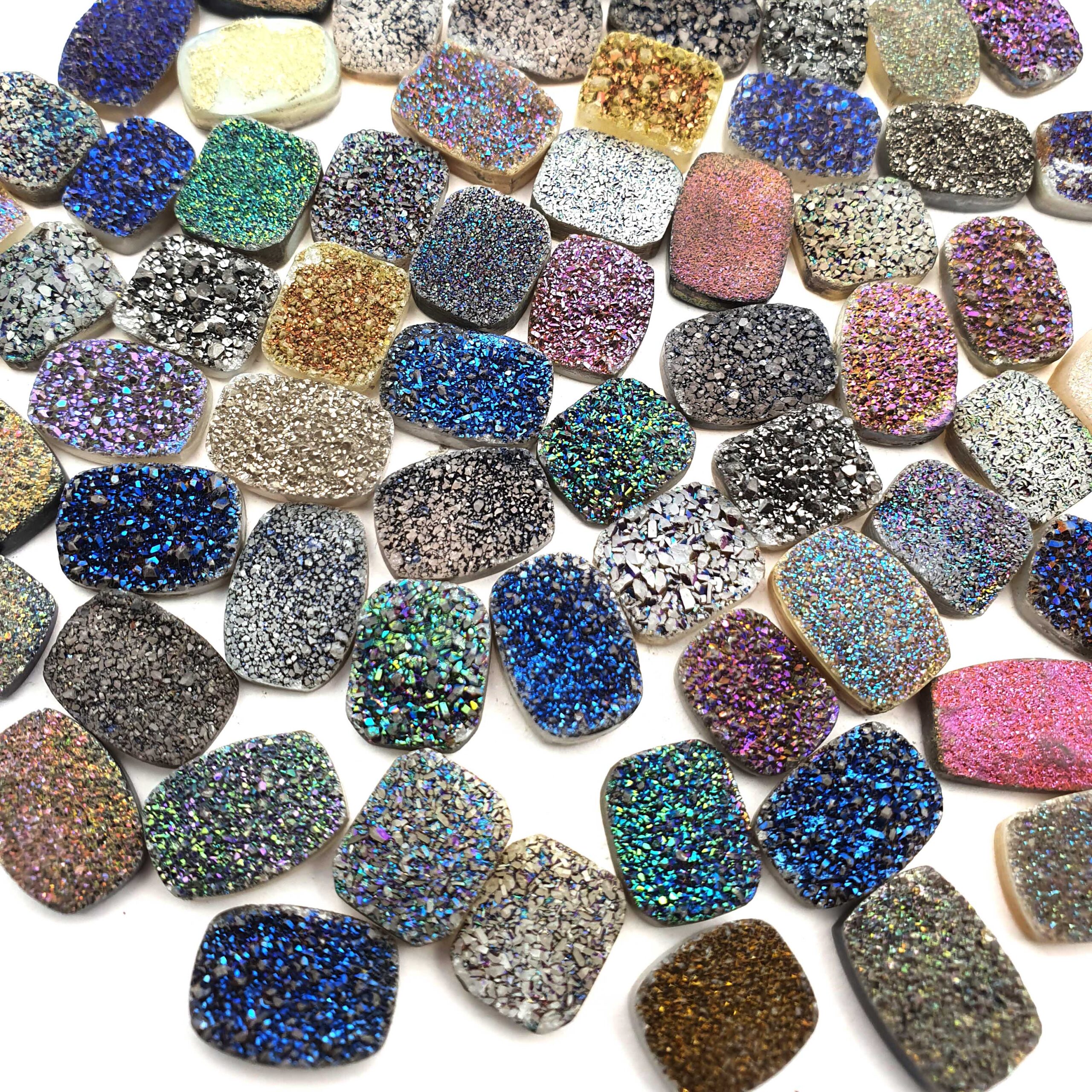 Home Other Gems Multi Color Druzy Cushion Cabochon Glitter Gemstone Lot 36 Pcs 10*14 mm 183 CT