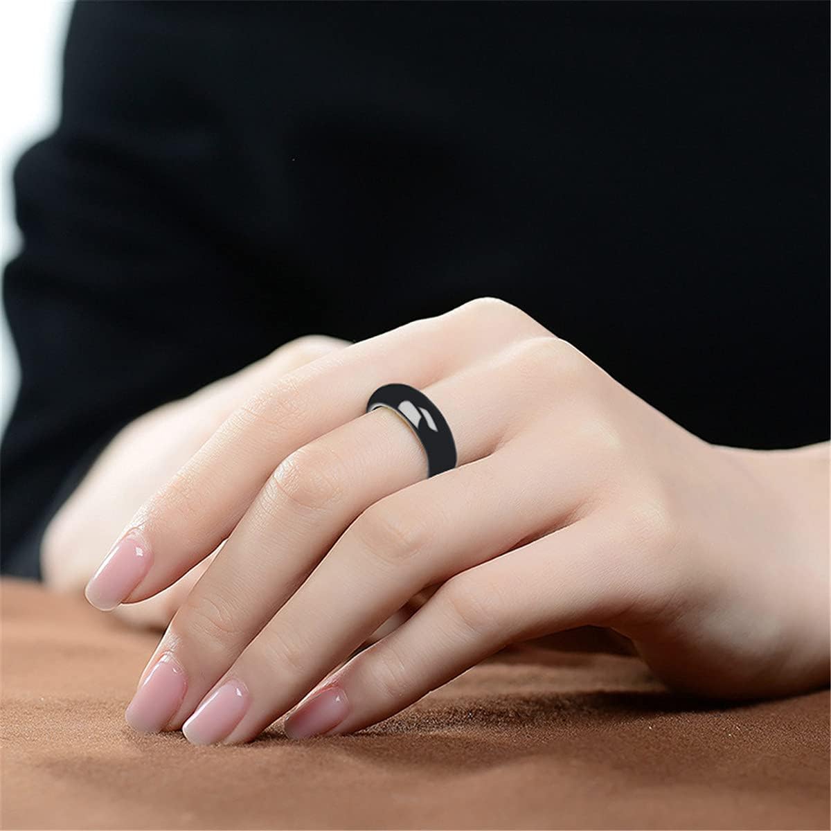 Home Beads Natural AA Grade Black Jade Band Ring Gemstone Free Size Jadeite Jewelry 5 Pcs