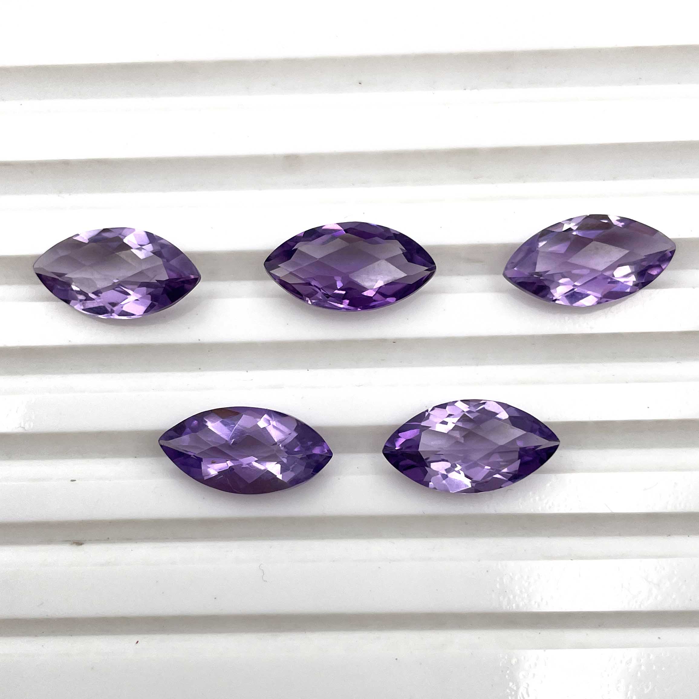 Home Amethyst Natural African Amethyst Marquise Checker Cut Gemstone Lot 5 Pcs 8*15 MM 16 CT