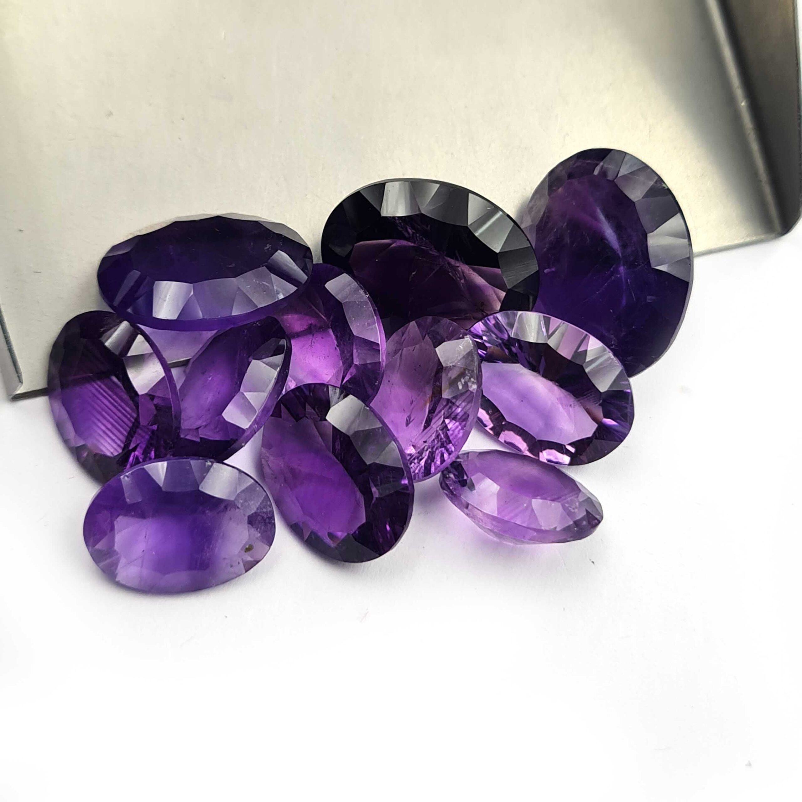 Natural African Amethyst Oval Concave Cut Gemstone 11 Pcs 10×14-16×20 MM 90 CT