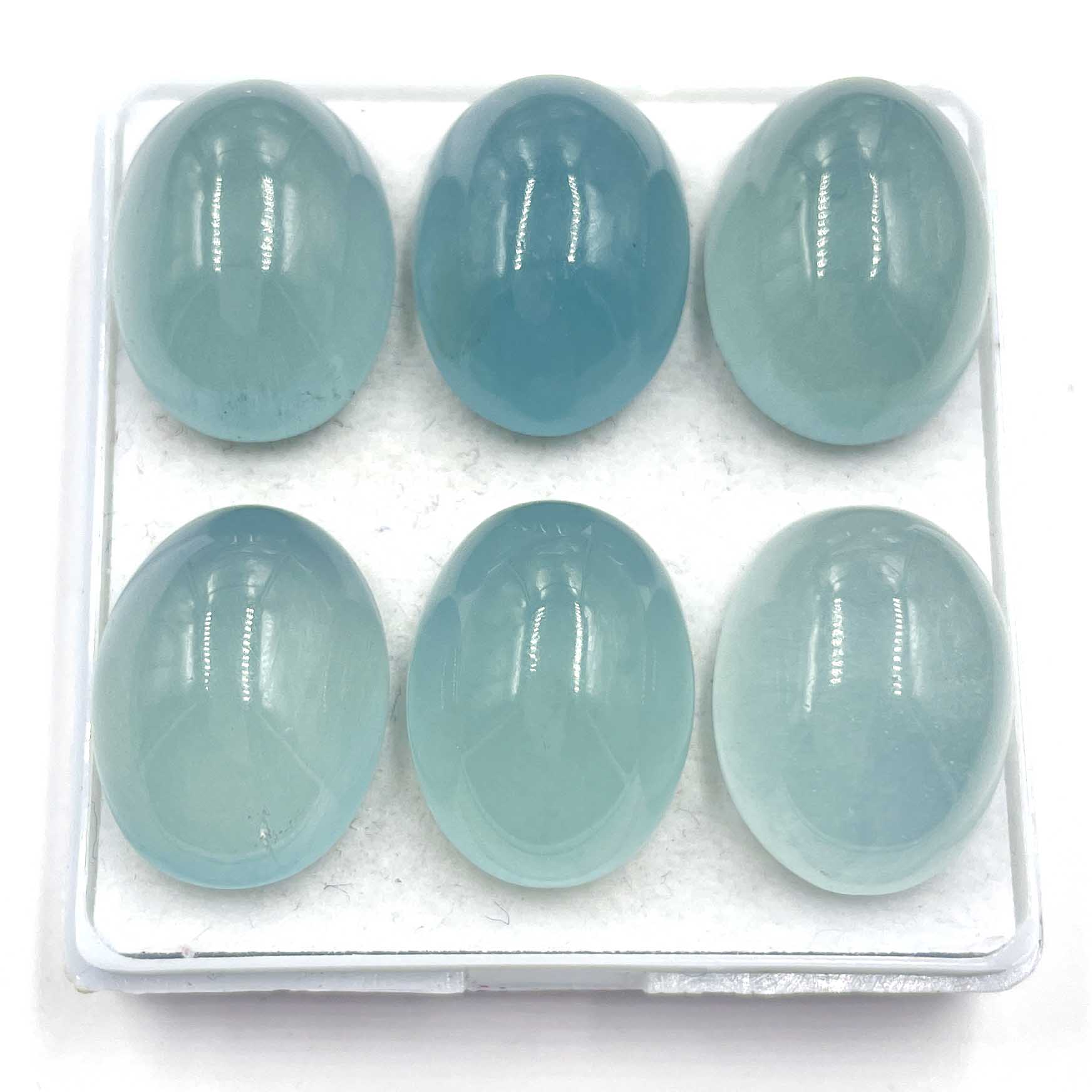 Natural Aquamarine Oval Cabochon Loose Gemstone Lot 6 Pcs 10*12 MM 32 CT