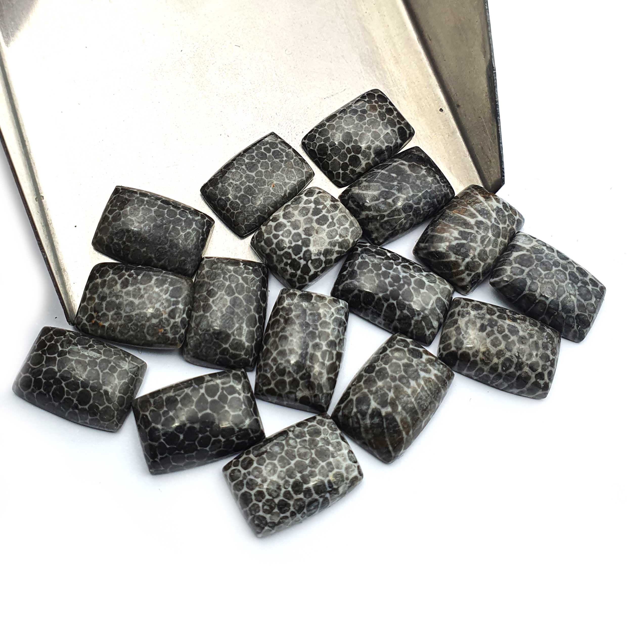 Home Other Gems Natural Black Fossil Coral Cushion Cabochon Gemstone Lot 21 Pcs 10*14 MM 115 CT