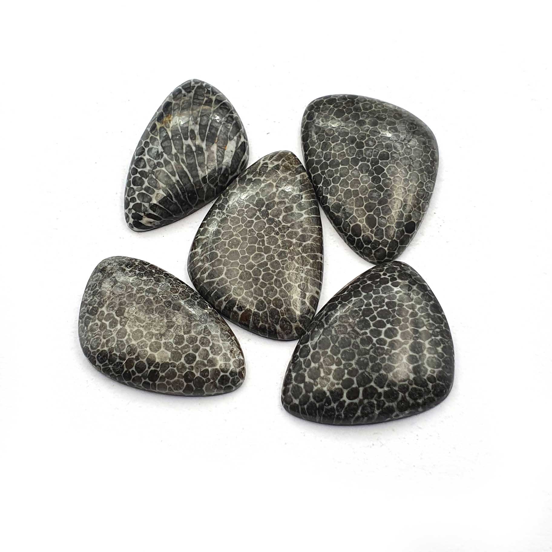 Be the first to review “Natural Black Fossil Coral Fancy Cabochon lot 5 Pcs 16-20*26-29 MM 78 CT” Cancel reply