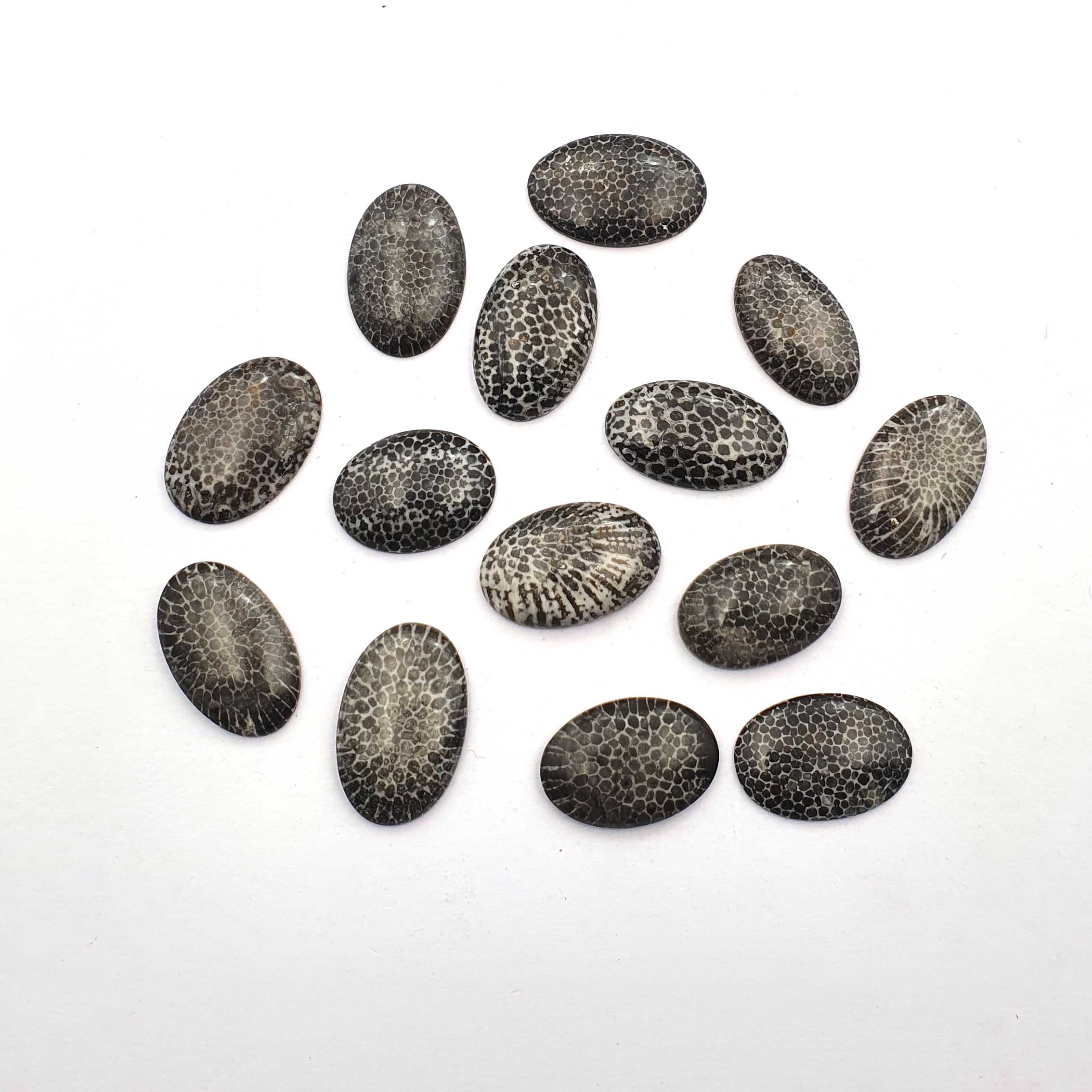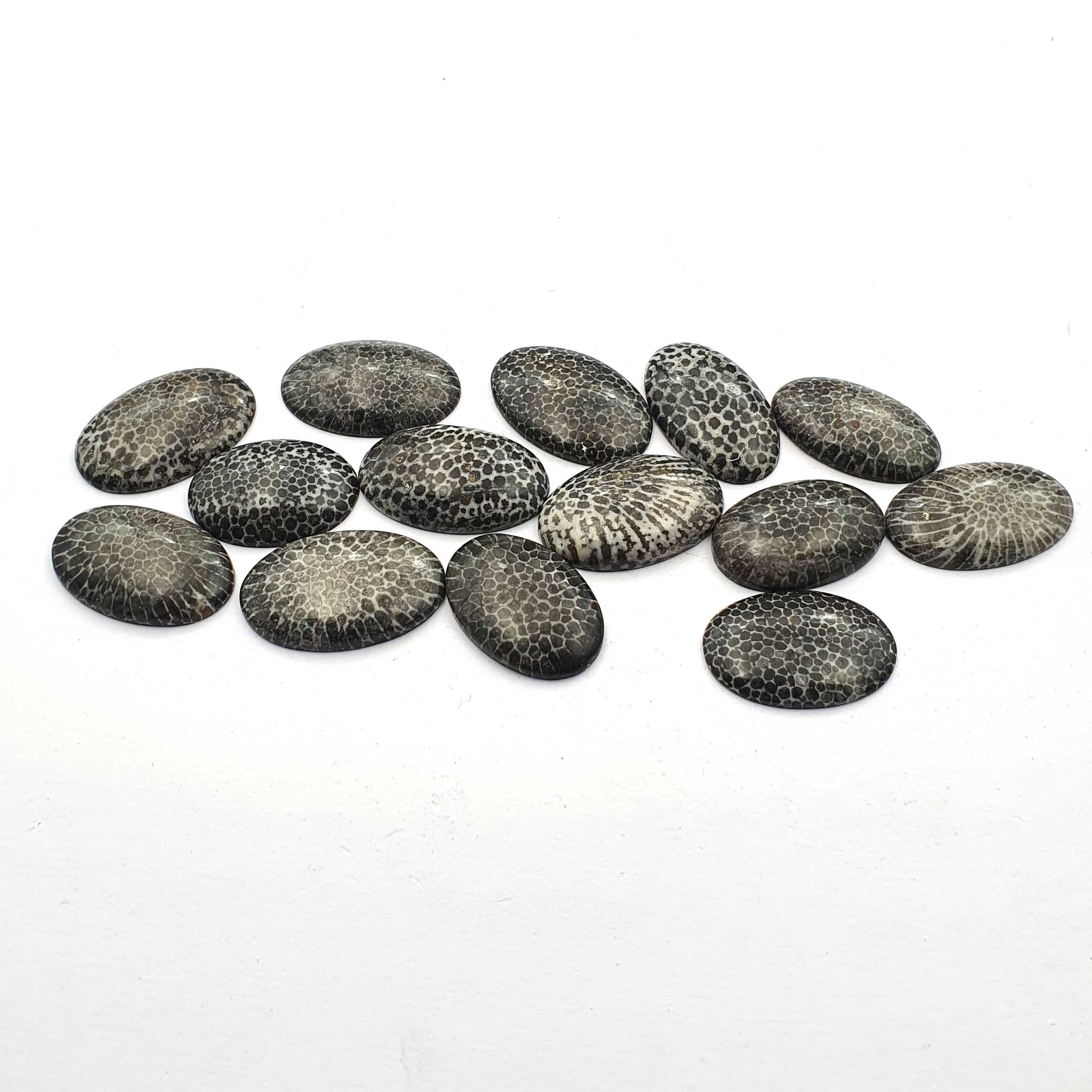Home Other Gems Natural Black Fossil Coral Oval Cabochon lot 14 Pcs 14-17*23-26 MM 176CT