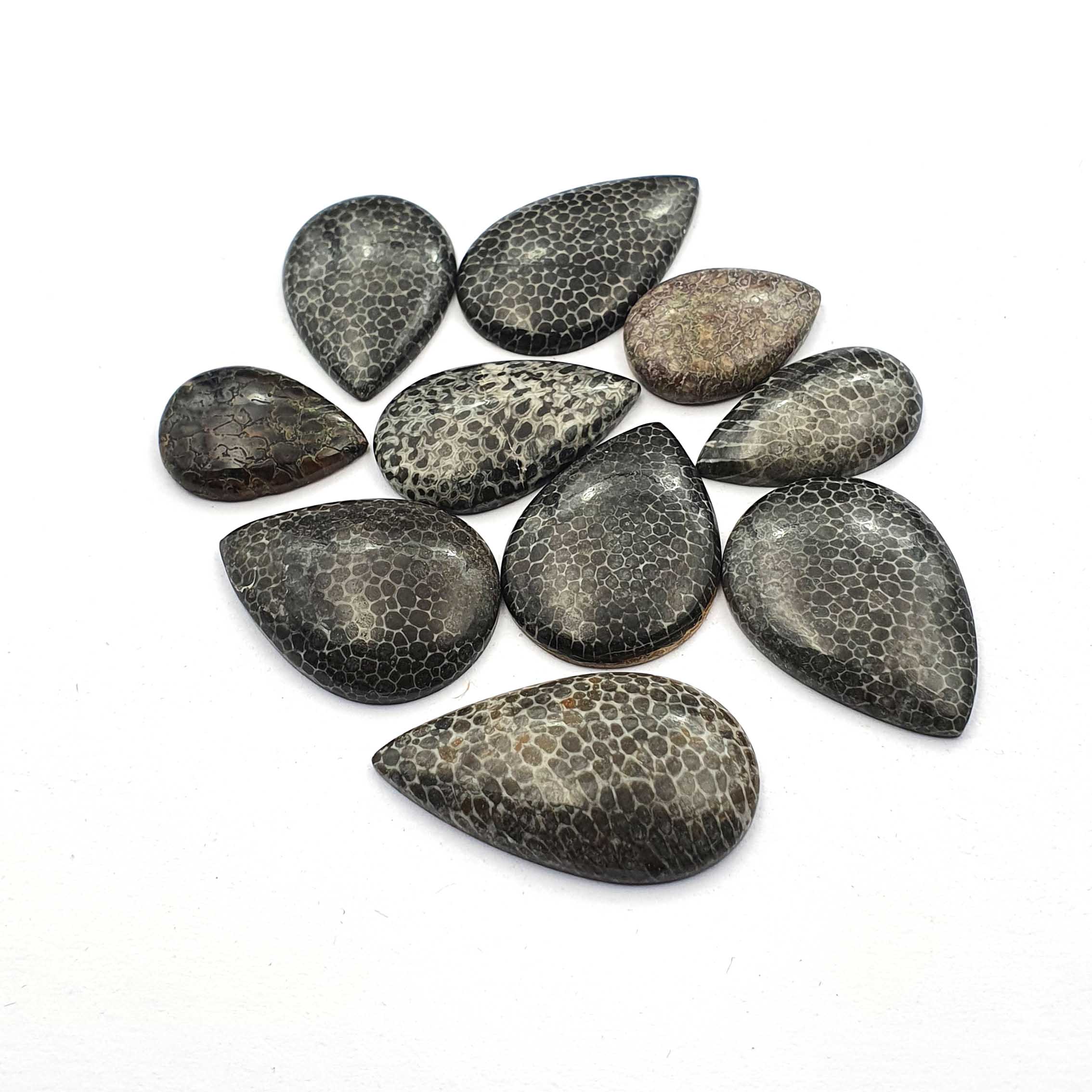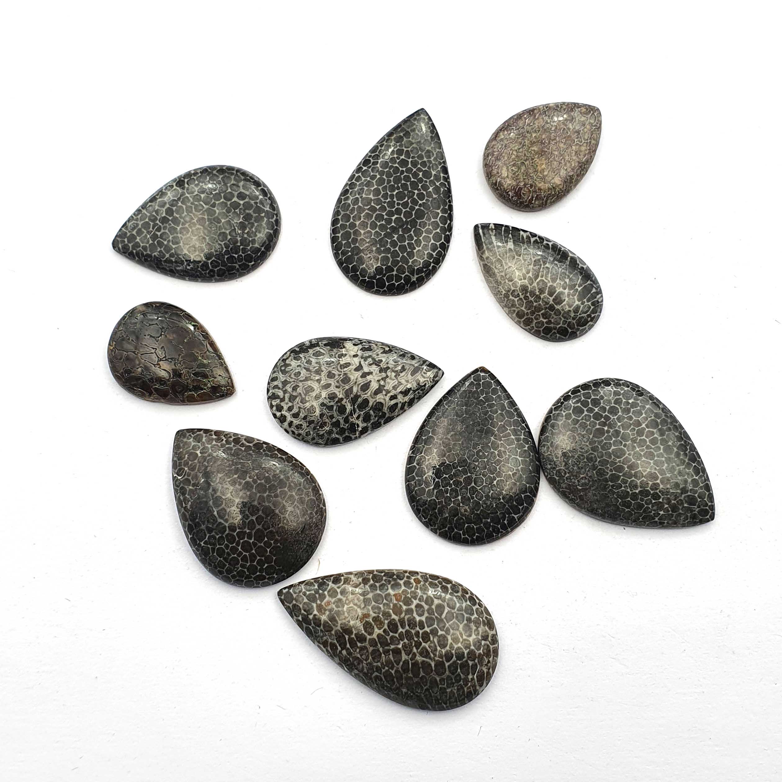 Home Other Gems Natural Black Fossil Coral Pear Cabochon Loose Gemstone Lot 10 Pcs 163 CT