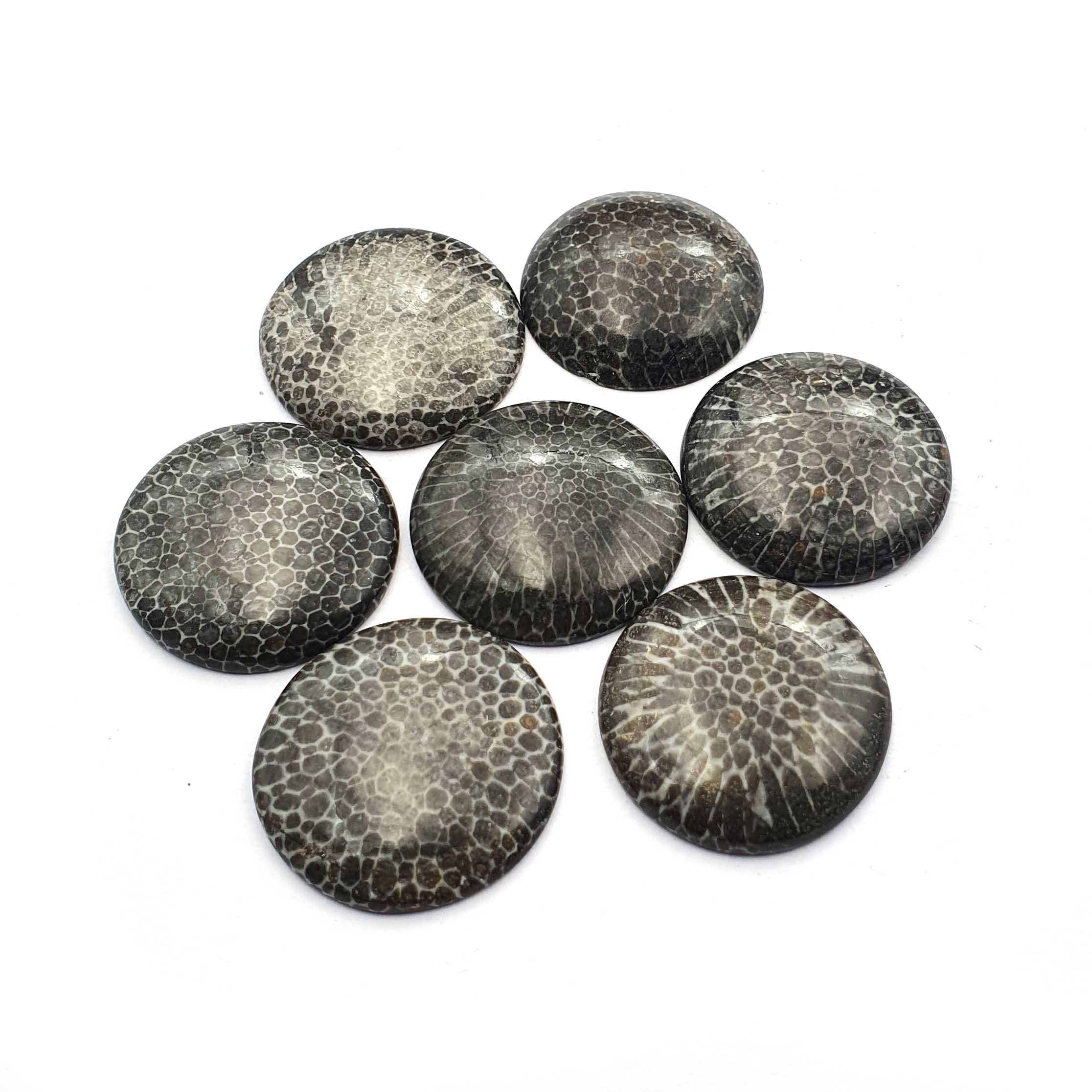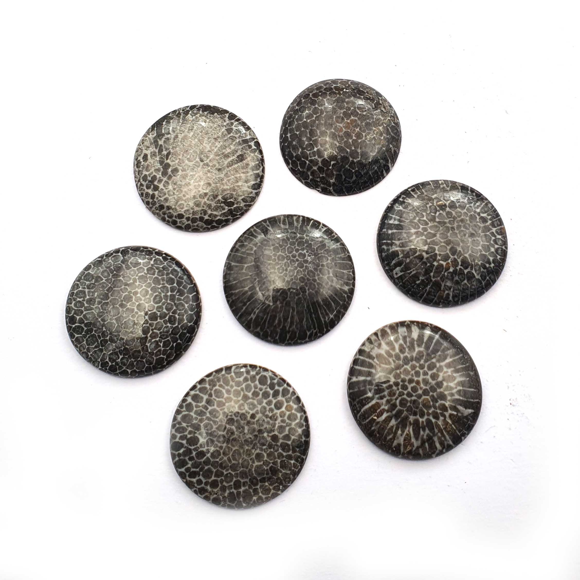 Home Other Gems Natural Black Fossil Coral Round Cabochon lot 7 Pcs 22 MM 121 CT