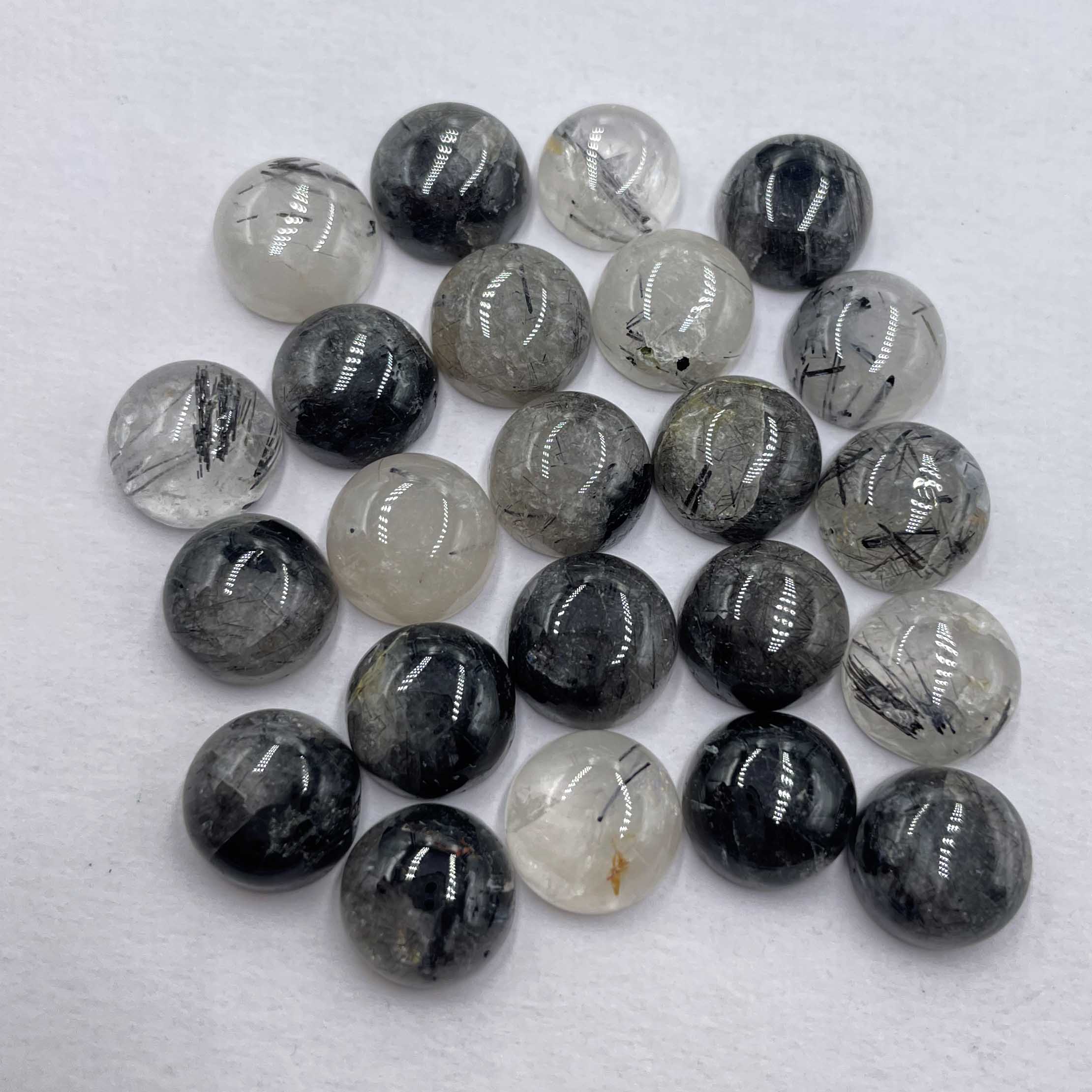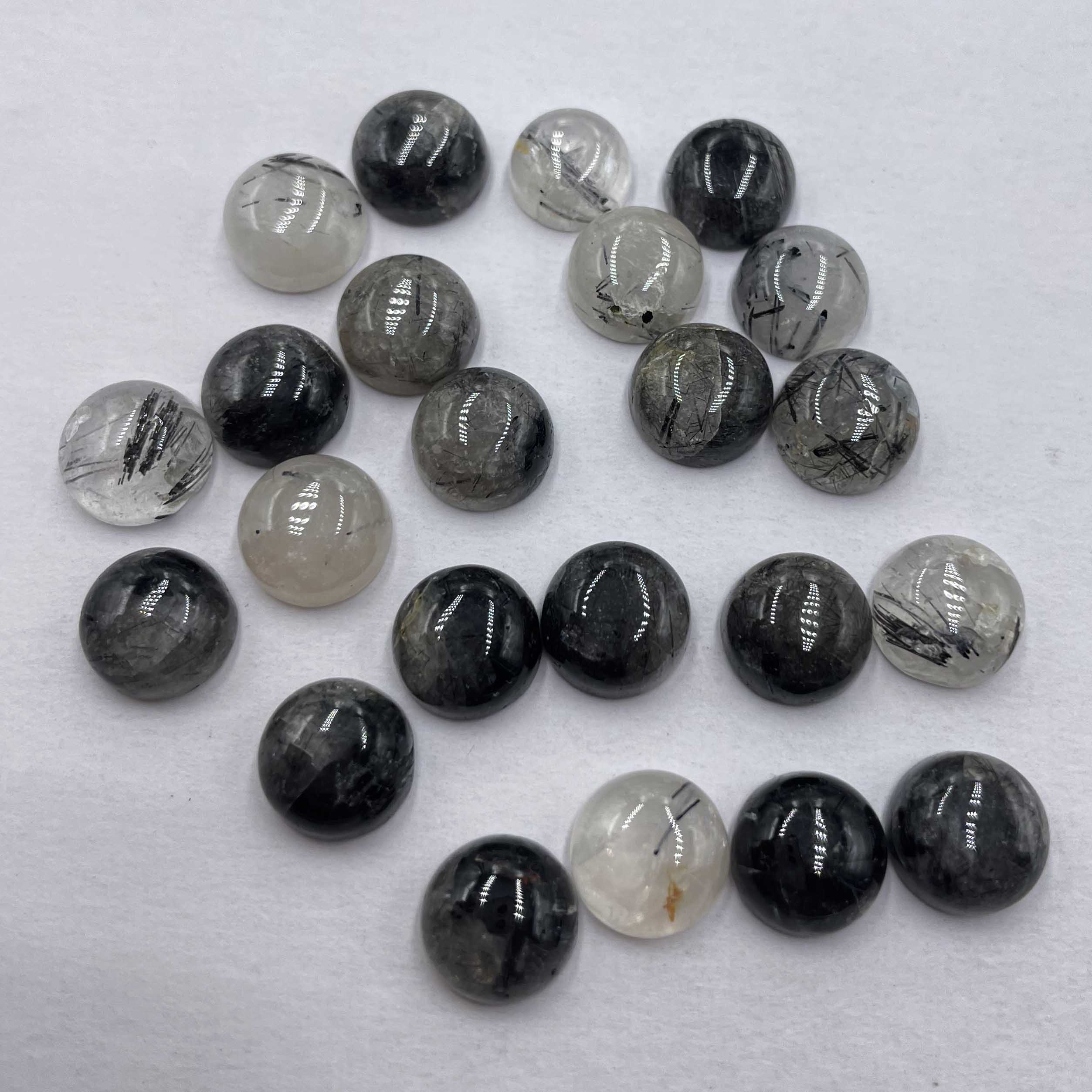 Home Rutile Quartz Natural Black Routile Quartz Round Cabochon Gemstone Lot 23 Pcs 10 MM 94 CT