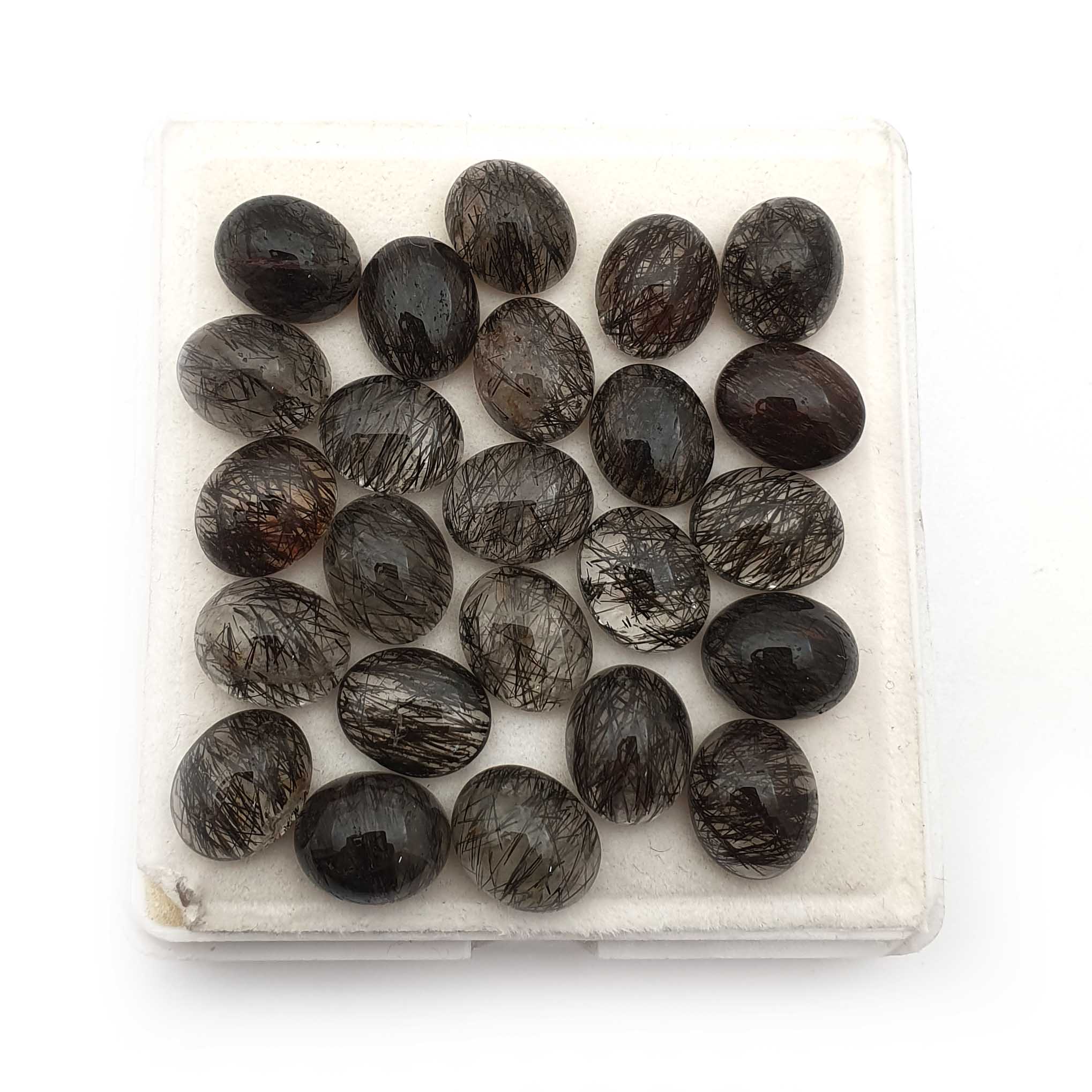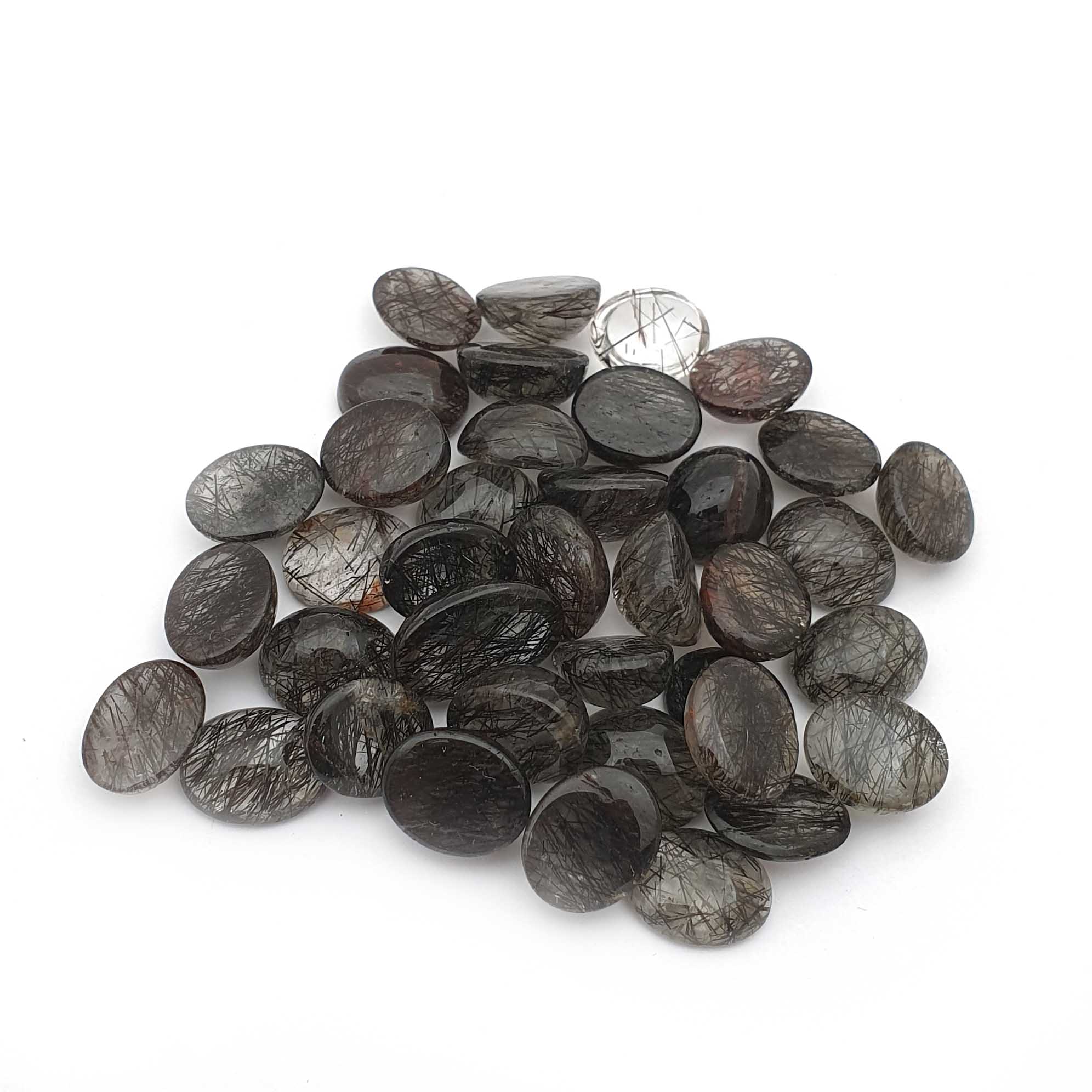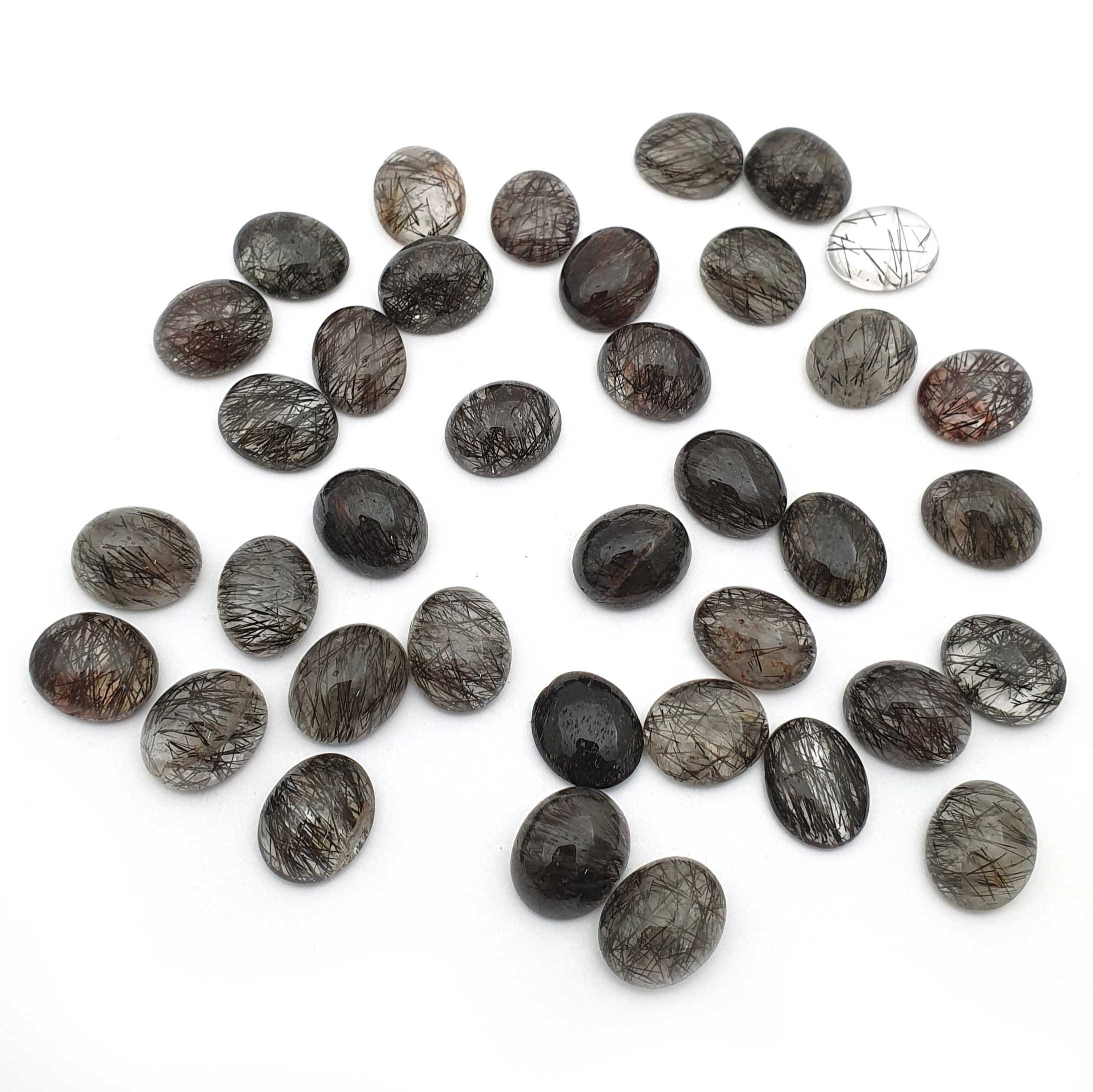 Home Rutile Quartz Natural Black Rutile Quartz Loose Stone Oval Cabochon 9*11 MM 100 CT 29 Pcs
