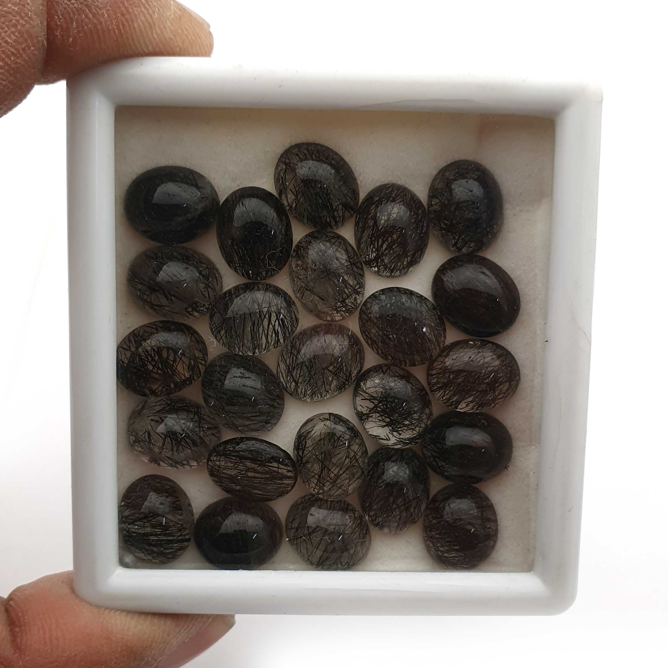 Natural Black Rutile Quartz Loose Stone Oval Cabochon 9*11 MM 100 CT 29 Pcs