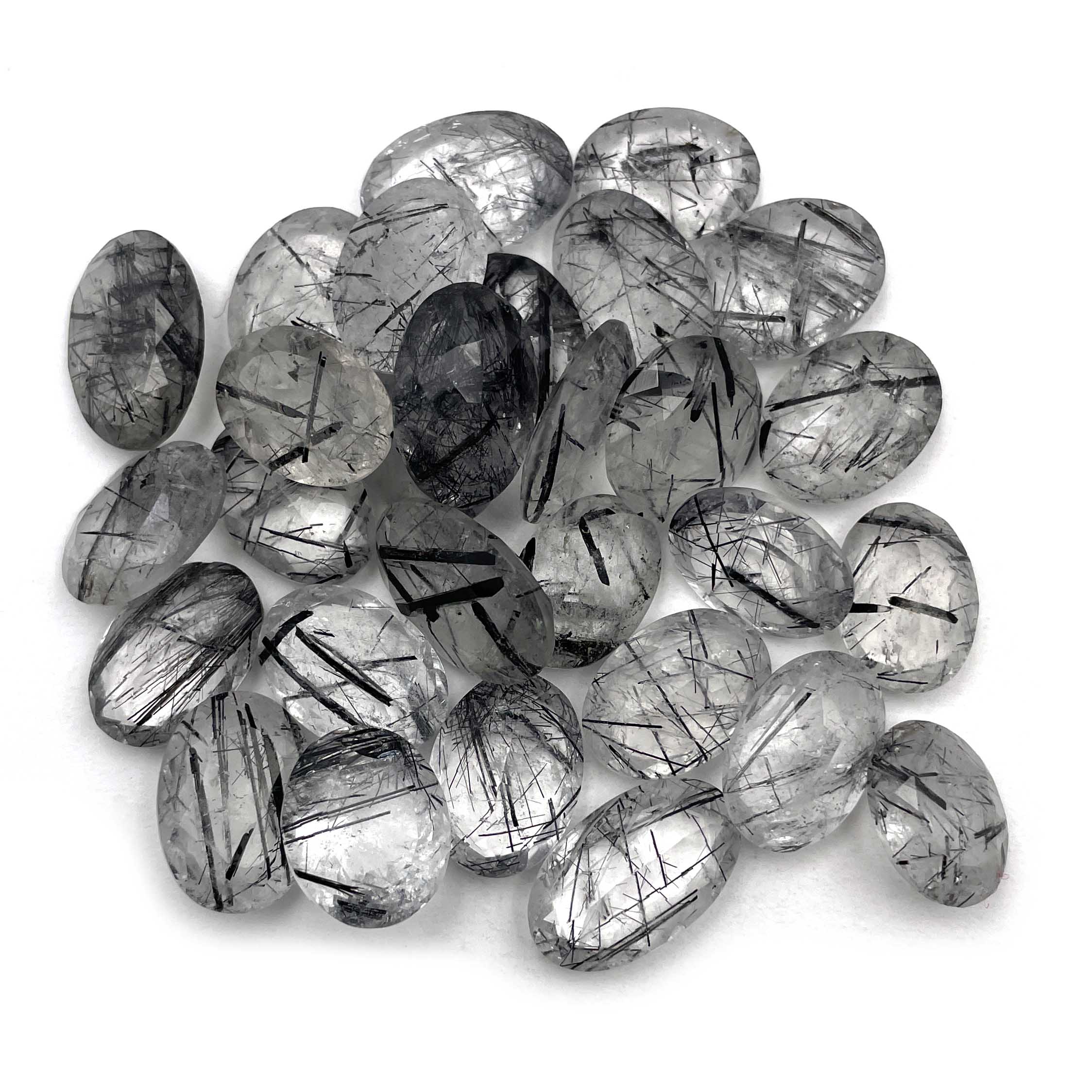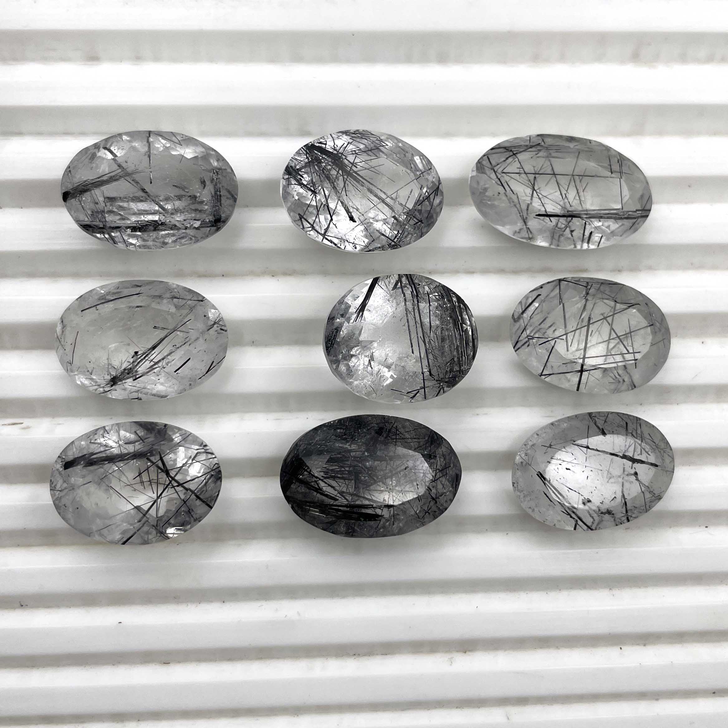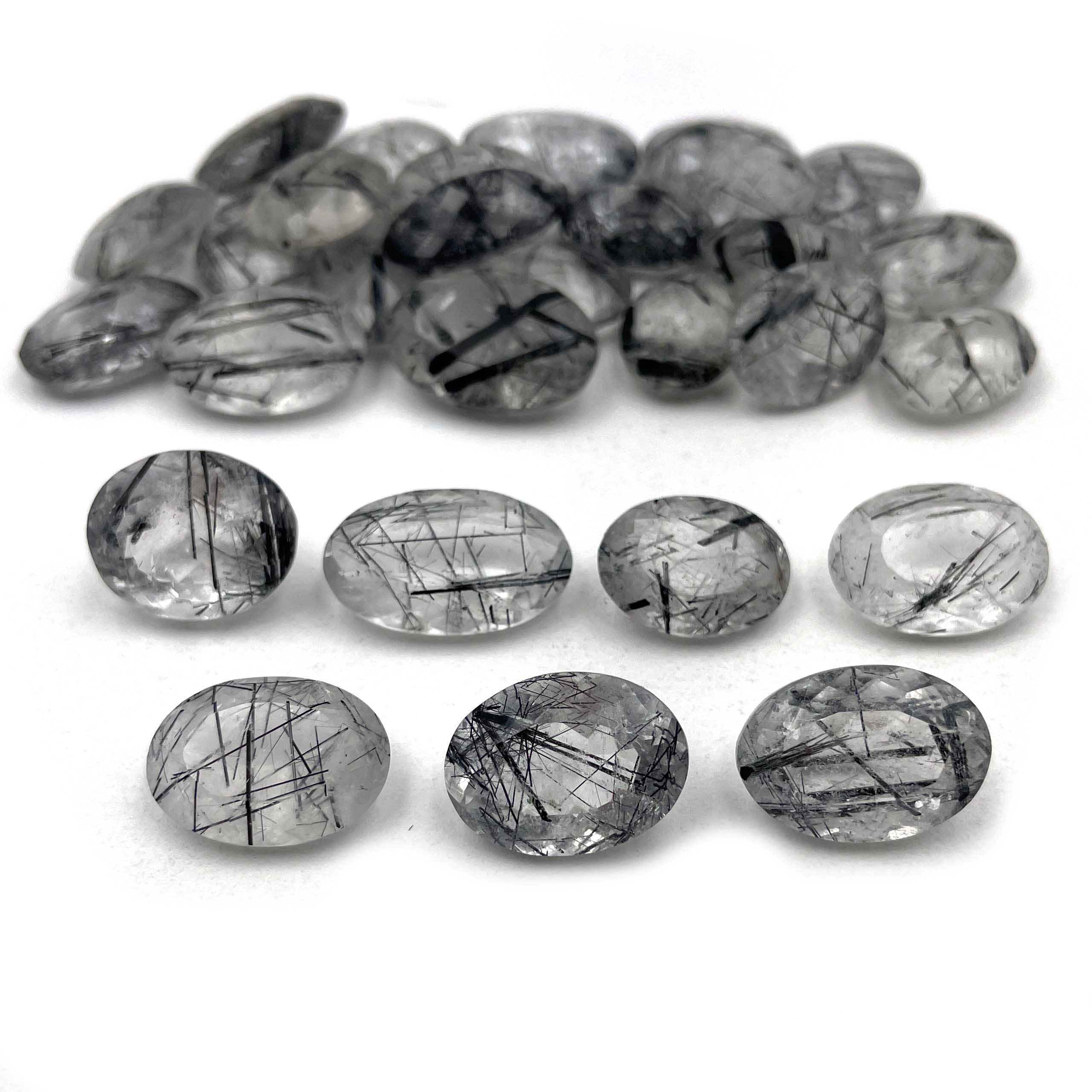 Natural Black Rutile Quartz Oval Cut Stone Lot 10 Pcs 13*17-15*20 MM 100 CT