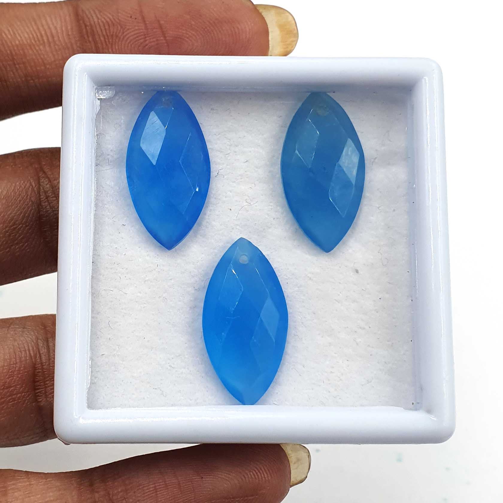 Home Chalcedony Natural Blue Chalcedony Marquise Briolette Cut Stone Lot 3 Pcs 11*22 MM 26.10 CT