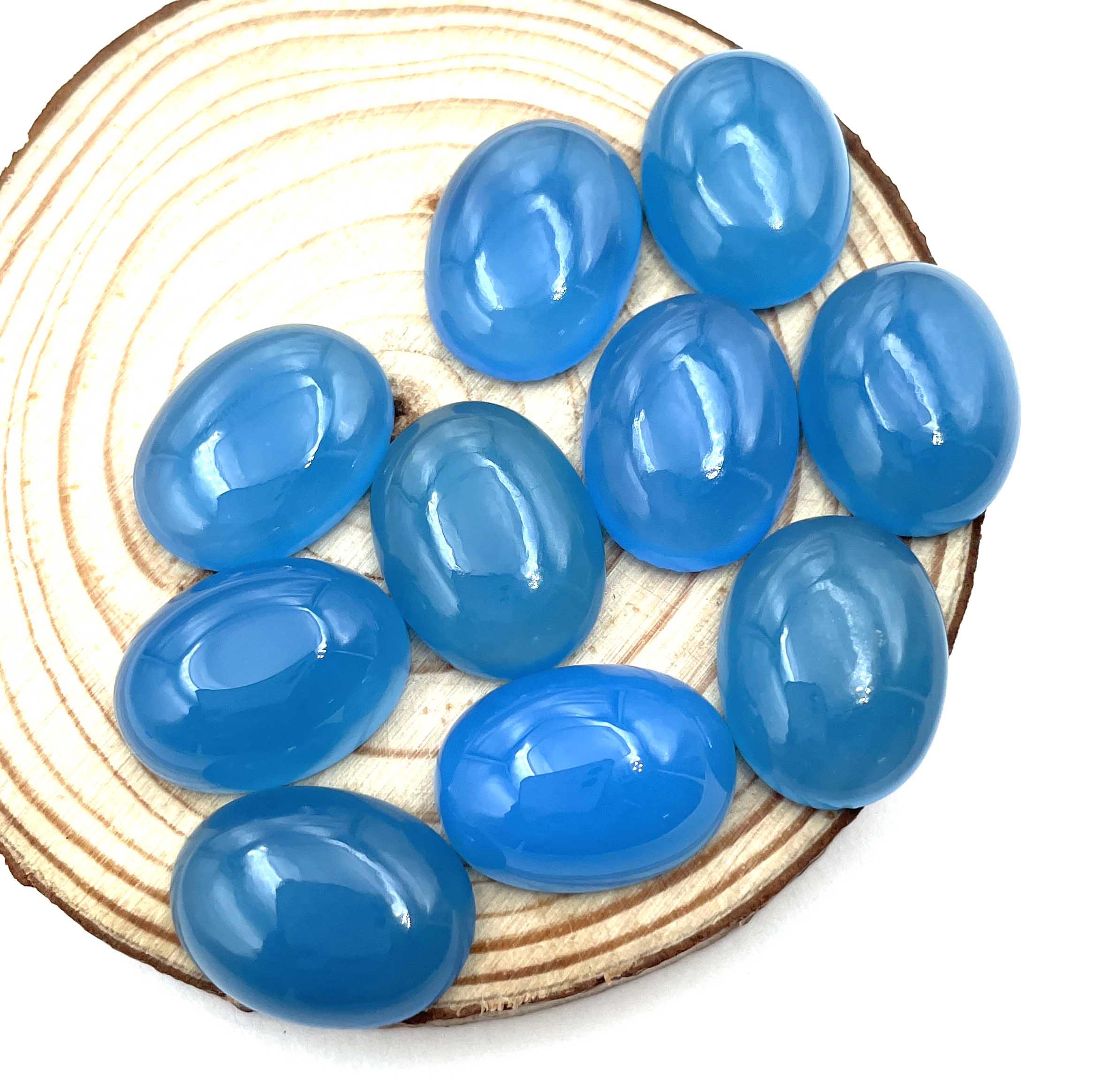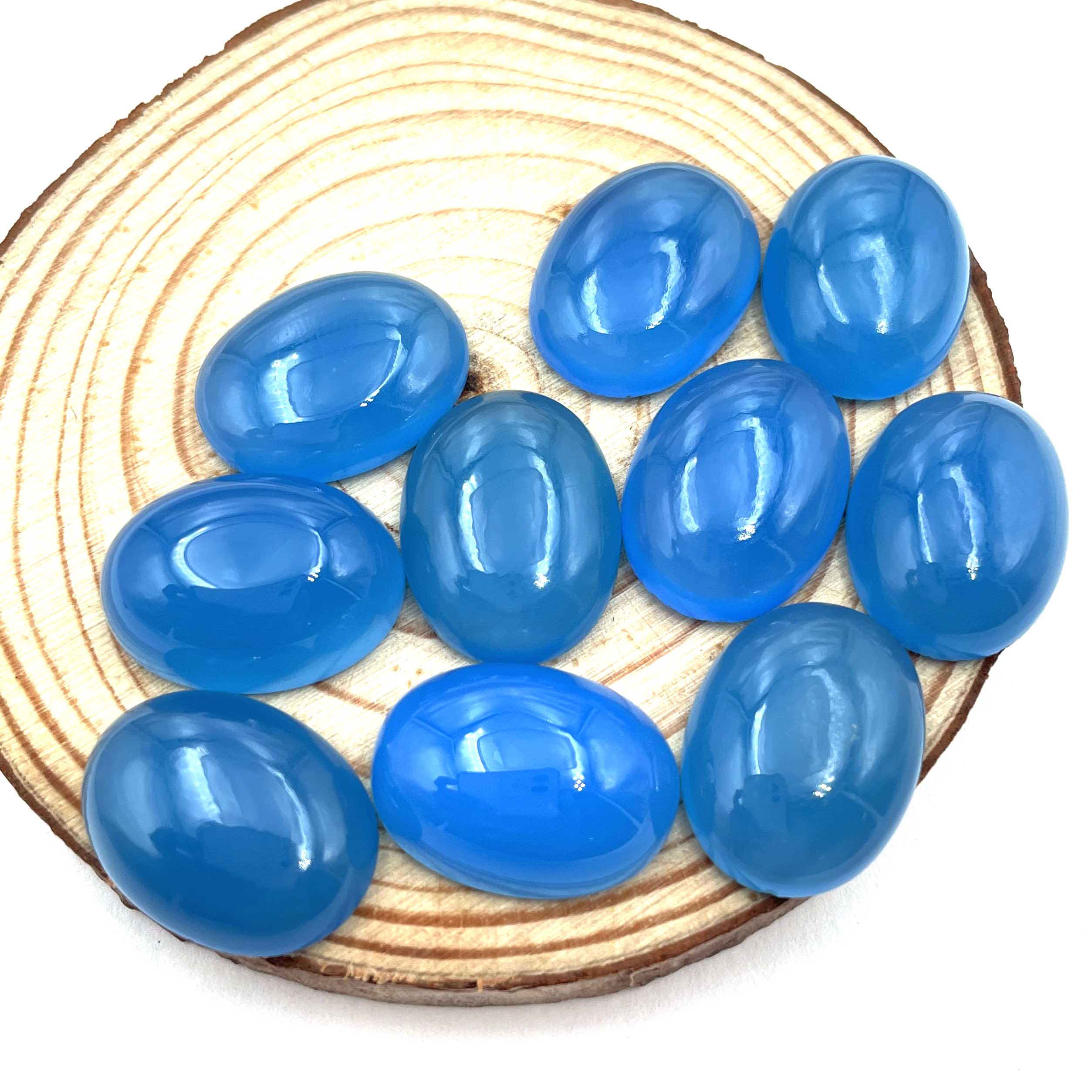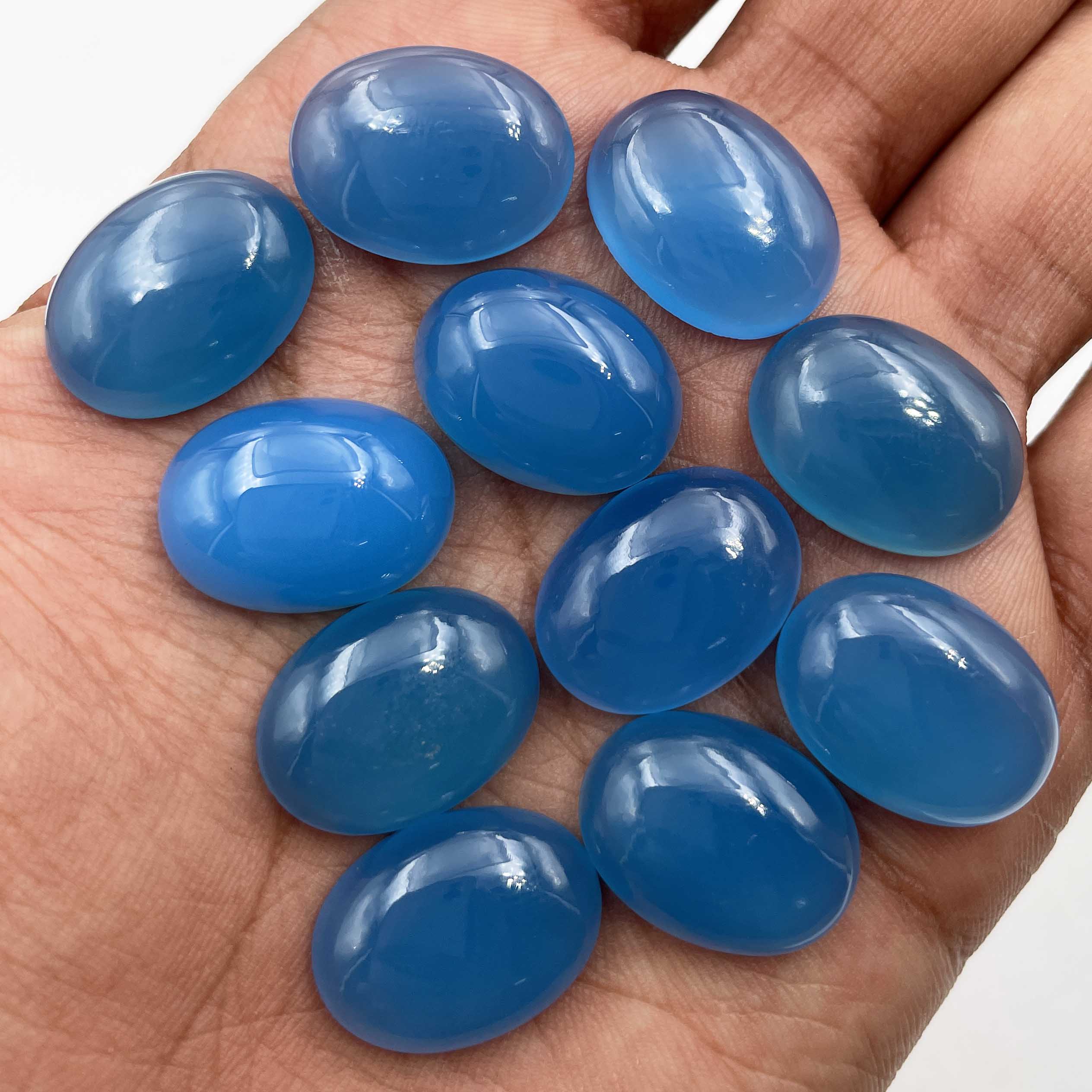 Home Chalcedony Natural Blue Chalcedony Oval Cabochon Loose Gemstone Lot 11 Pcs 15*20 MM 160 CT