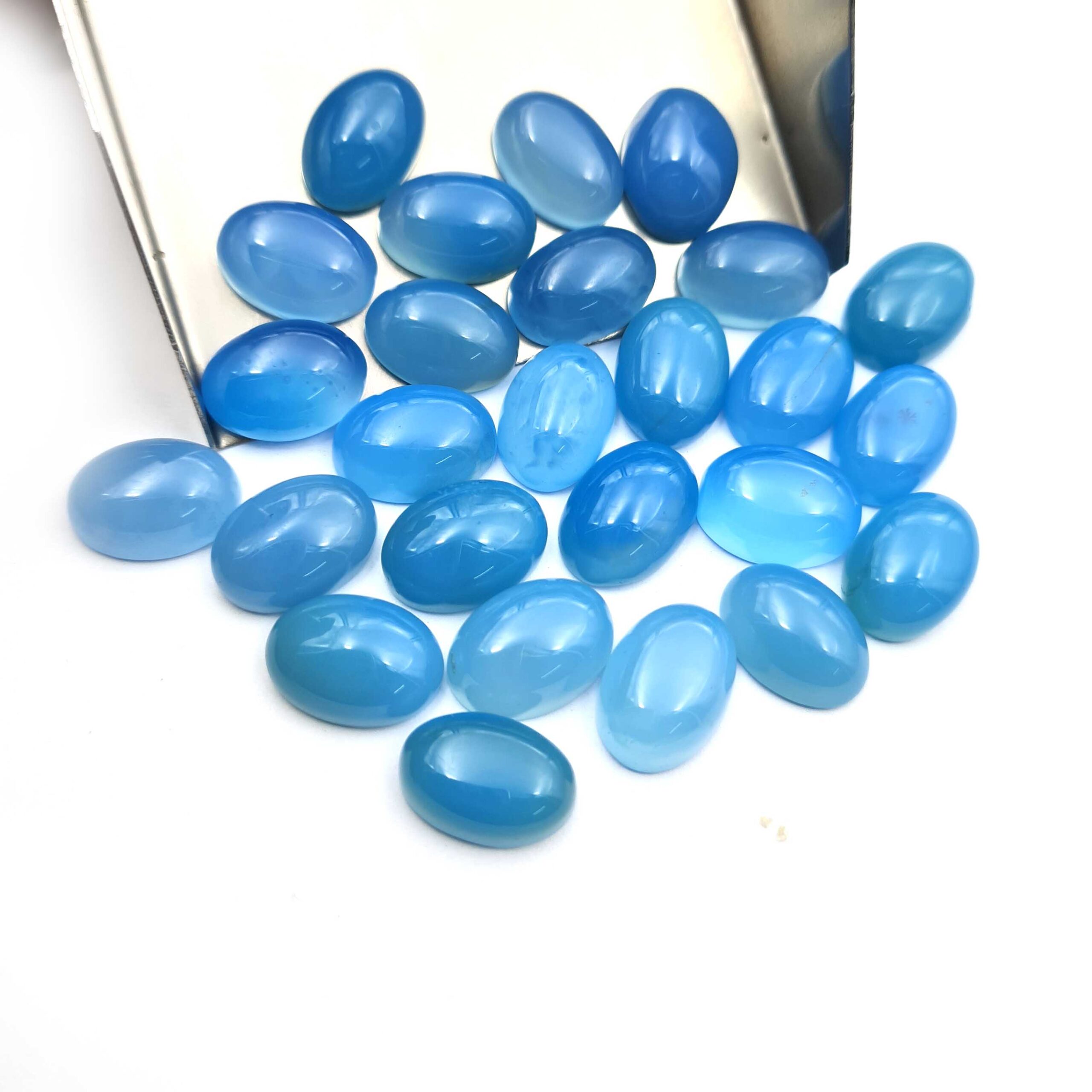 Home Chalcedony Natural Blue Chalcedony Oval Cabochon Loose Gemstone Lot 26 Pcs 10*14 MM 163 CT