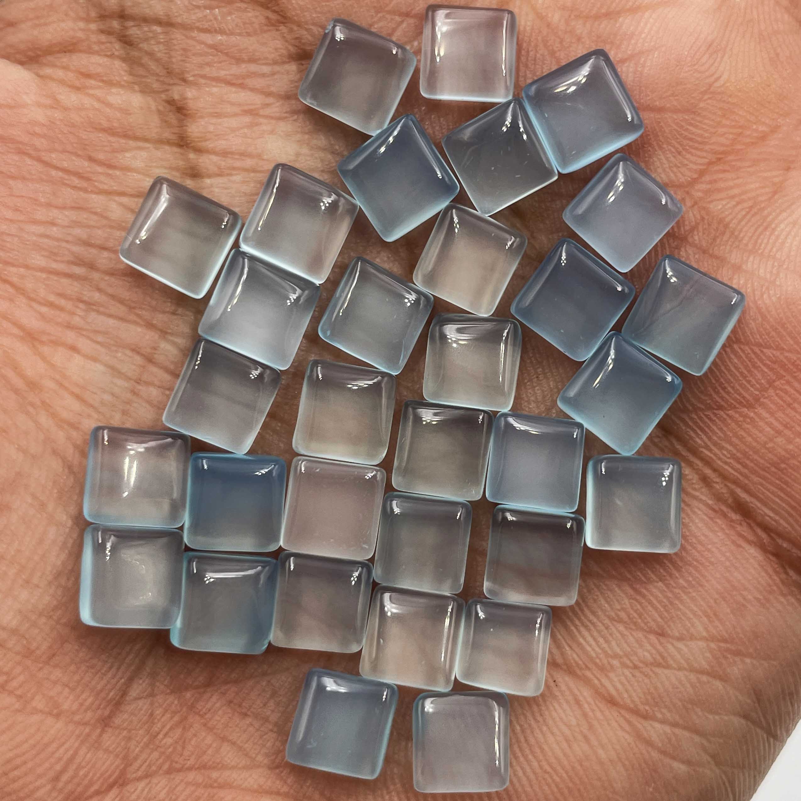 Home Chalcedony Natural Blue Chalcedony Square Cabochon Loose Gemstone Lot 32 Pcs 7 MM 60 CT