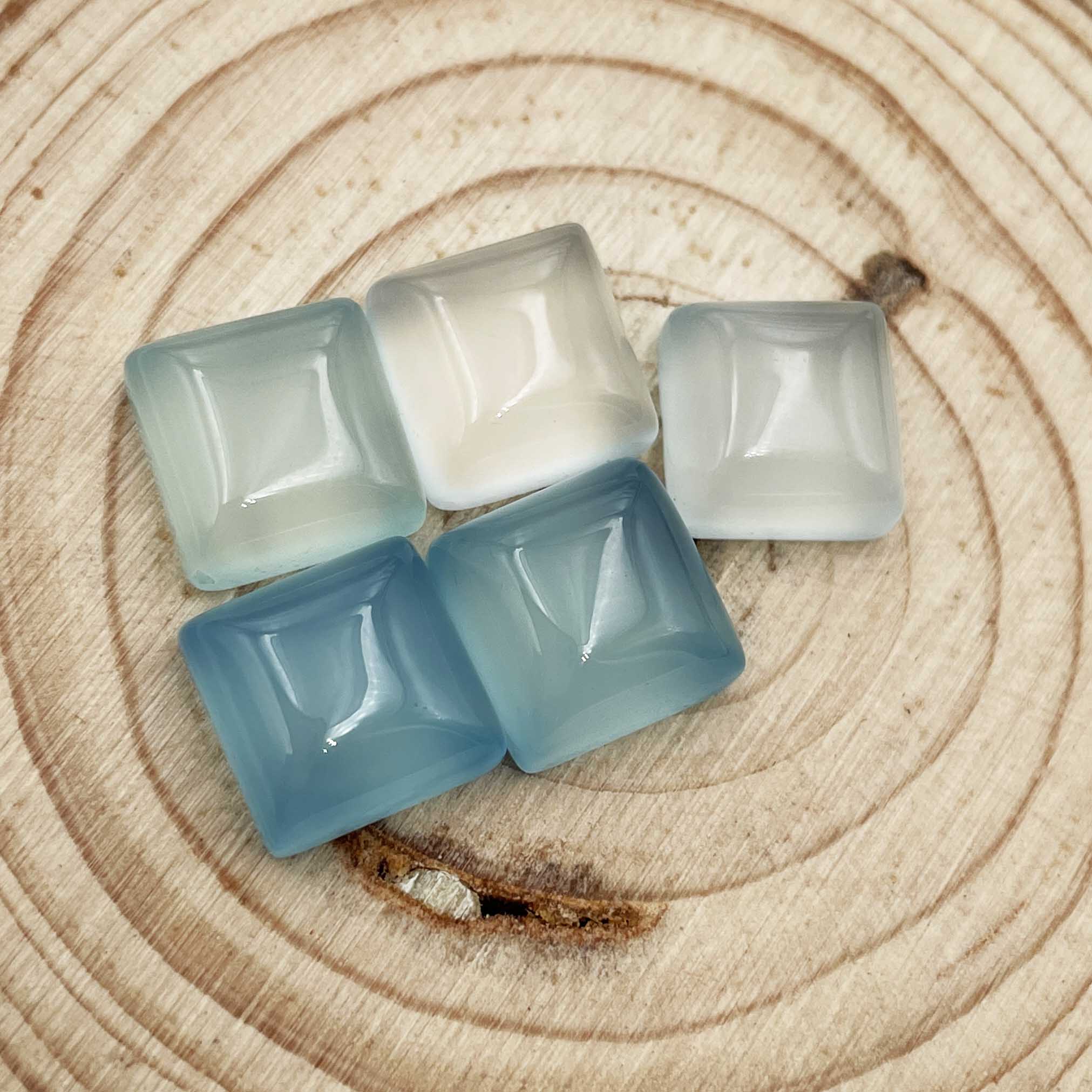 Home Chalcedony Natural Blue Chalcedony Square Cabochon Loose Gemstone Lot 5 Pcs 11 MM 35 CT
