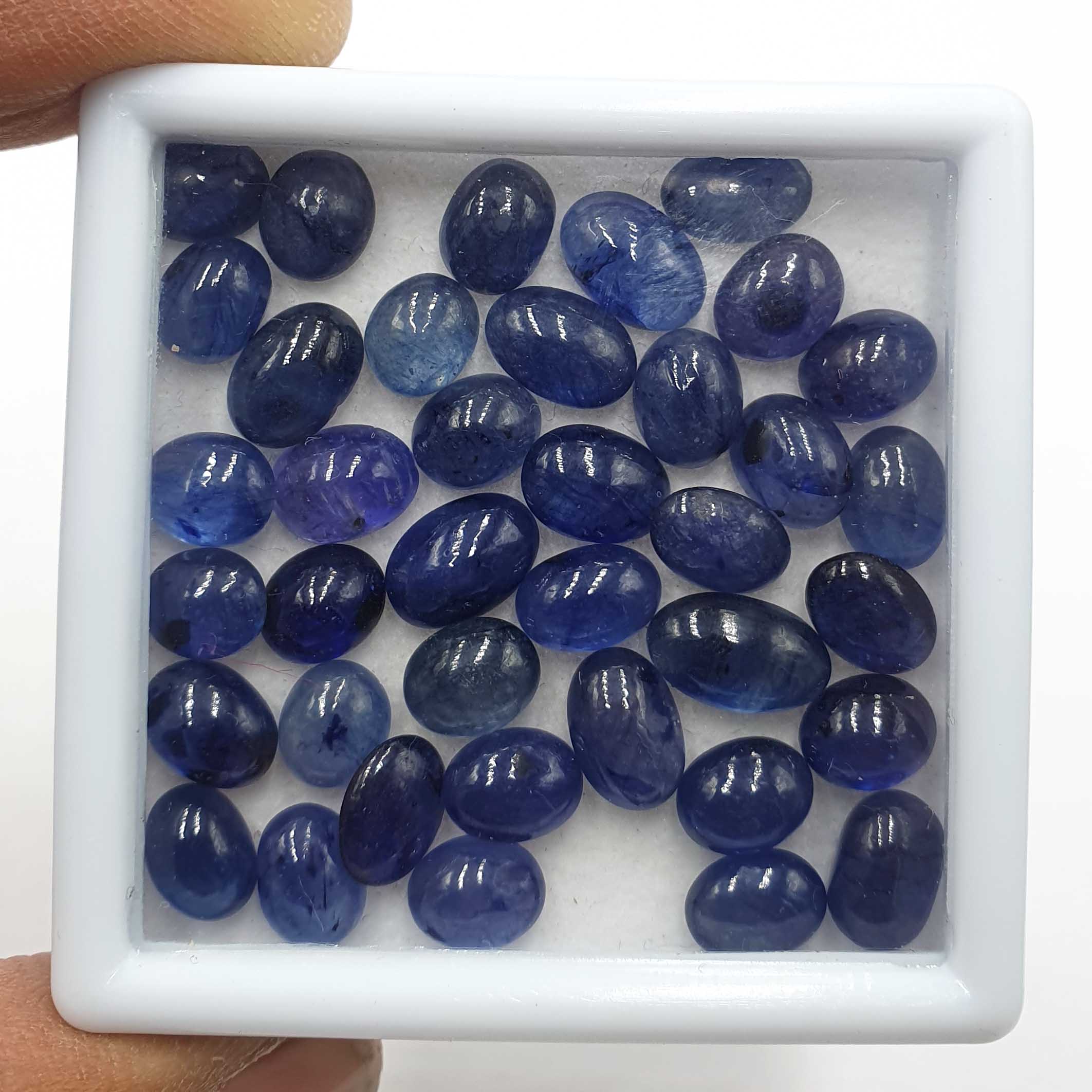 Home Other Gems Natural Blue Sapphire Oval Cabochon Loose Stone Lot 6*7-6*10 MM 30 CT 18 Pcs