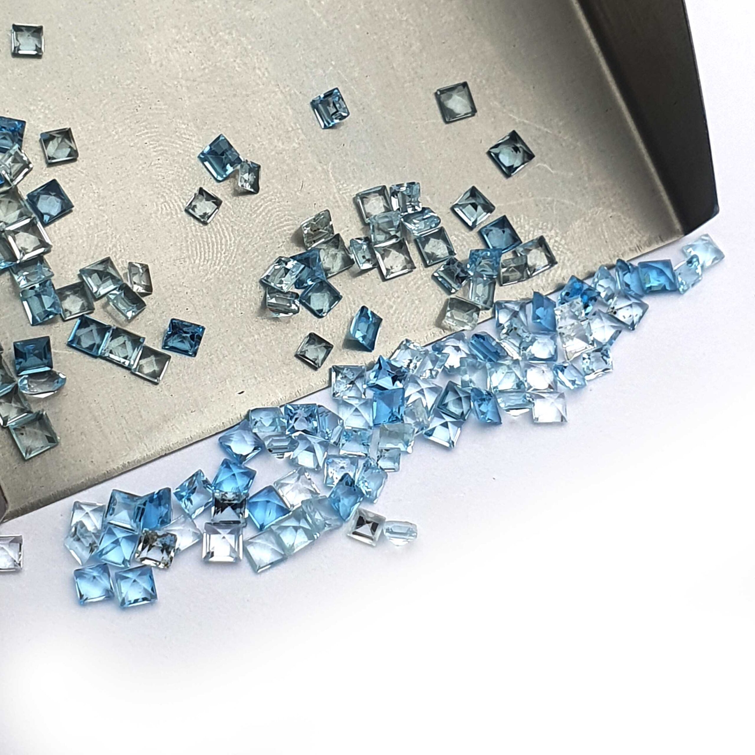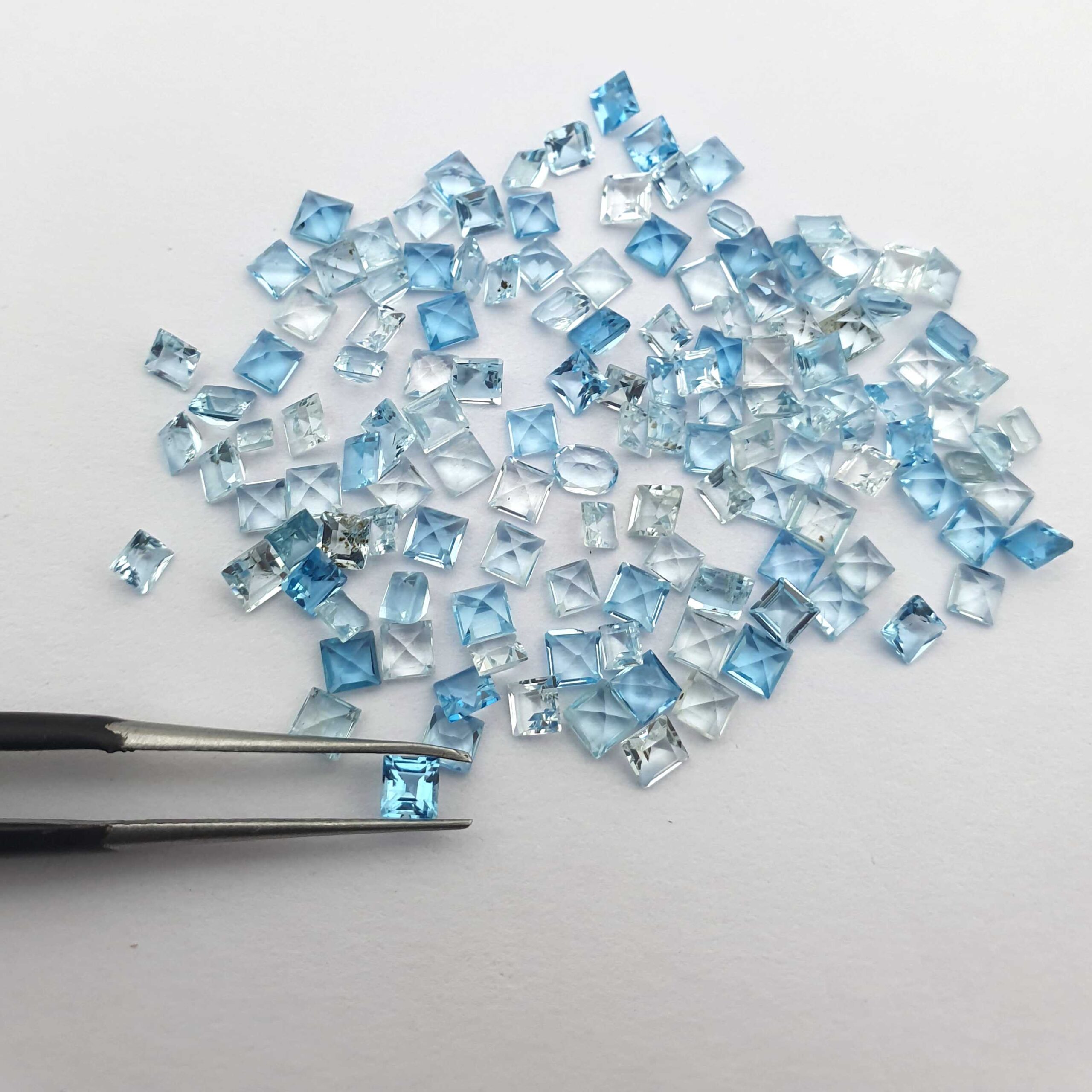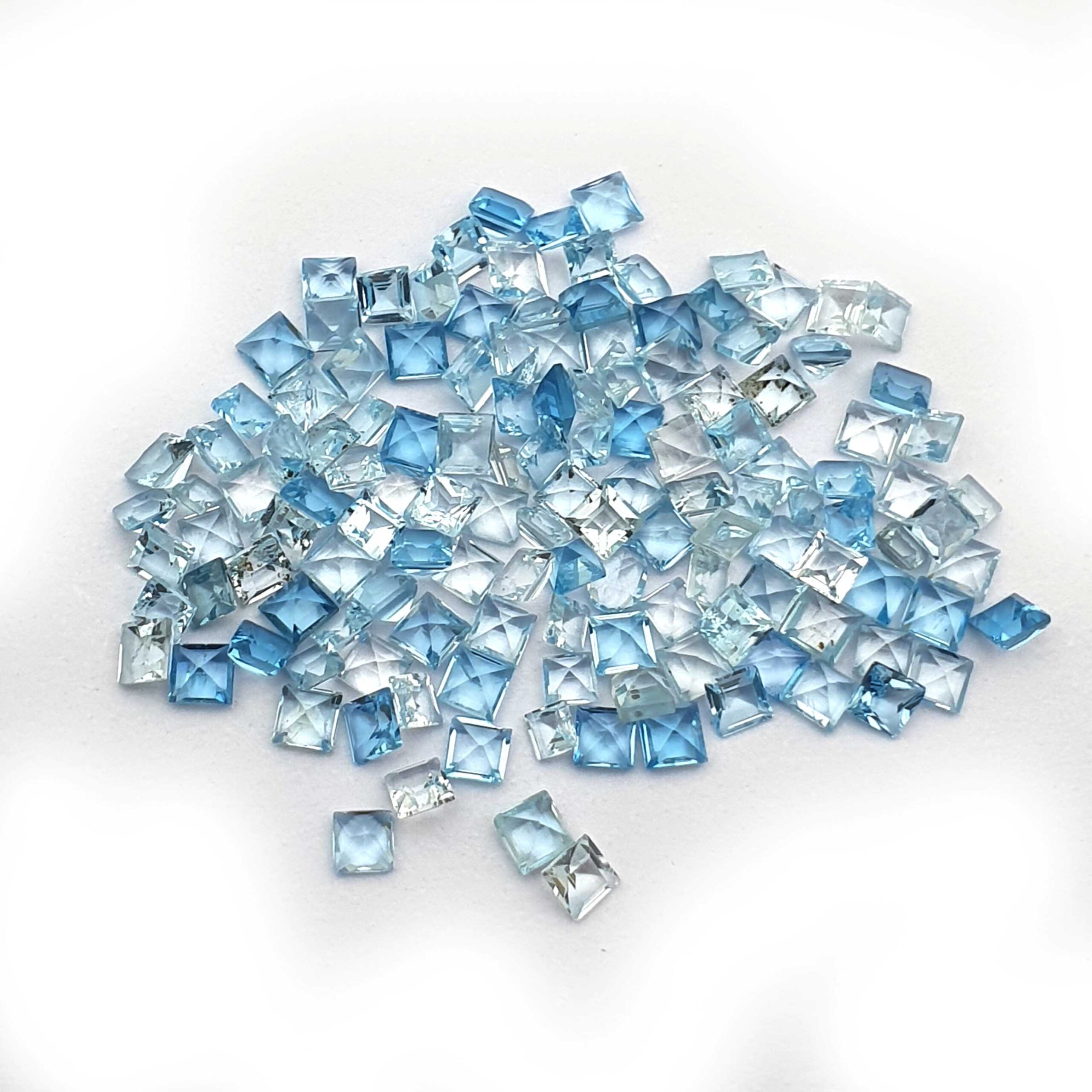 Natural Blue Topaz Mix Size Square Cut Loose Gemstone Lot 134 Pcs 2-3 MM 22 CT