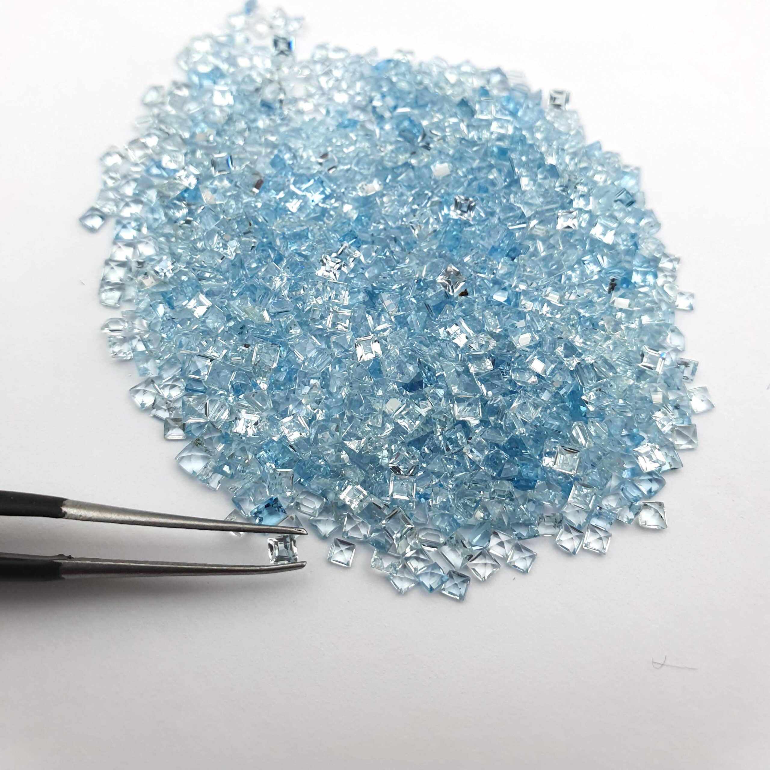 Natural Blue Topaz Mix Size Square Cut Loose Gemstone Lot 295 Pcs 2-3 MM 25 CT