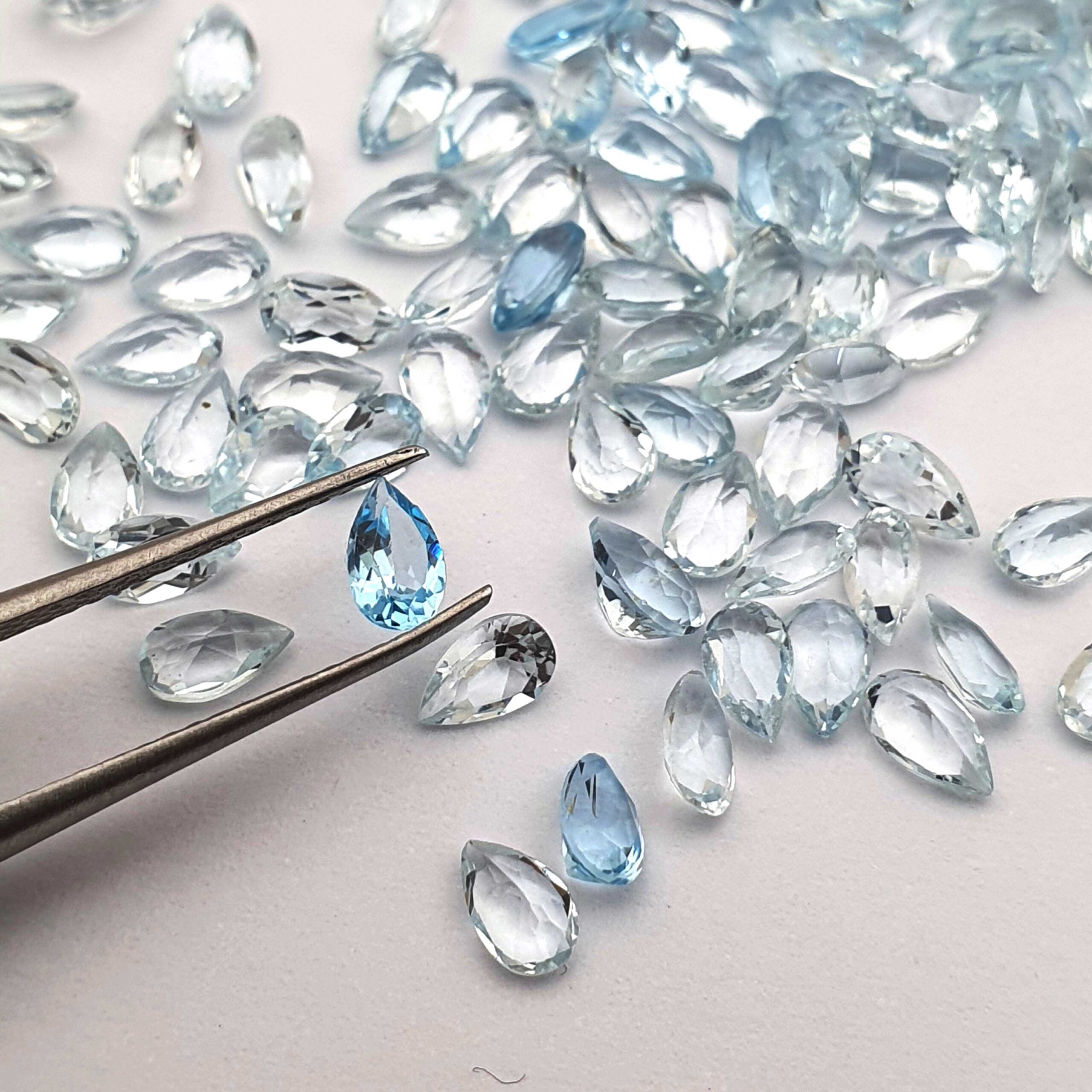 Home Blue Topaz Natural Blue Topaz Pear Cut Loose Lot Gemstone For Jewelry 130 Pcs 3-5 MM 29 CT