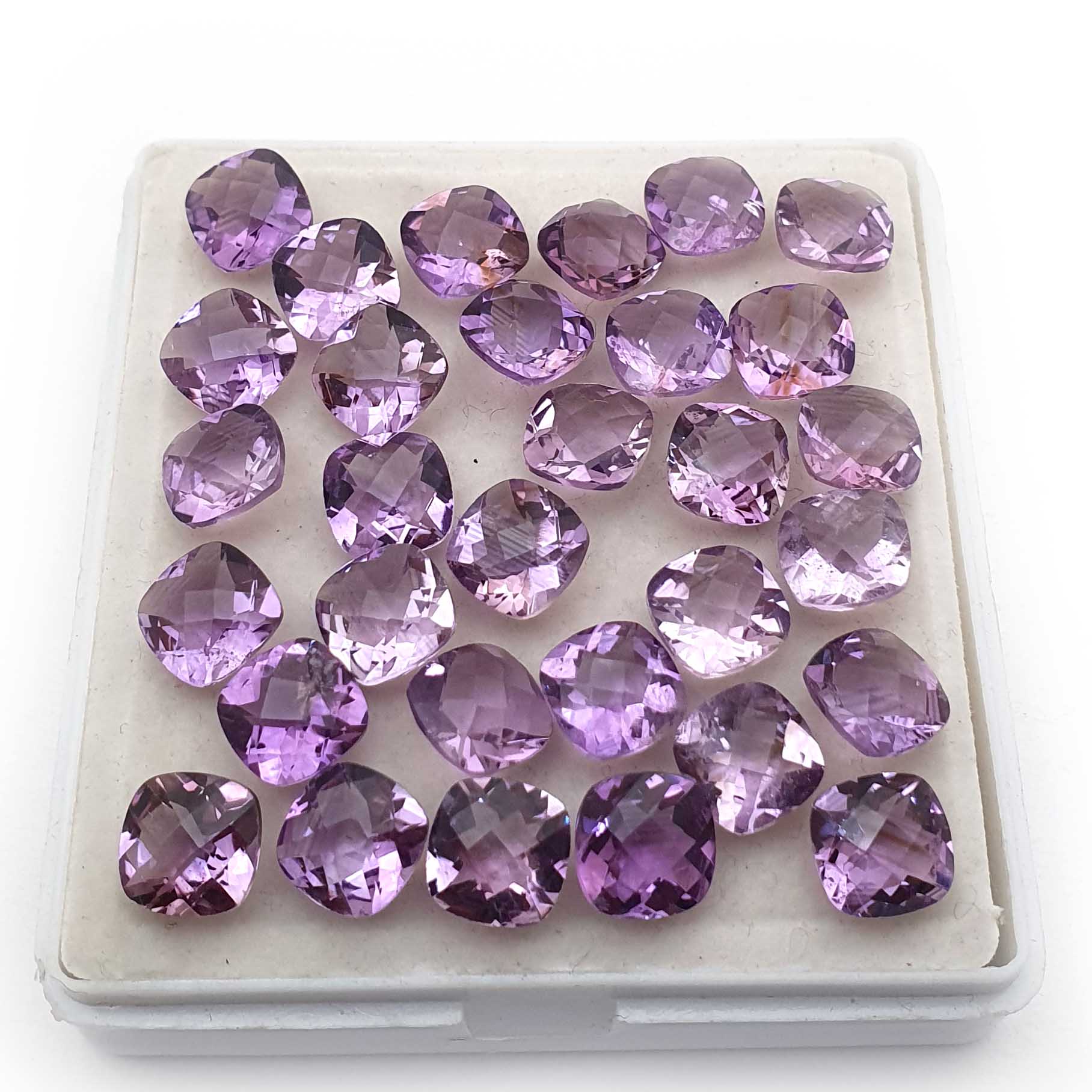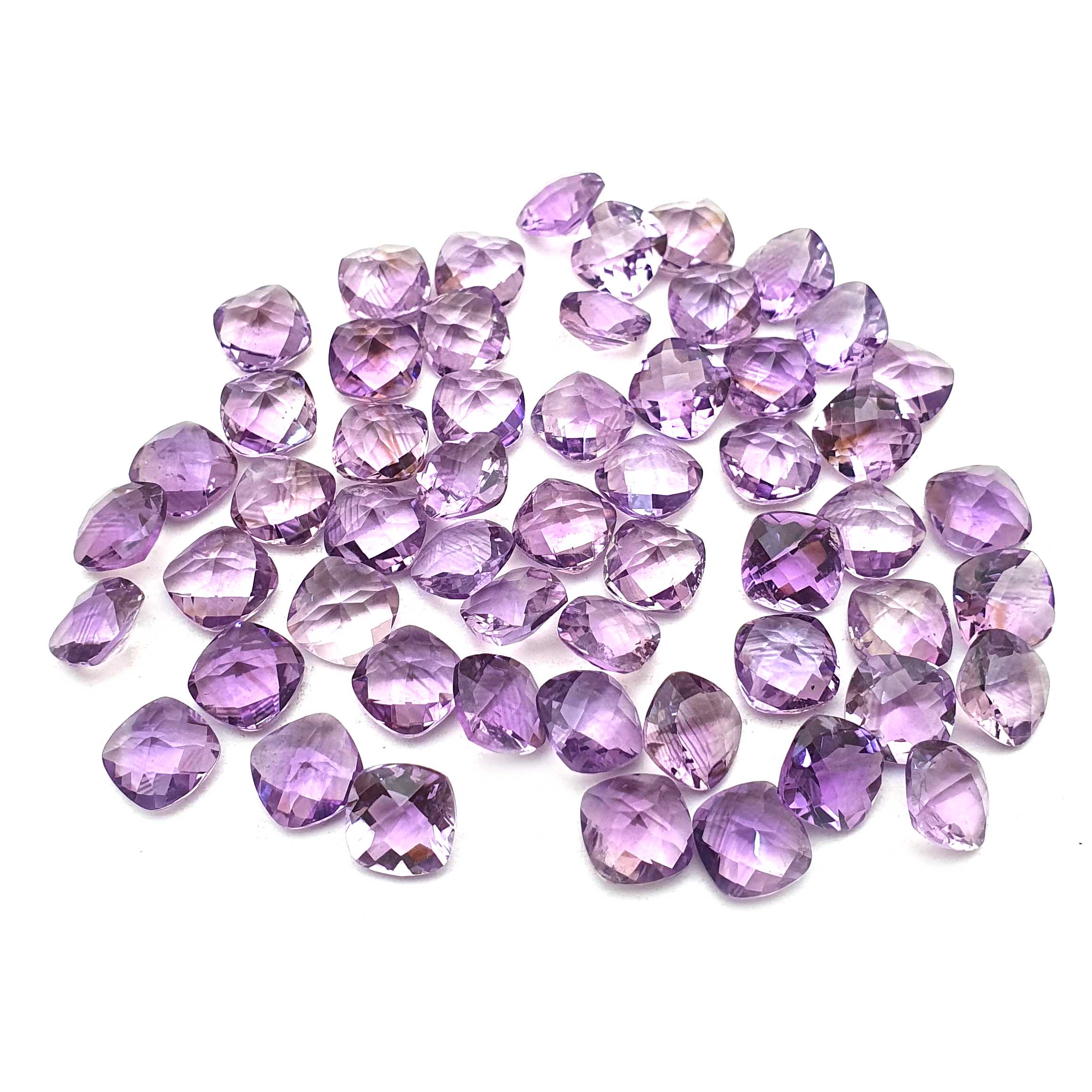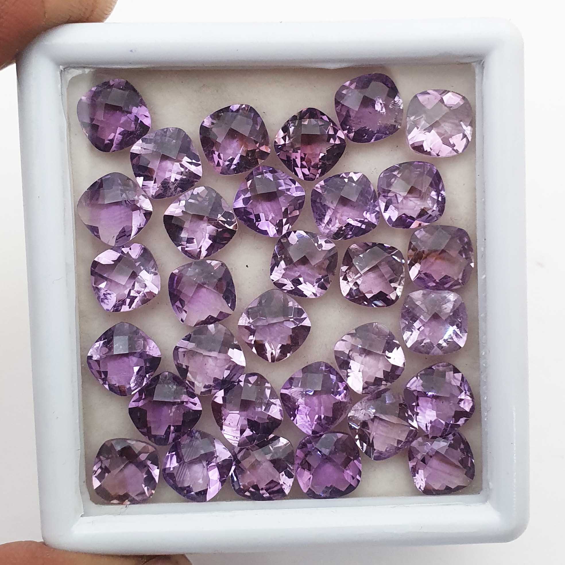 Home Amethyst Natural Brazilian Amethyst Cushion Checker Cut Loose Stone 69 Pcs 8 MM 129 CT