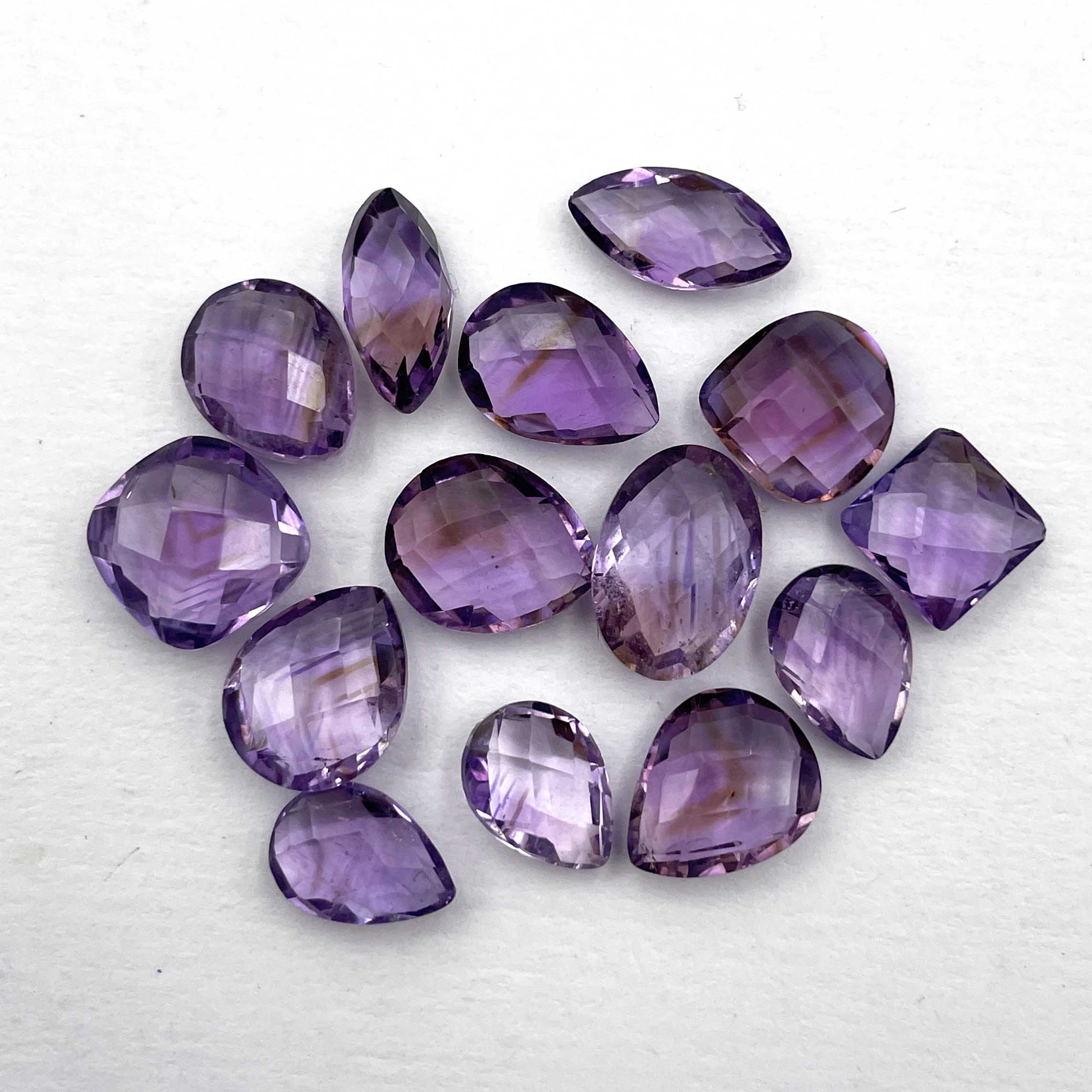 Home Amethyst Natural Brazilian Amethyst Mix Checker Cut Loose Stone 16 Pcs 6-10 MM 38.3 CT
