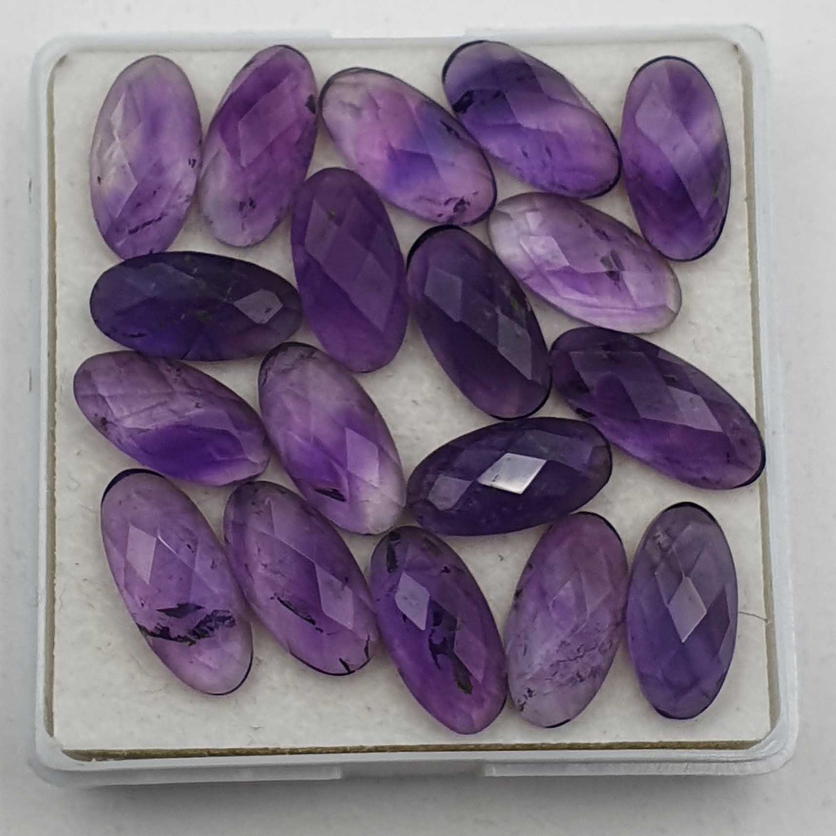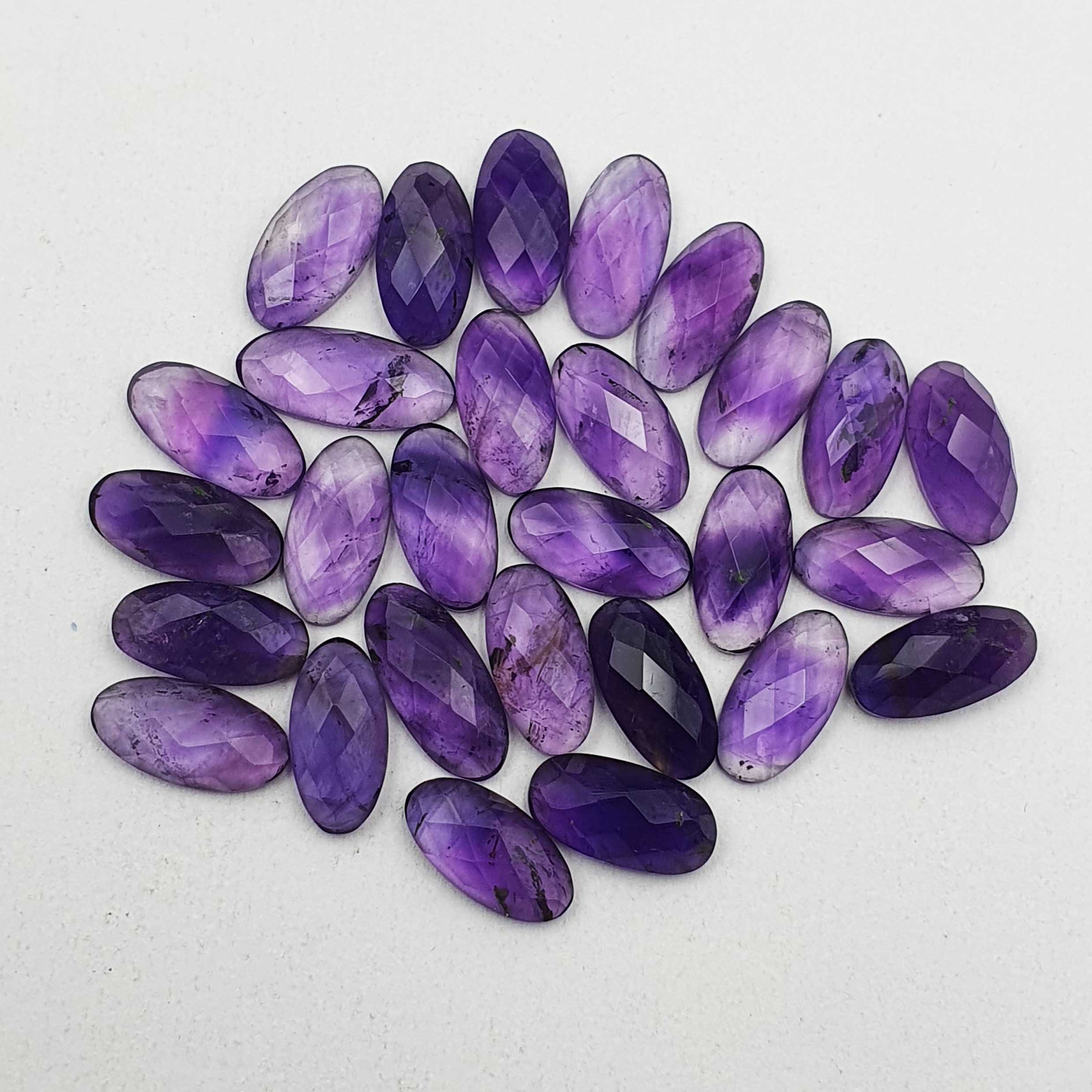 Home Amethyst Natural Brazilian Amethyst Oval Checker Cut Loose Gemstone 28 Pcs 7*14 MM 81 CT