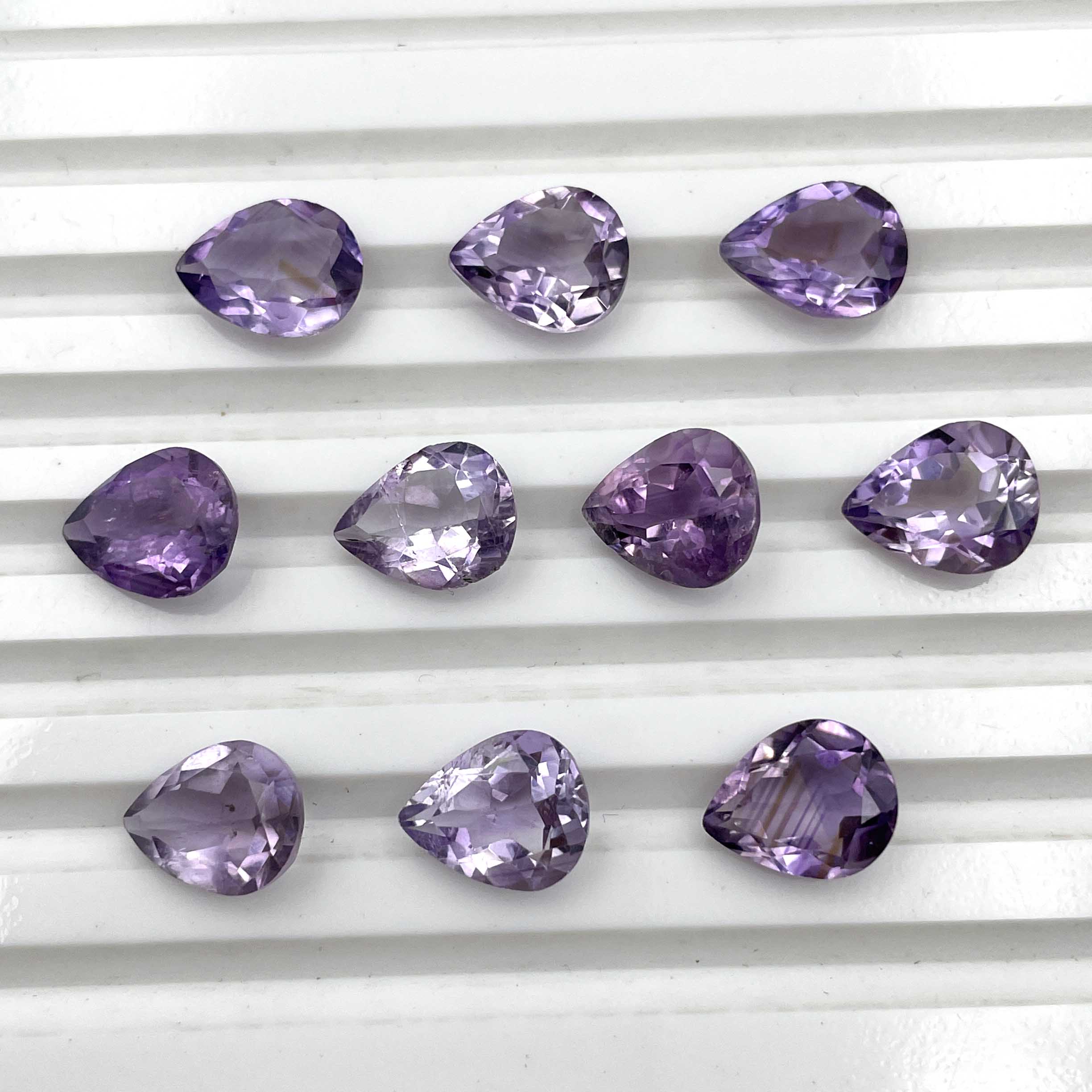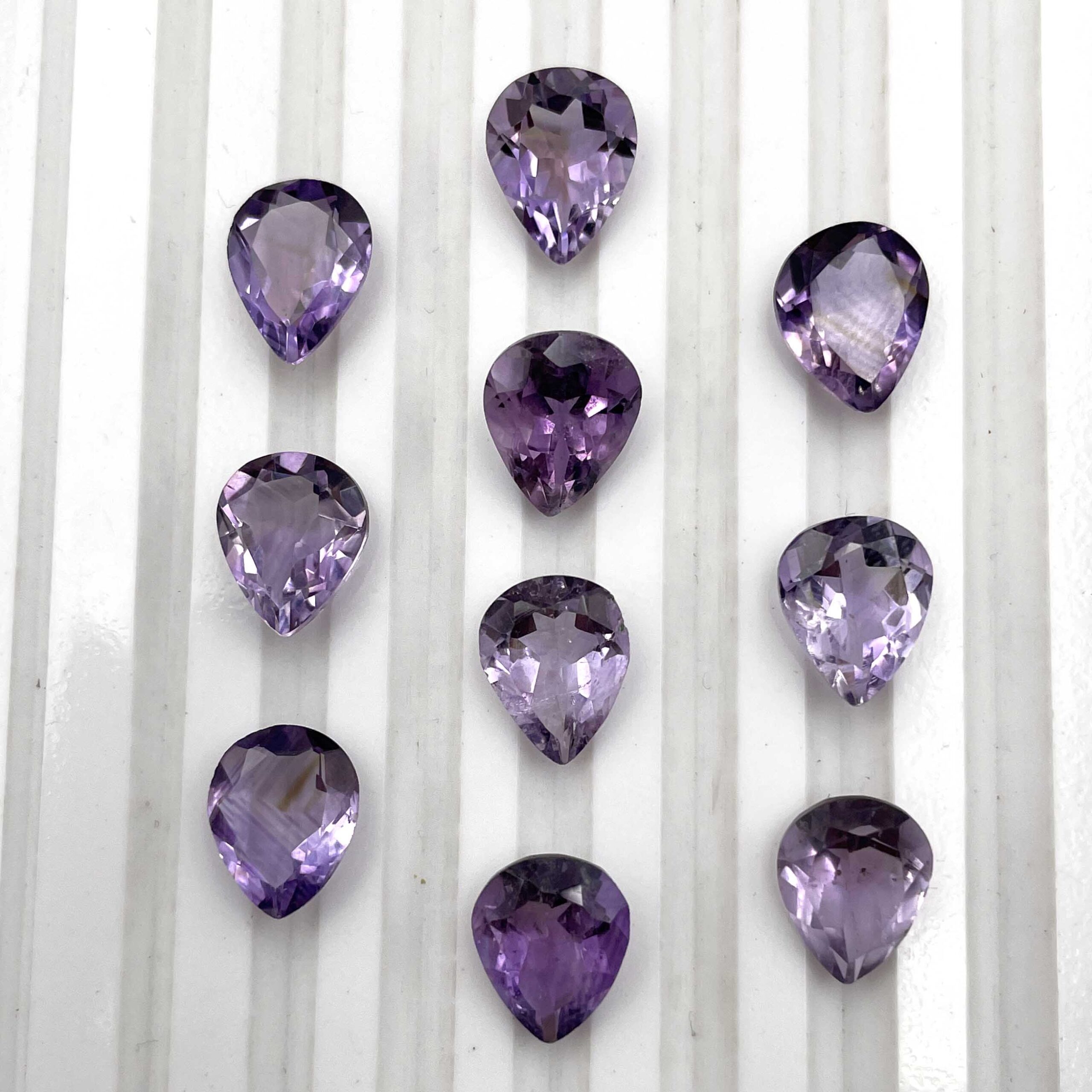 Home Amethyst Natural Brazilian Amethyst Pear Cut Loose Stone 11 Pcs 9*11 MM 28.3 CT
