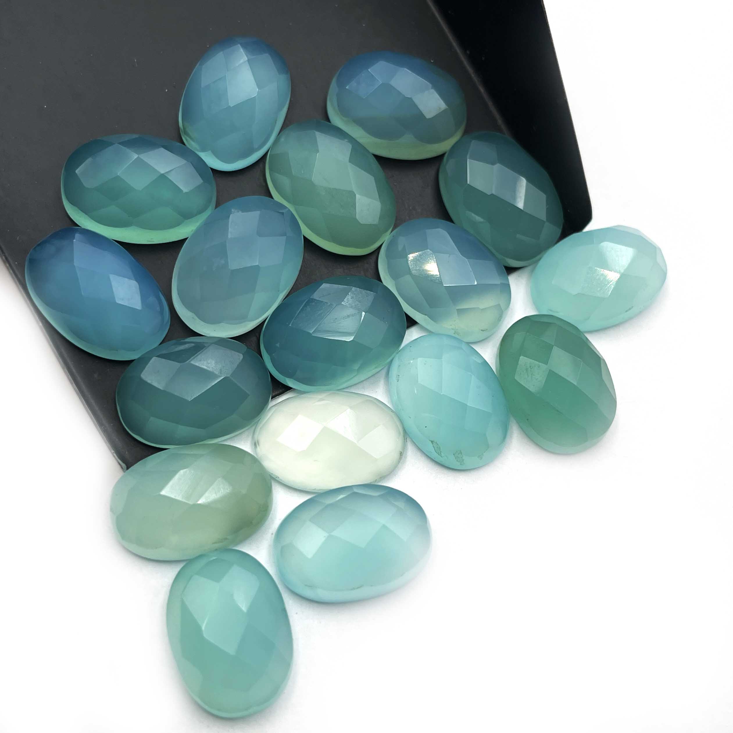Home Chalcedony Natural Chalcedony Oval Checker Loose Gemstone Lot 17 Pcs 10*14 MM 98 CT