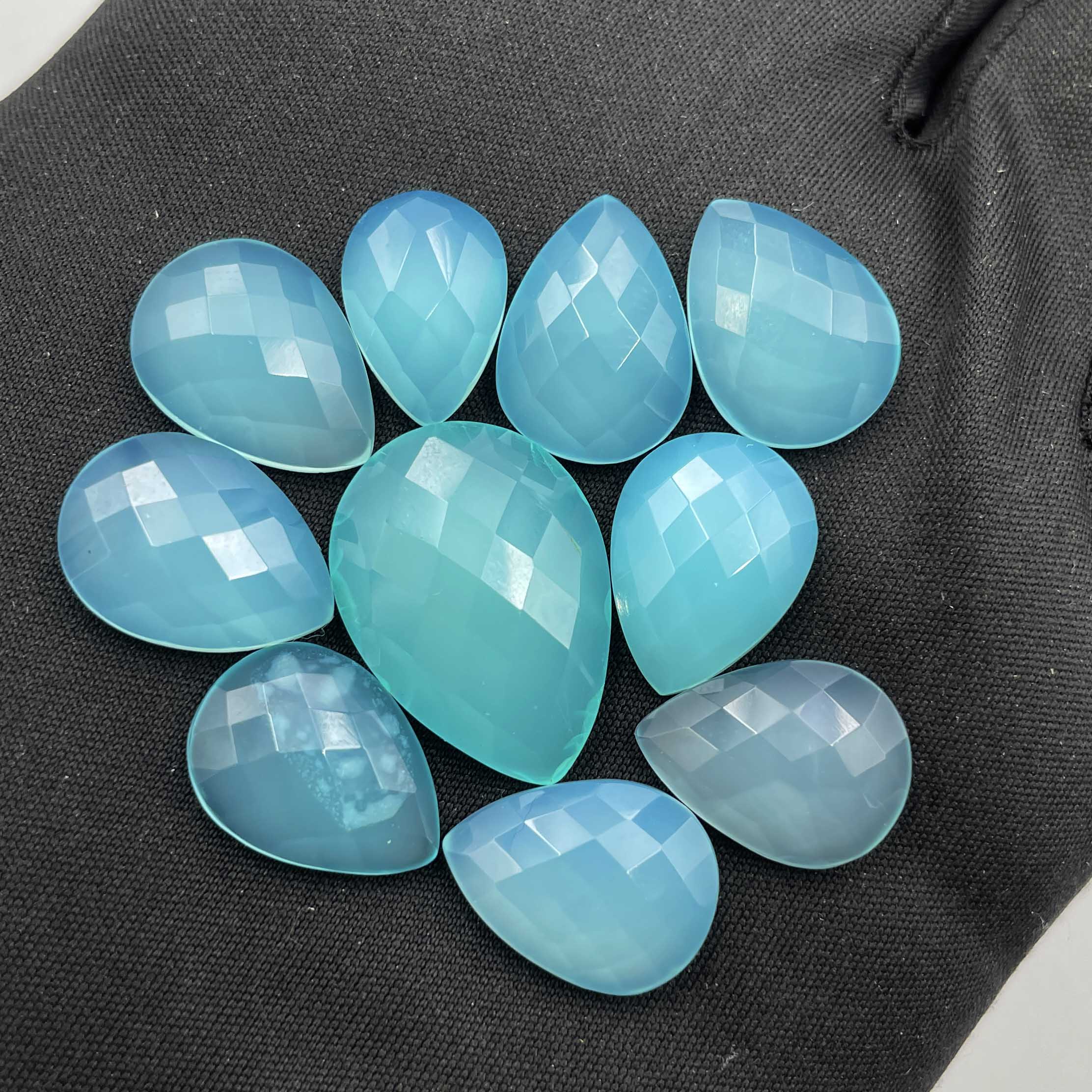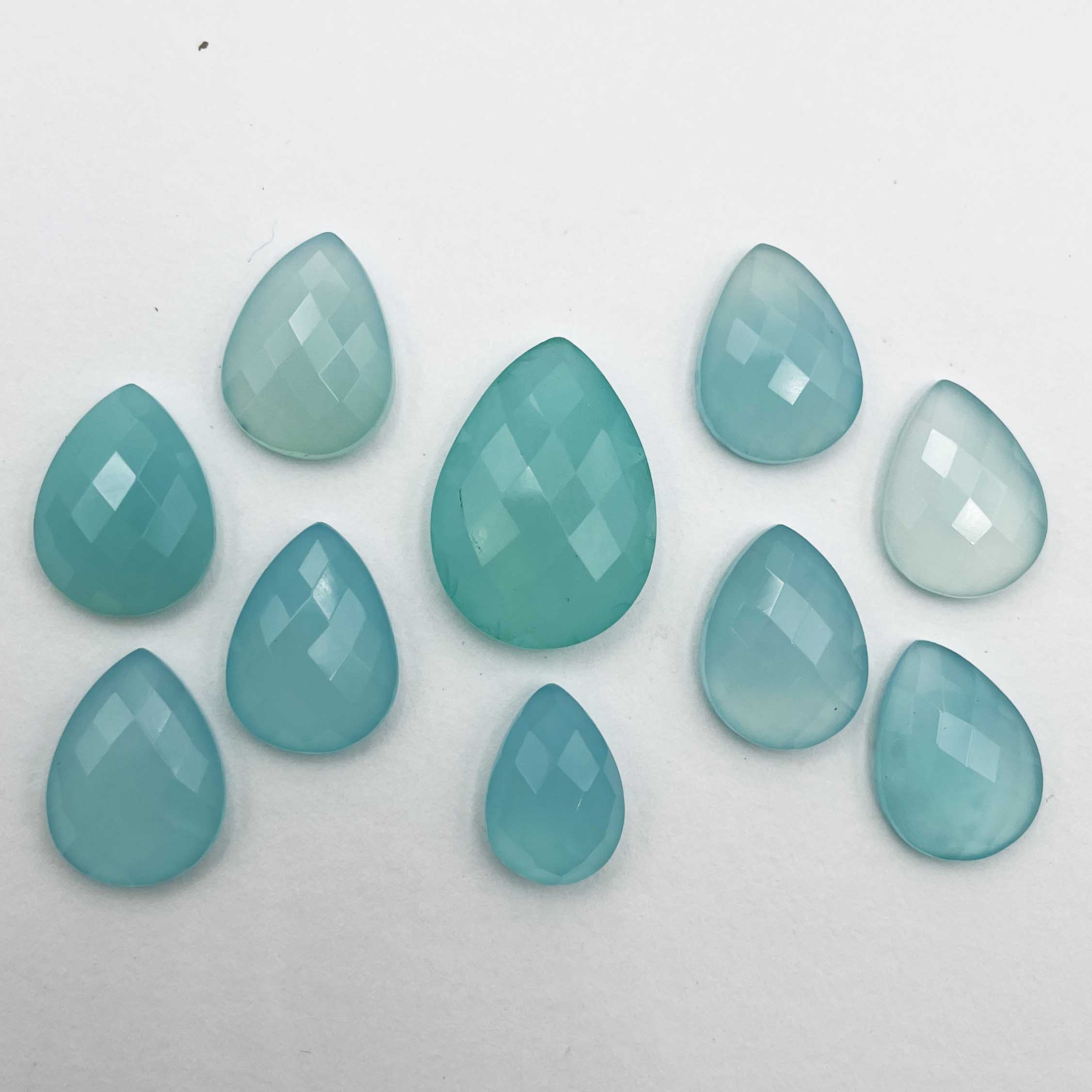 Home Chalcedony Natural Chalcedony Pear Checker Cut Gemstone Lot 10 Pcs 10*14-16*22 MM 70 CT
