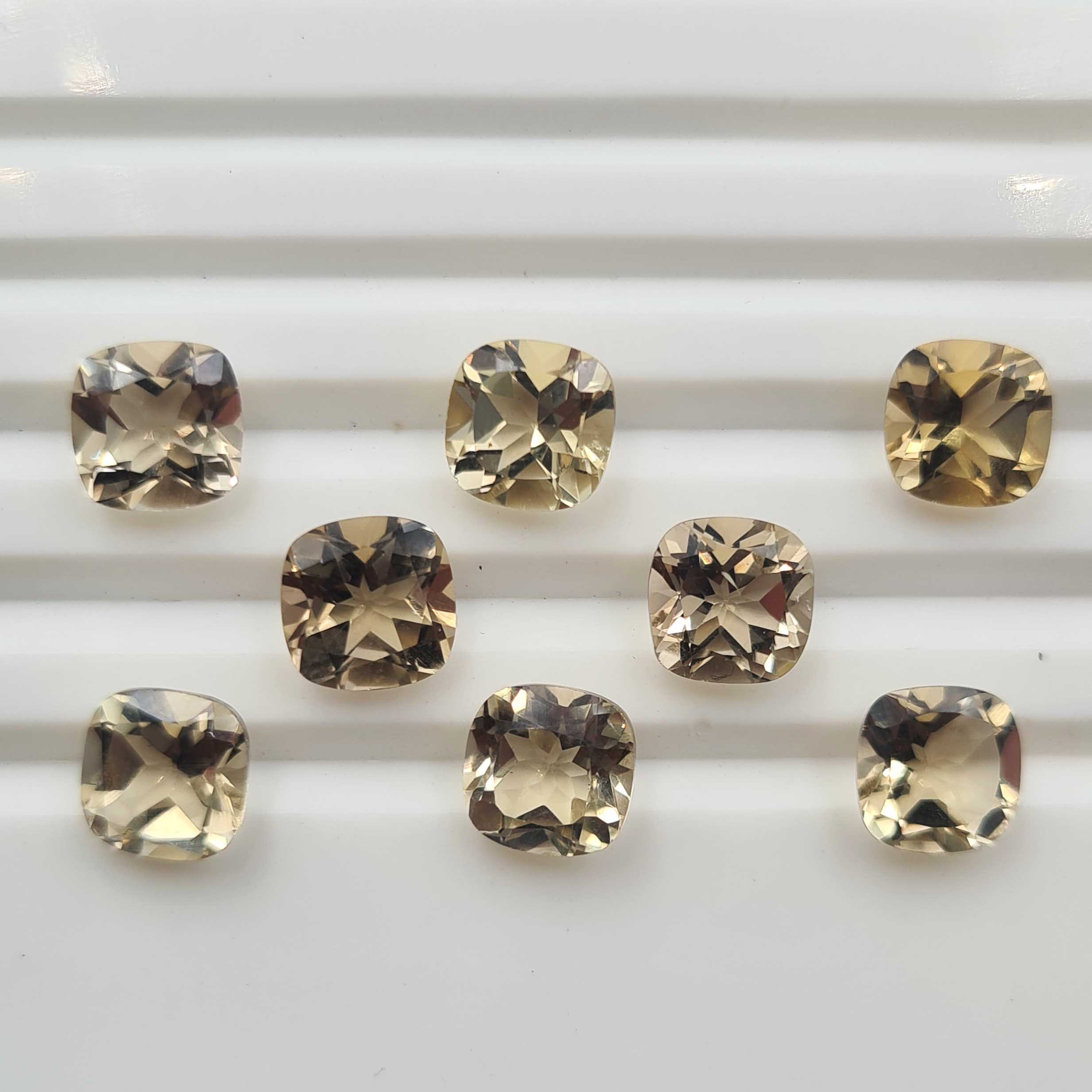 Home Quartz Natural Champagne Quartz Cushion Cut Loose Stone 9 Pcs 8 MM 18 CT