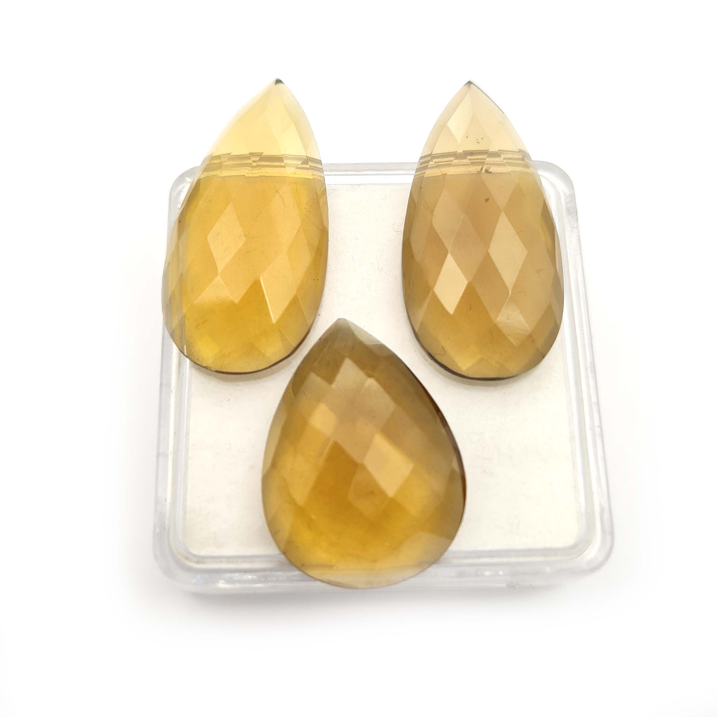 Natural Champagne Quartz Pear Checker Cut Gemstone 3 Pcs 14*28-16*22 MM 15 CT