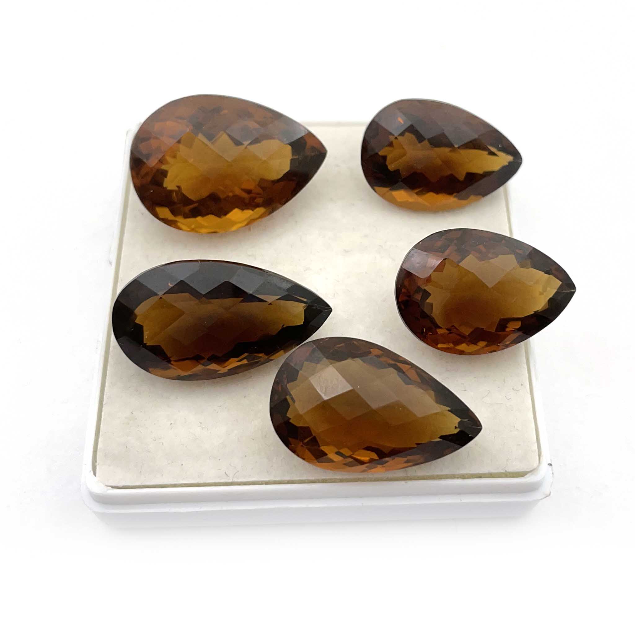 Home Quartz Natural Champagne Quartz Pear Checker Cut Loose Stone 7 Pc 14*19-16*23 MM 108 CT