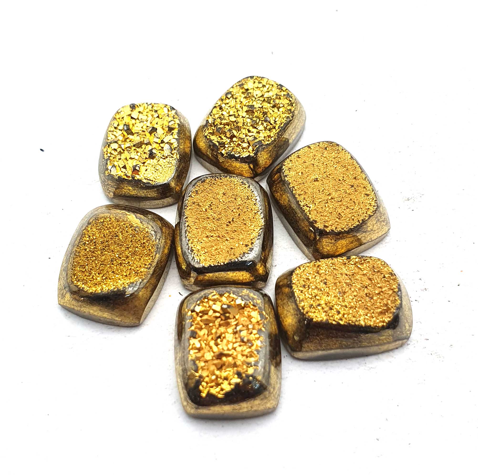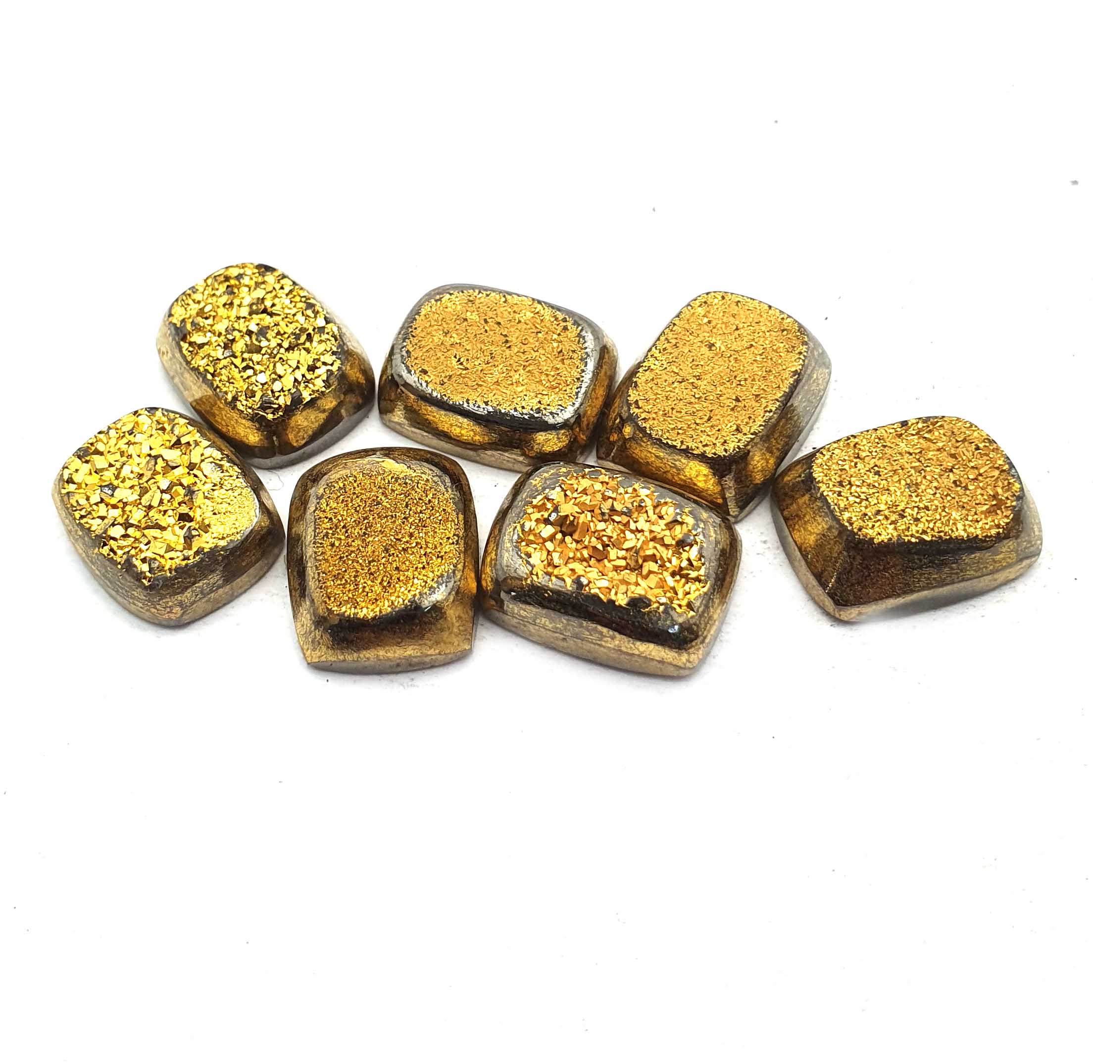 Home Quartz Natural Drusy Quartz Cushion Cabochon Golden Color 7 Pcs 11*14 MM 49 CT
