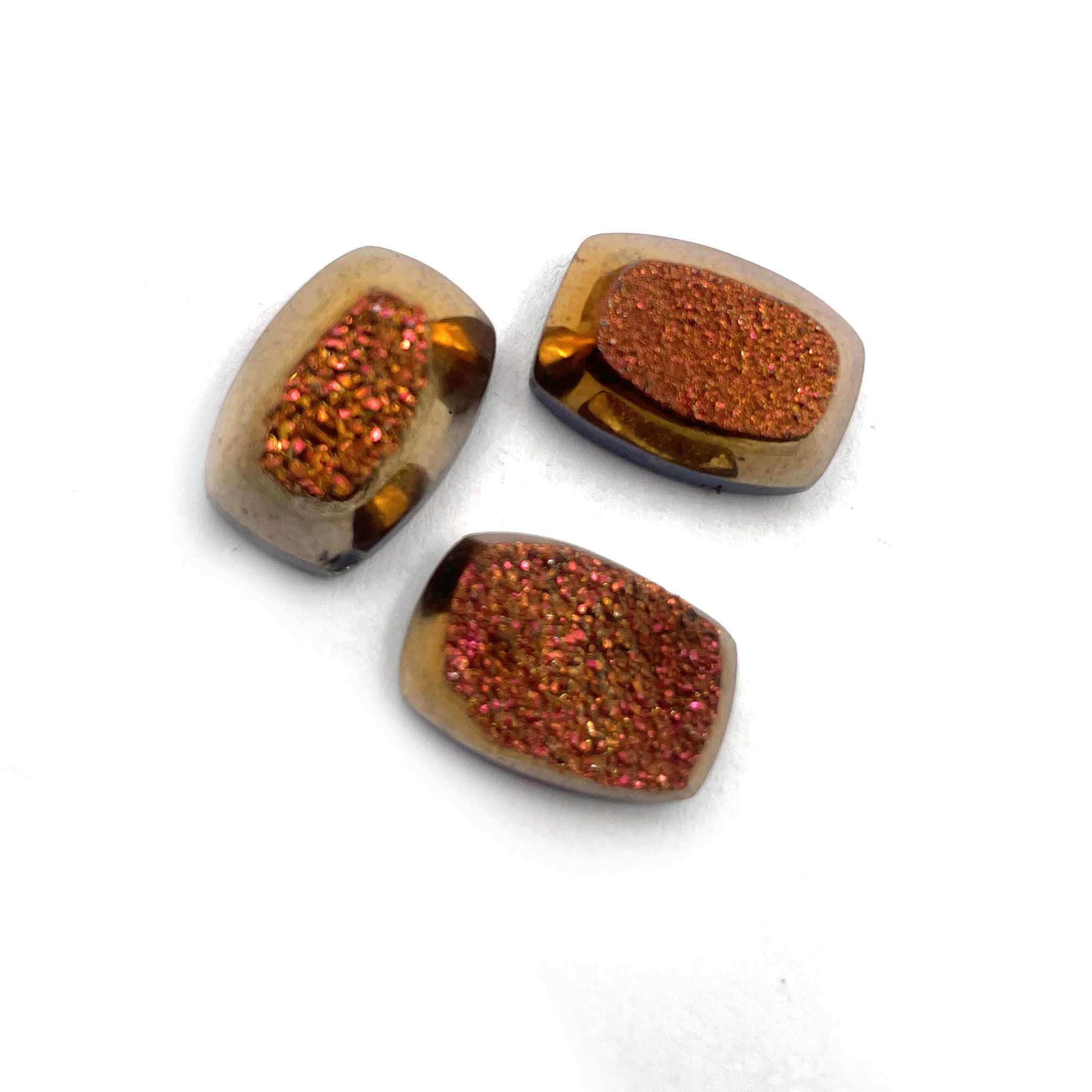 Home Quartz Natural Drusy Quartz Cushion Cabochon Orange Color Stone 3 Pcs 18 MM 18 CT