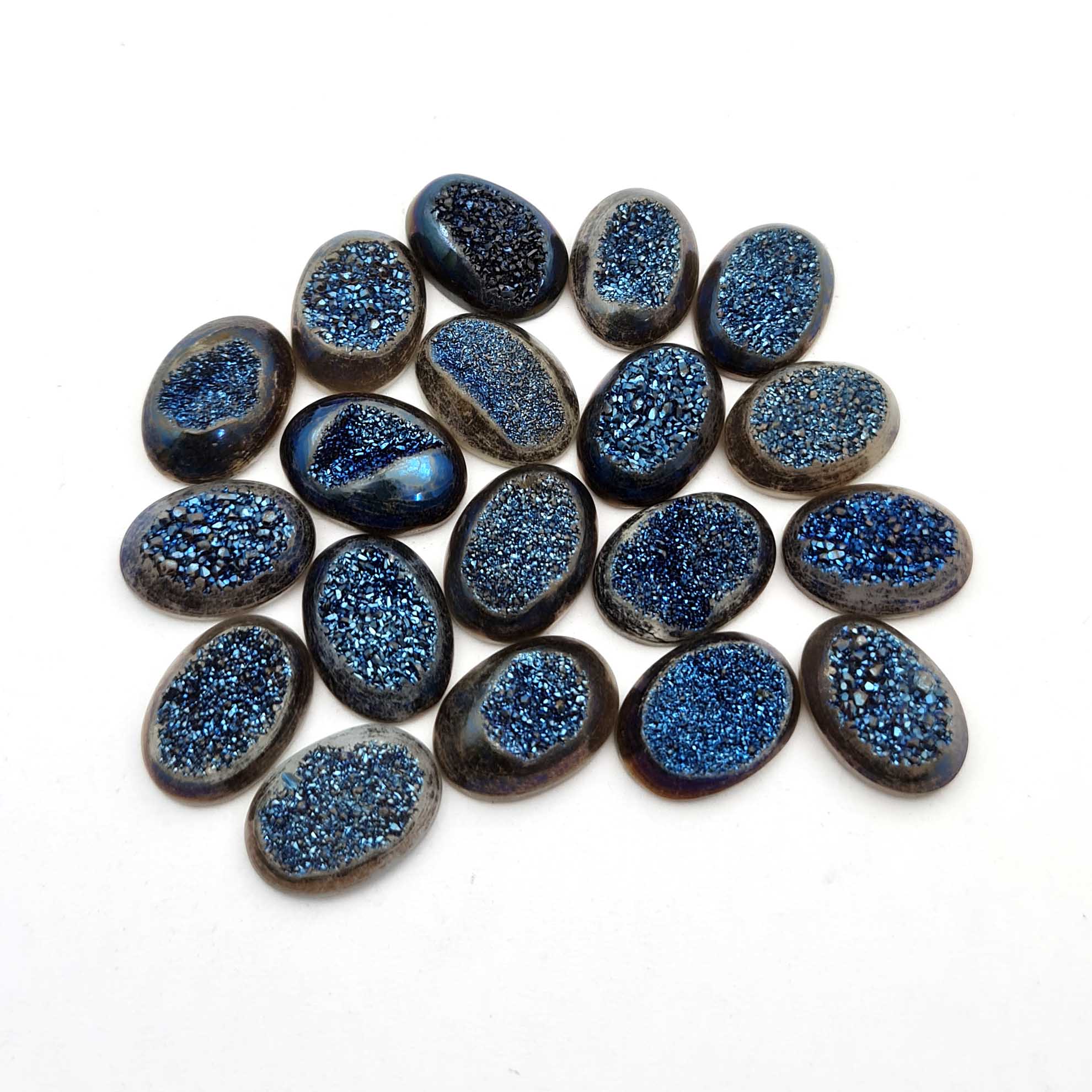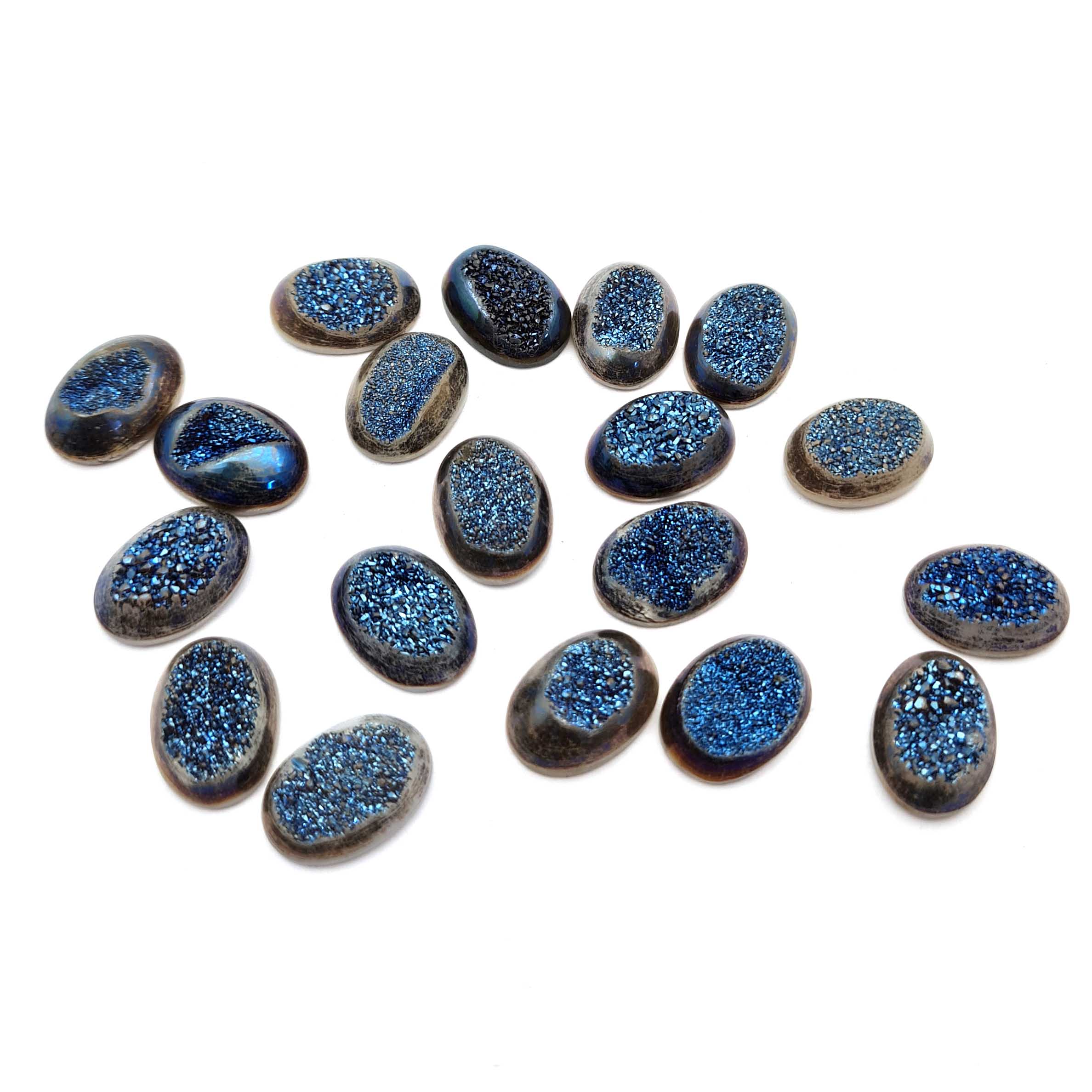 Home Quartz Natural Drusy Quartz Oval Cabochon Blue Color 12 Pcs 13*18 MM 107 CT
