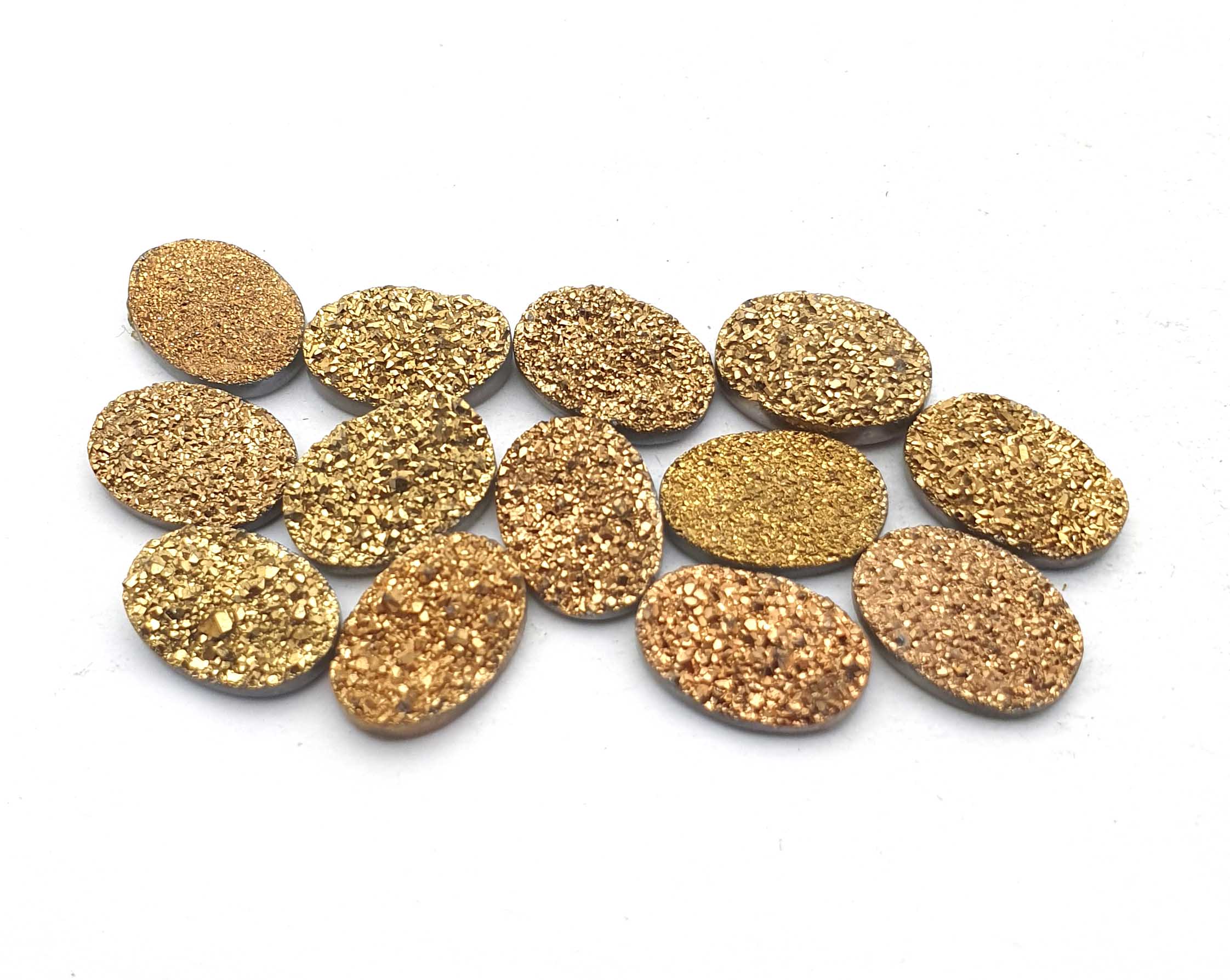 Home Quartz Natural Drusy Quartz Oval Cabochon Golden Color 13 Pcs 10*14 MM 44 CT