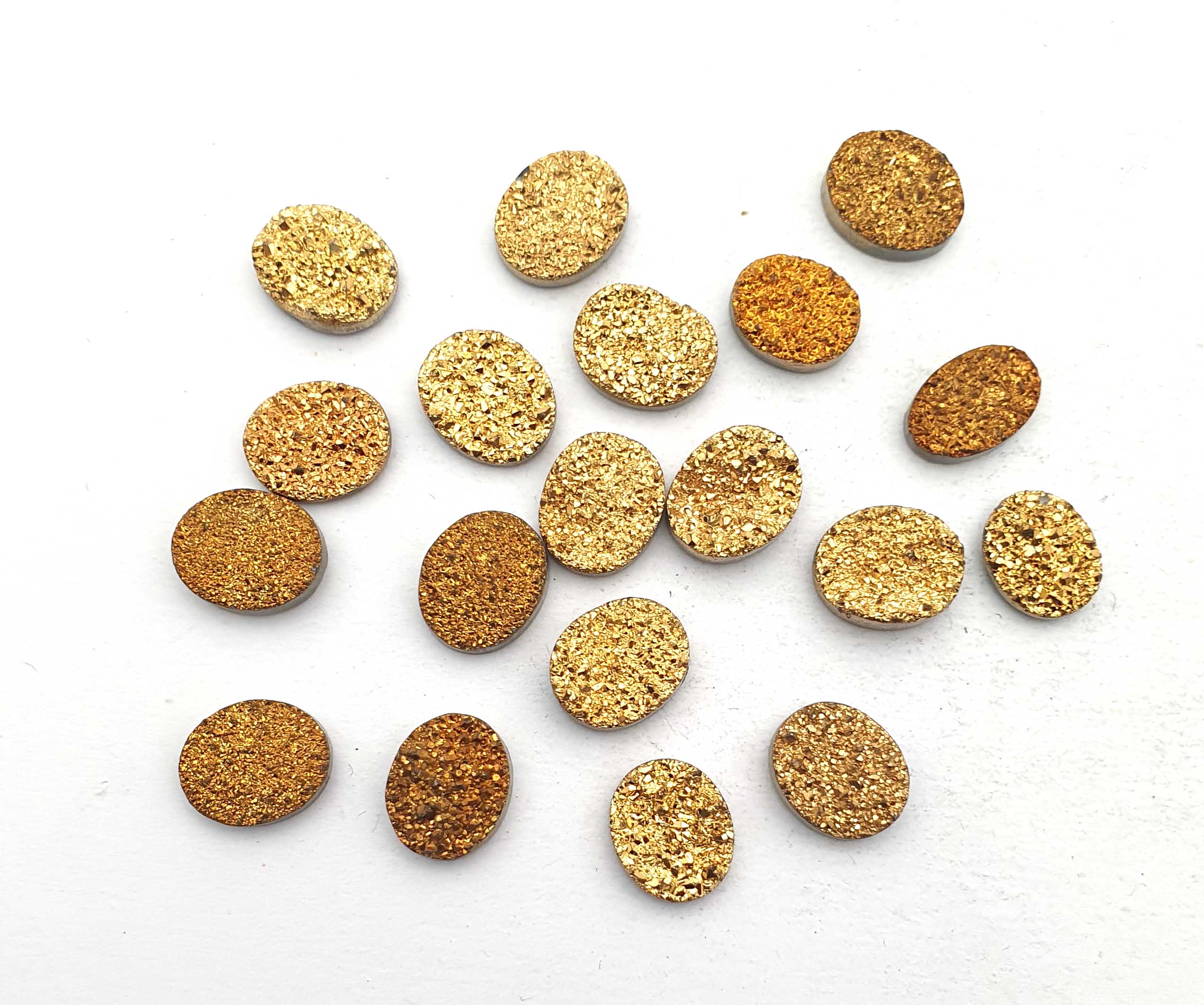 Home Quartz Natural Drusy Quartz Oval Cabochon Golden Color 19 Pcs 10*12 MM 61 CT