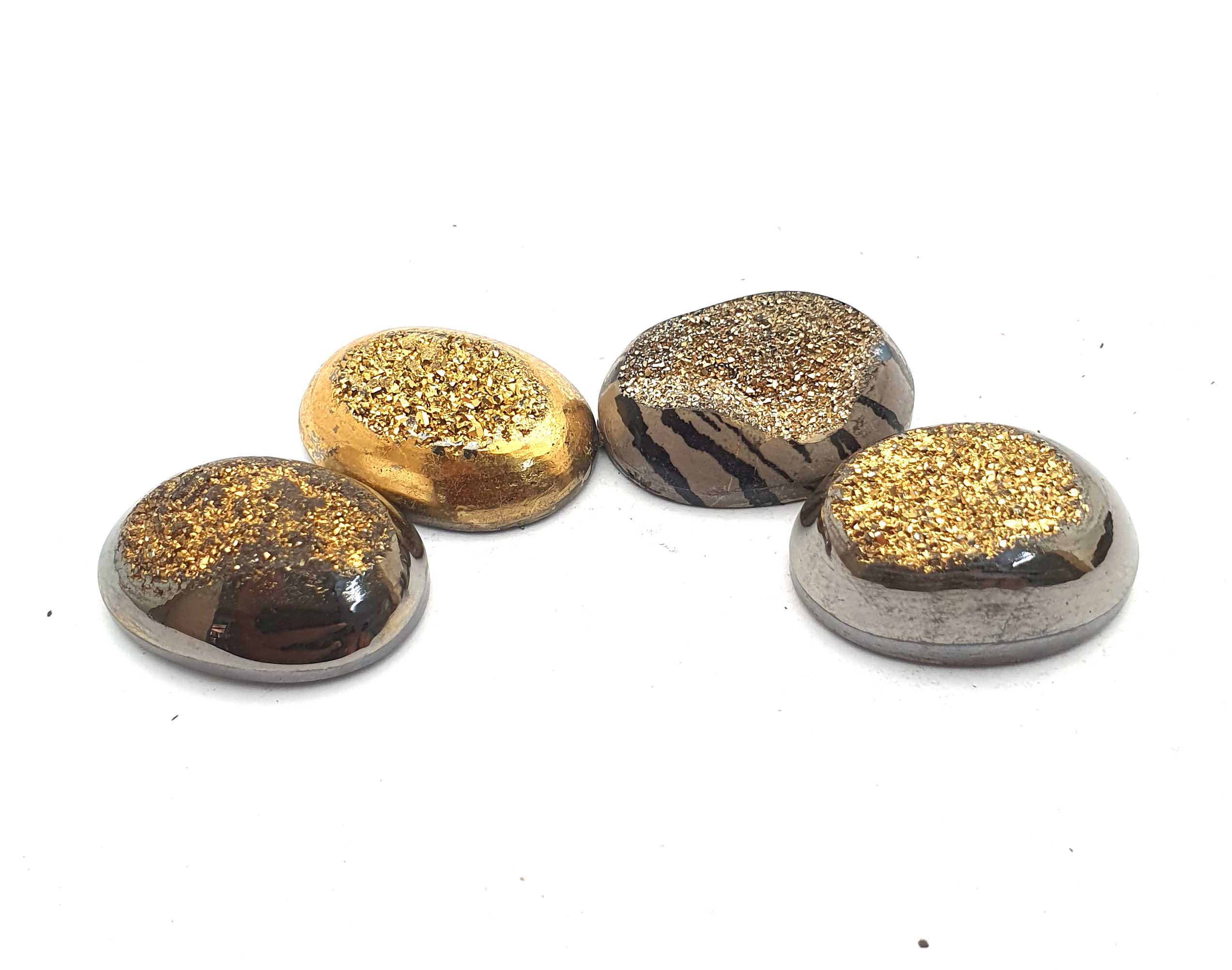 Home Quartz Natural Drusy Quartz Oval Cabochon Golden Color 4 Pcs 18*25 MM 114 CT