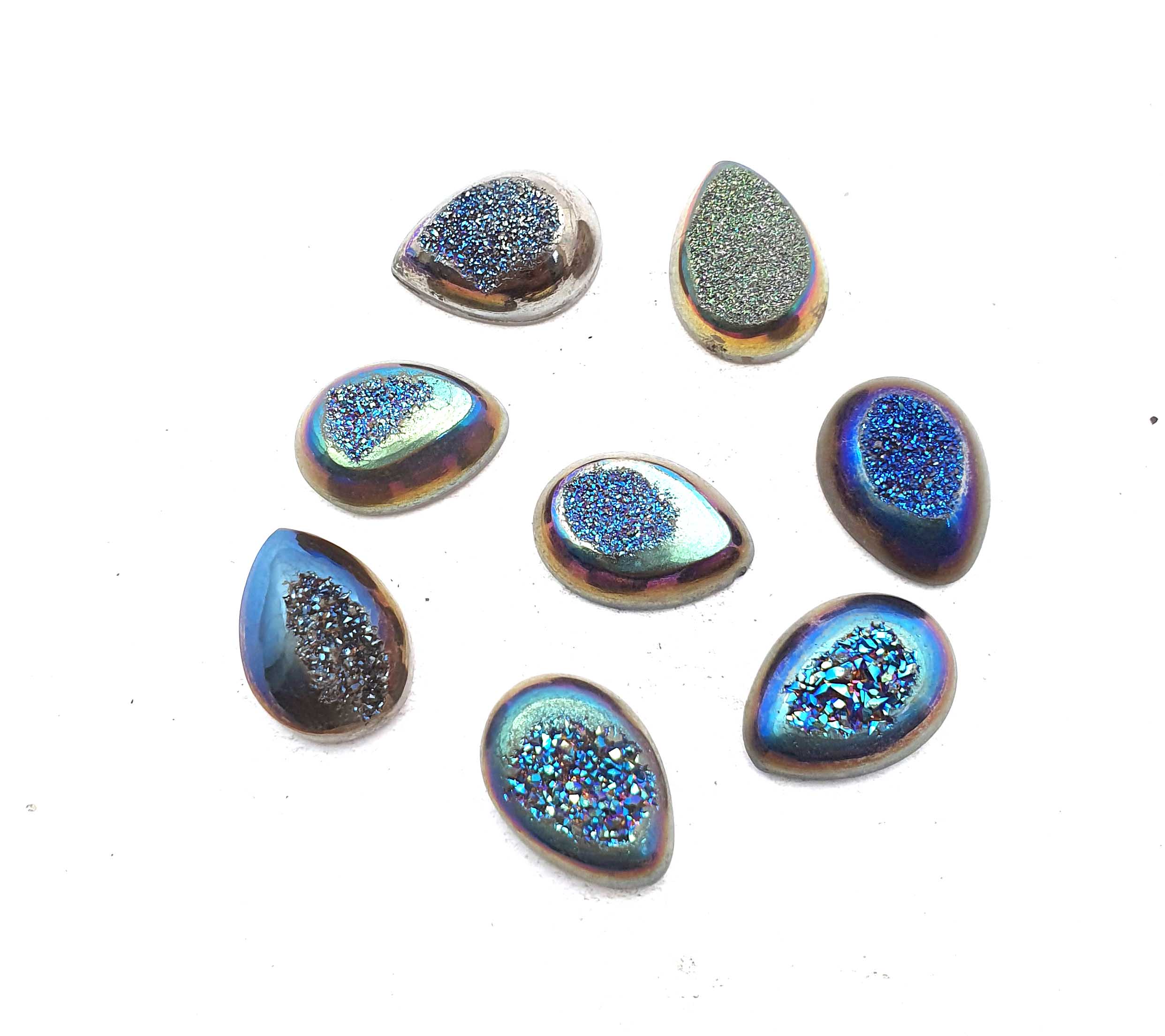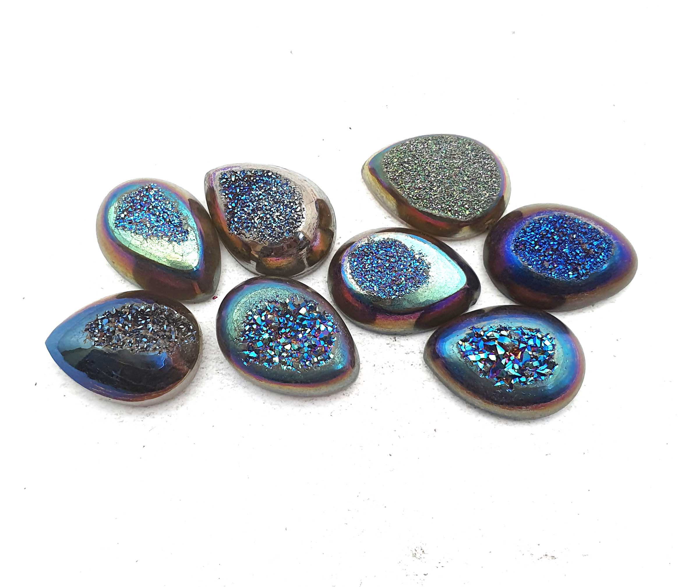 Home Quartz Natural Drusy Quartz Pear Cabochon Blue Color 8 Pcs 13*18 MM 84 CT
