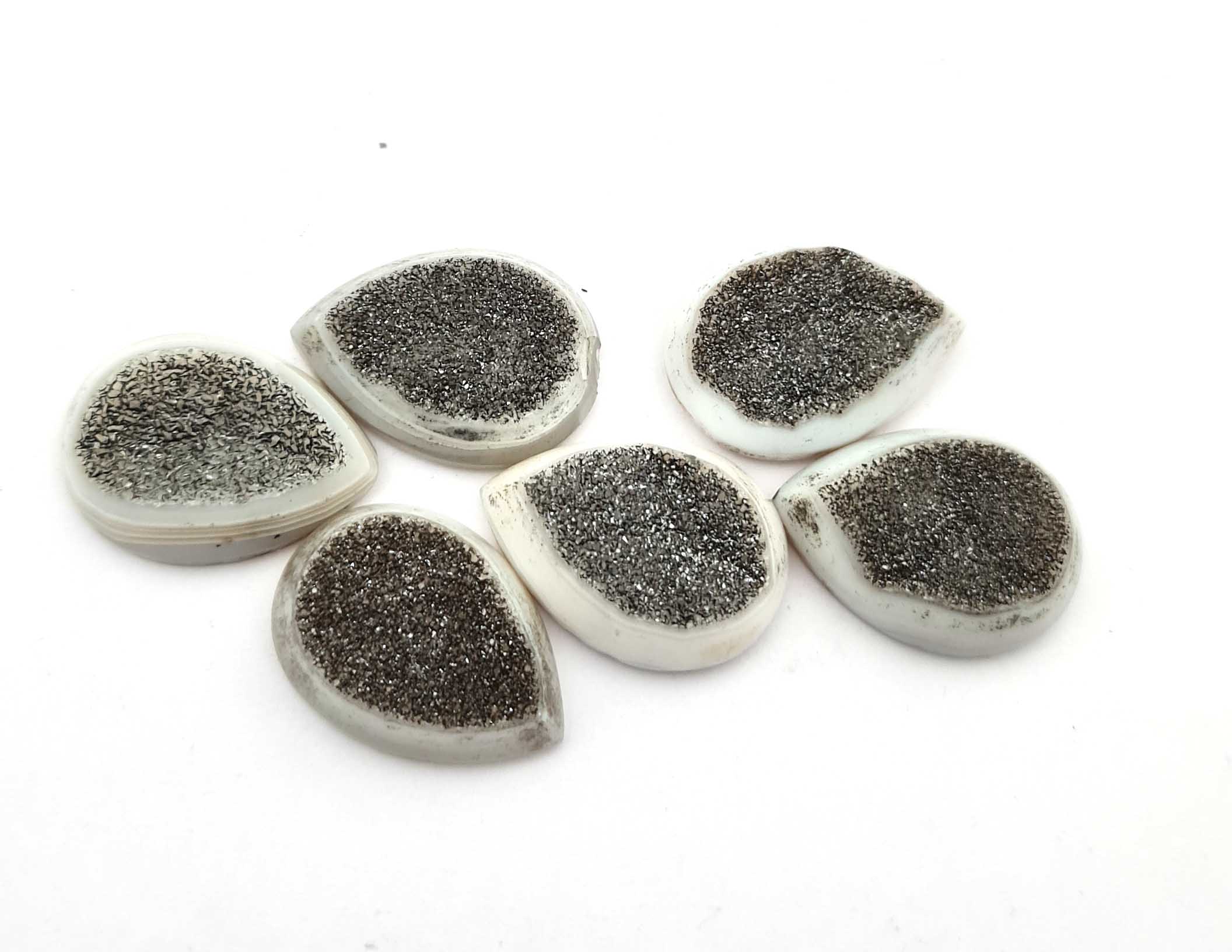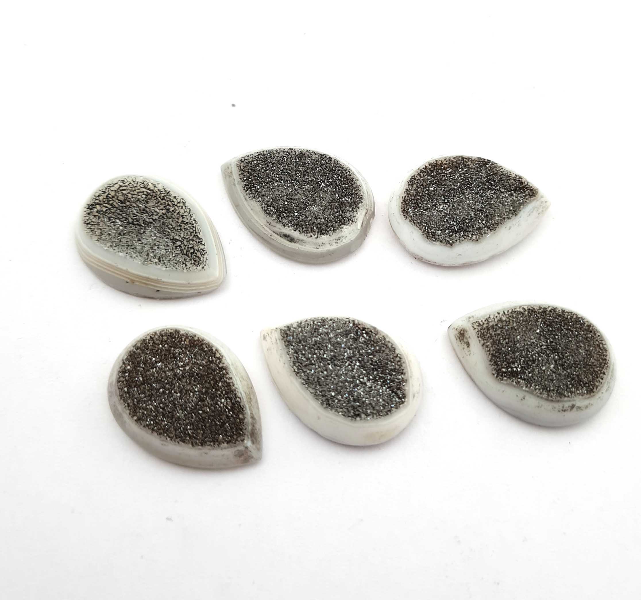 Home Quartz Natural Drusy Quartz Pear Cabochon Grey Color 6 Piece18*24 MM 130 CT