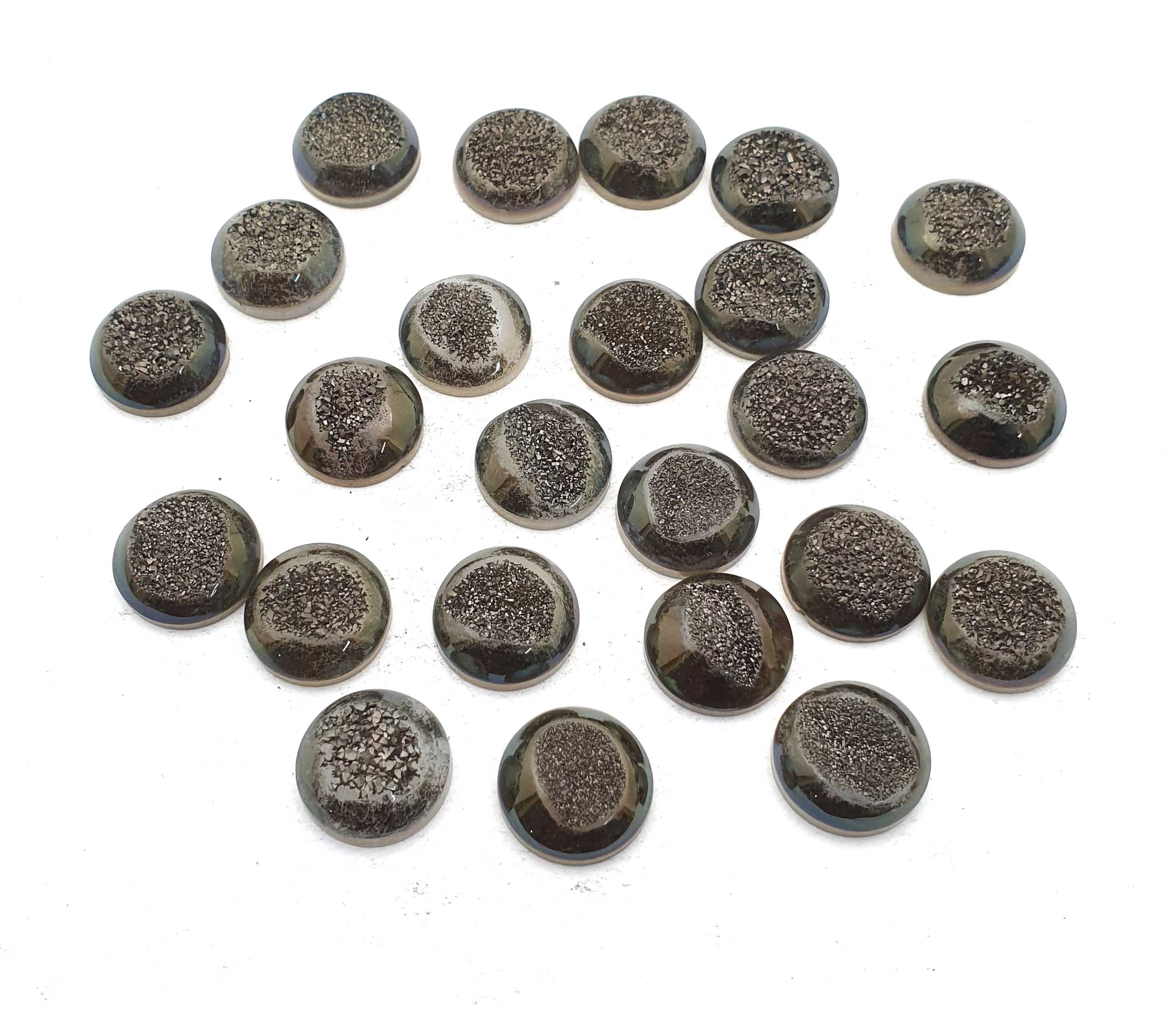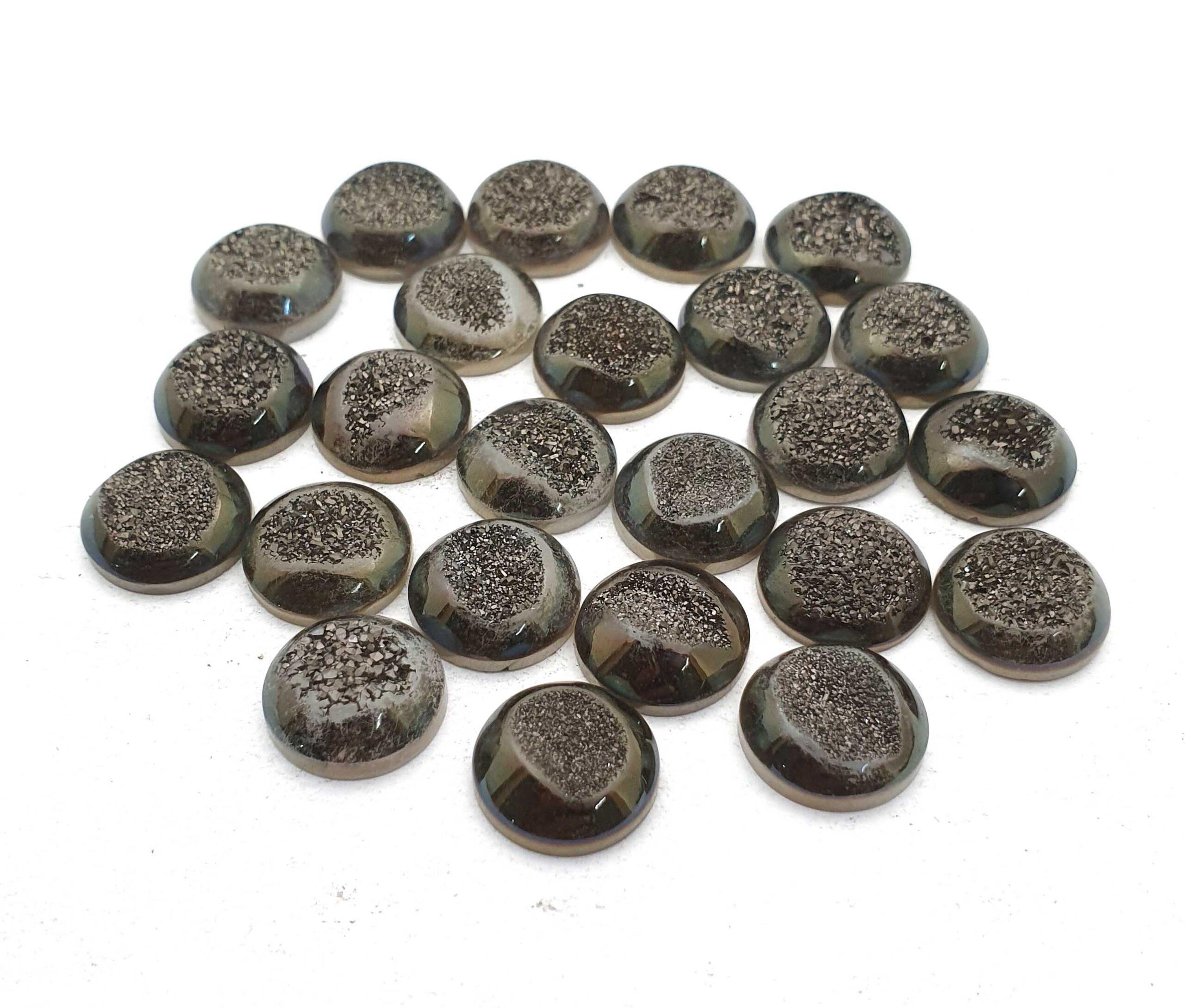 Home Quartz Natural Drusy Quartz Round Cabochon Grey Color 14 Pcs 15 MM 100 CT