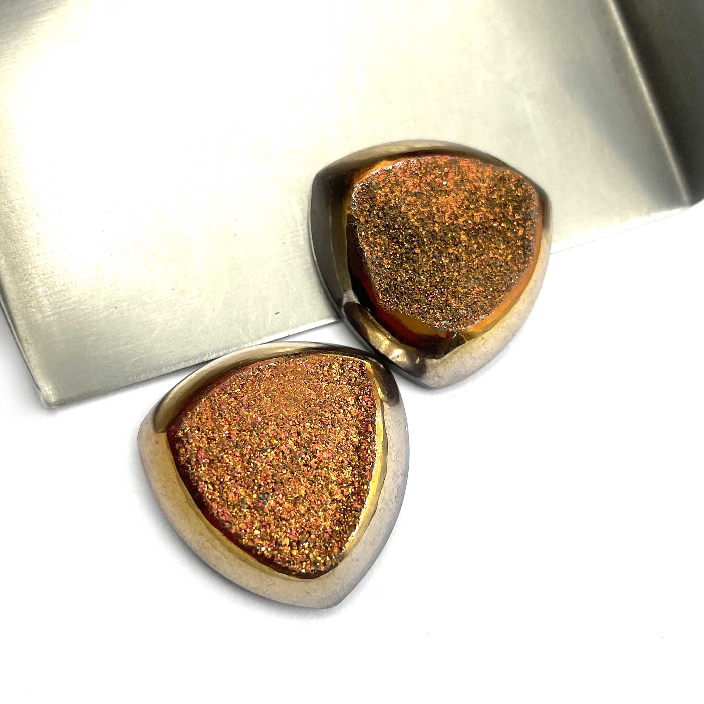 Home Quartz Natural Drusy Quartz Trillion Cabochon Orange Color Stone 1 Pcs 25 MM 59 CT