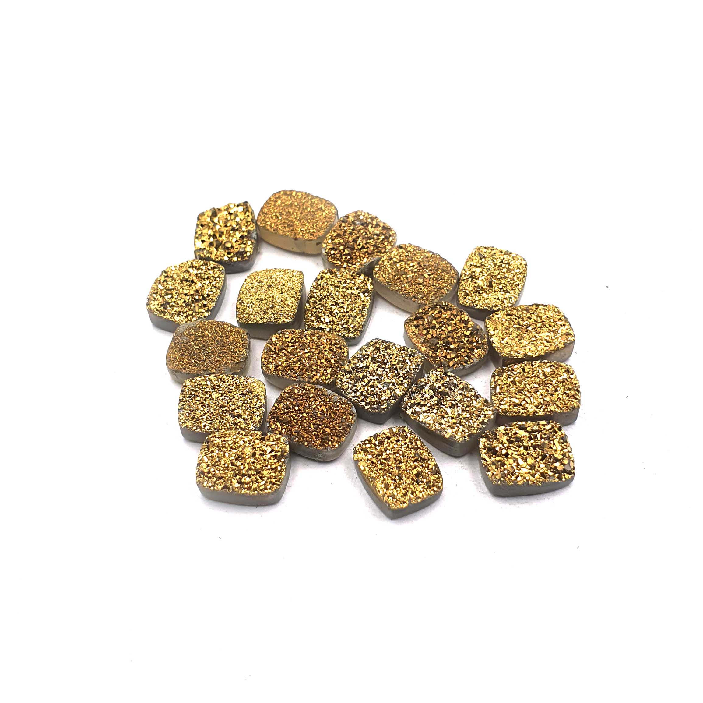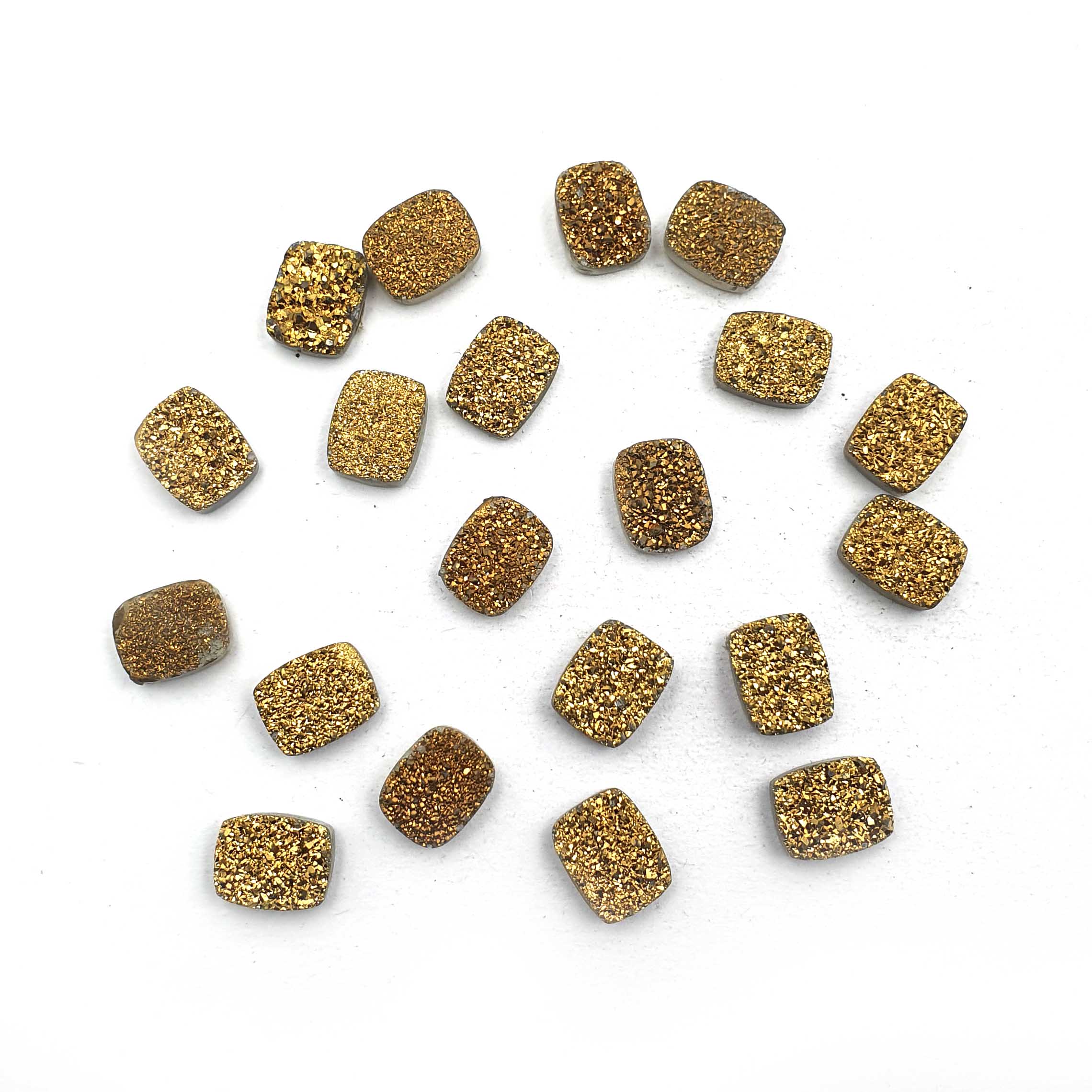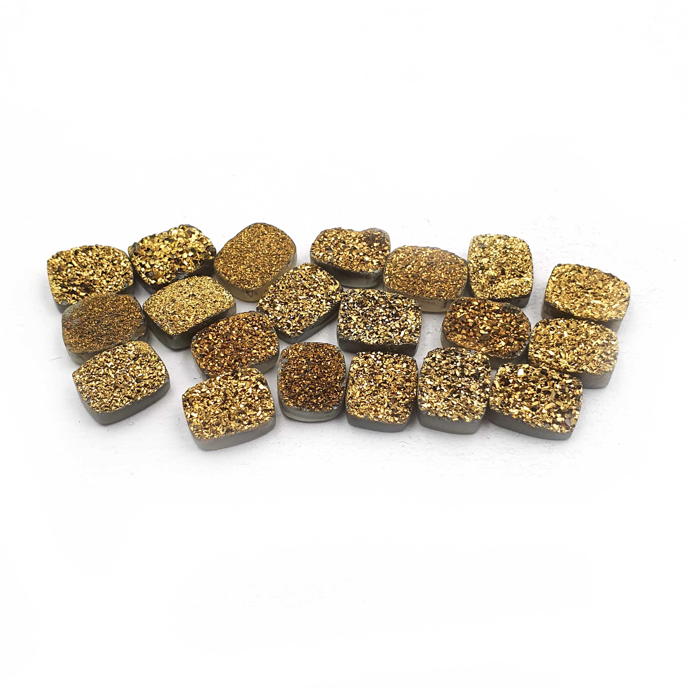 Home Quartz Natural Druzy Quartz Cushion Cabochon Golden Glitter Stone 20 Pcs 8*10 MM 56CT